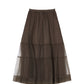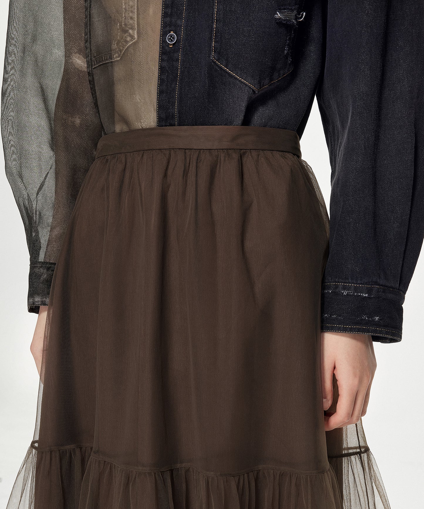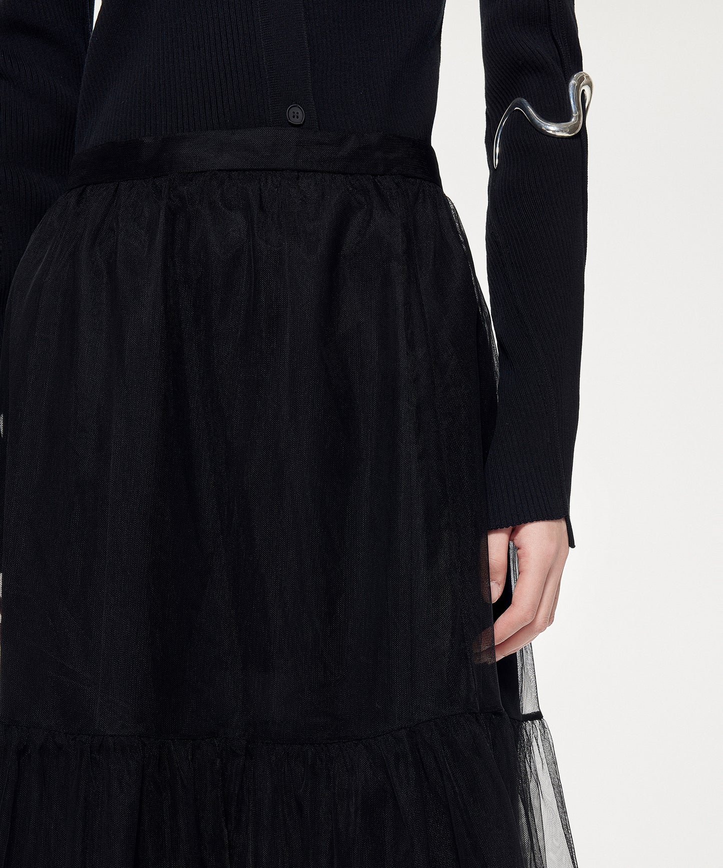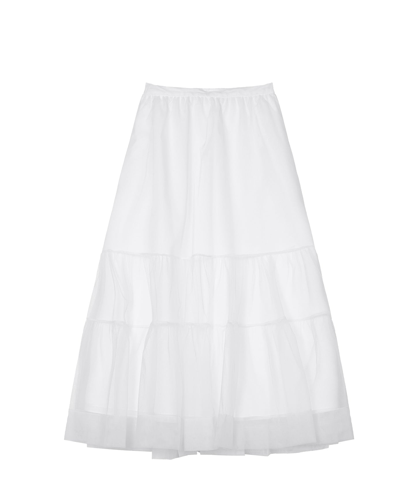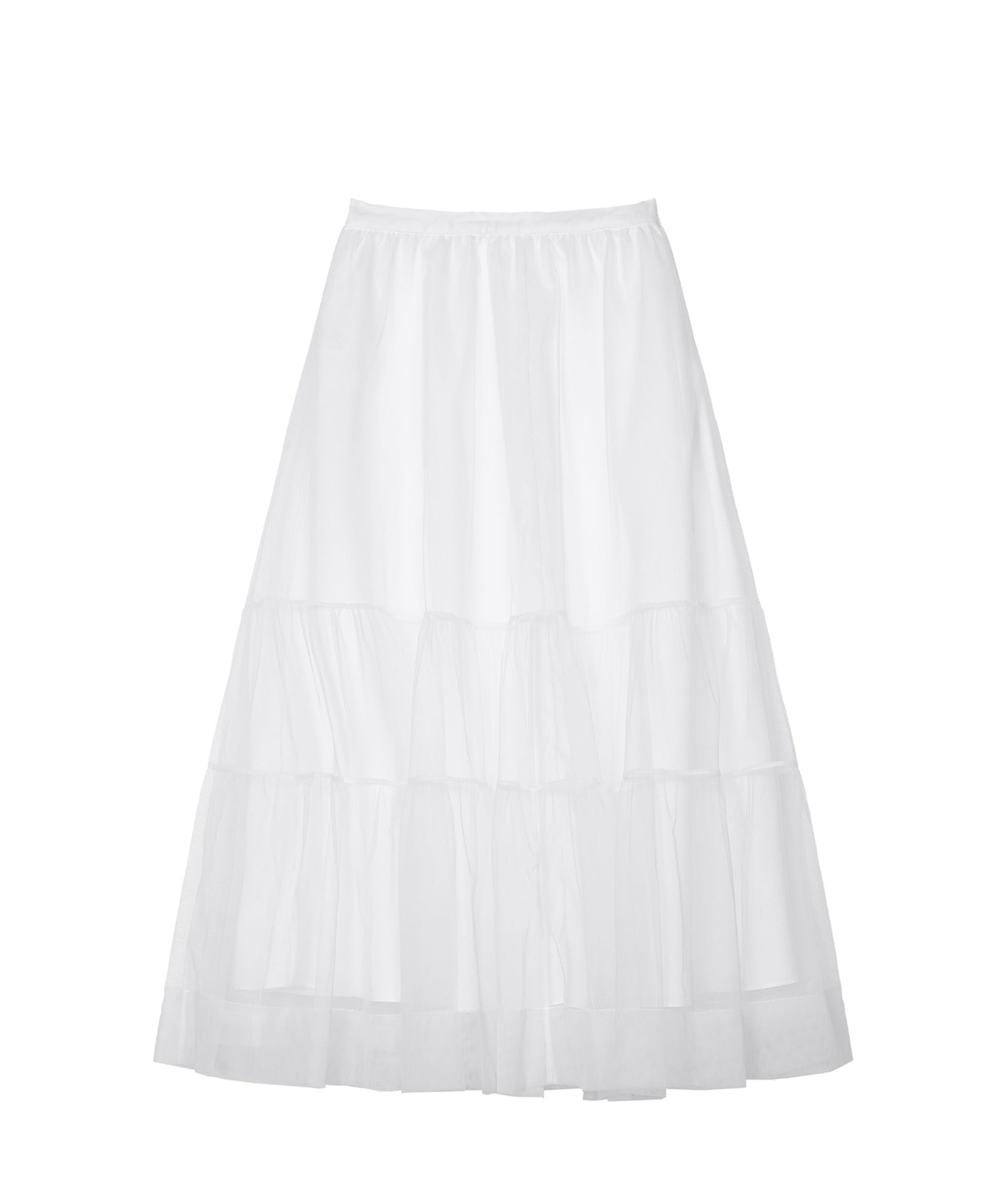 エレガントで大人ガーリーなチュールティアードスカート。ふわっと立体的に広がるボリューム感がフェミニンな印象を与えます。ブーツと合わせたり、パンツとのレイヤードスタイルもおすすめです。