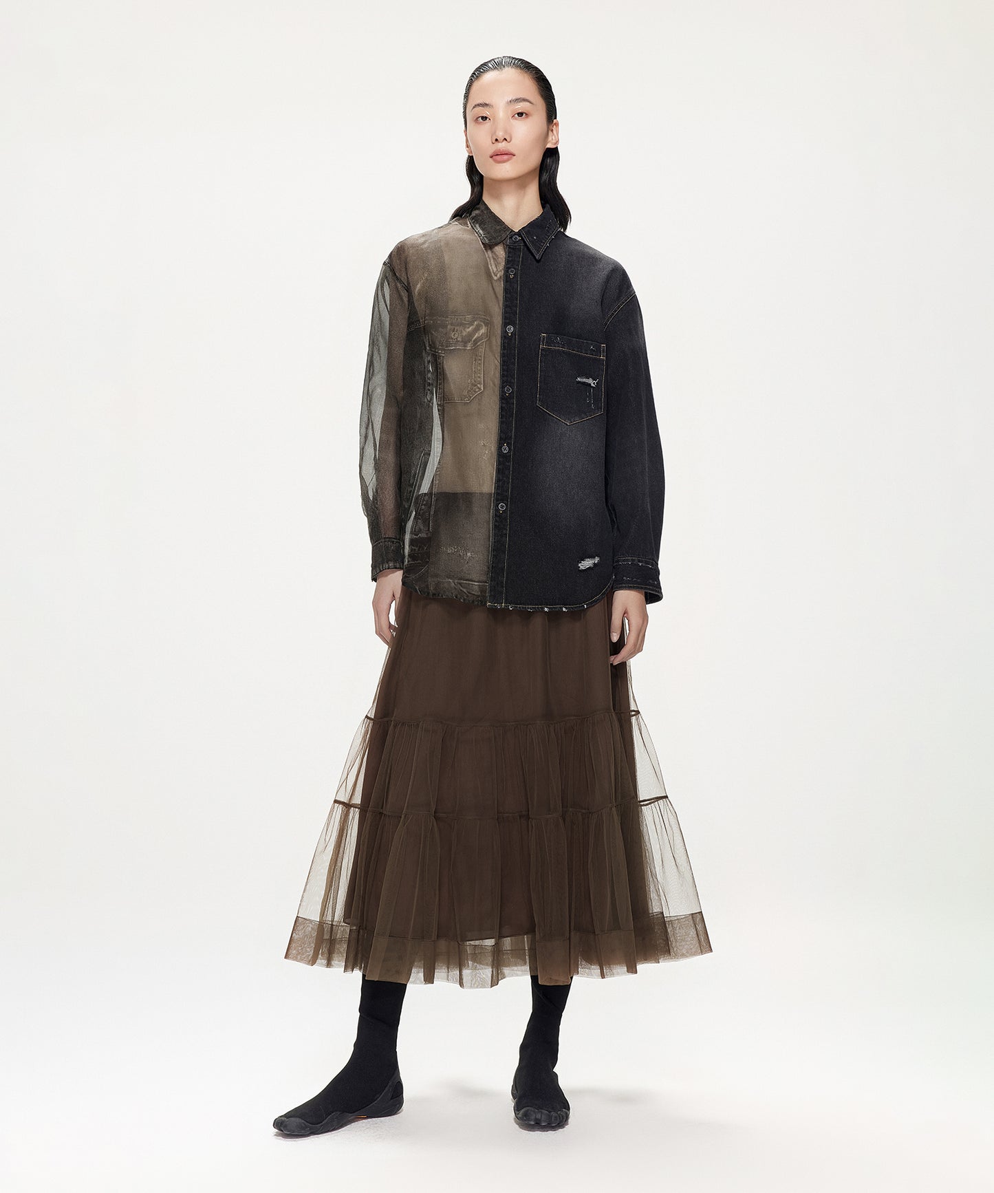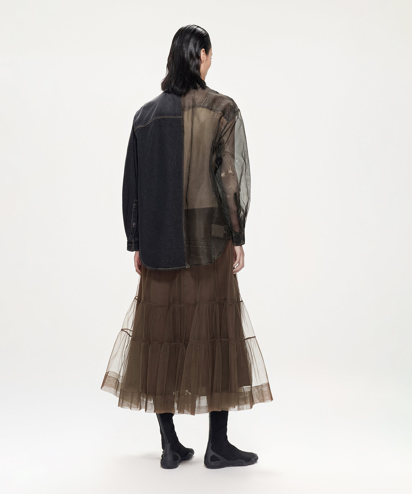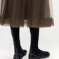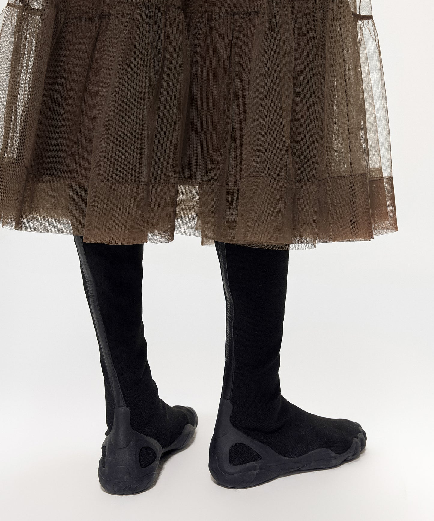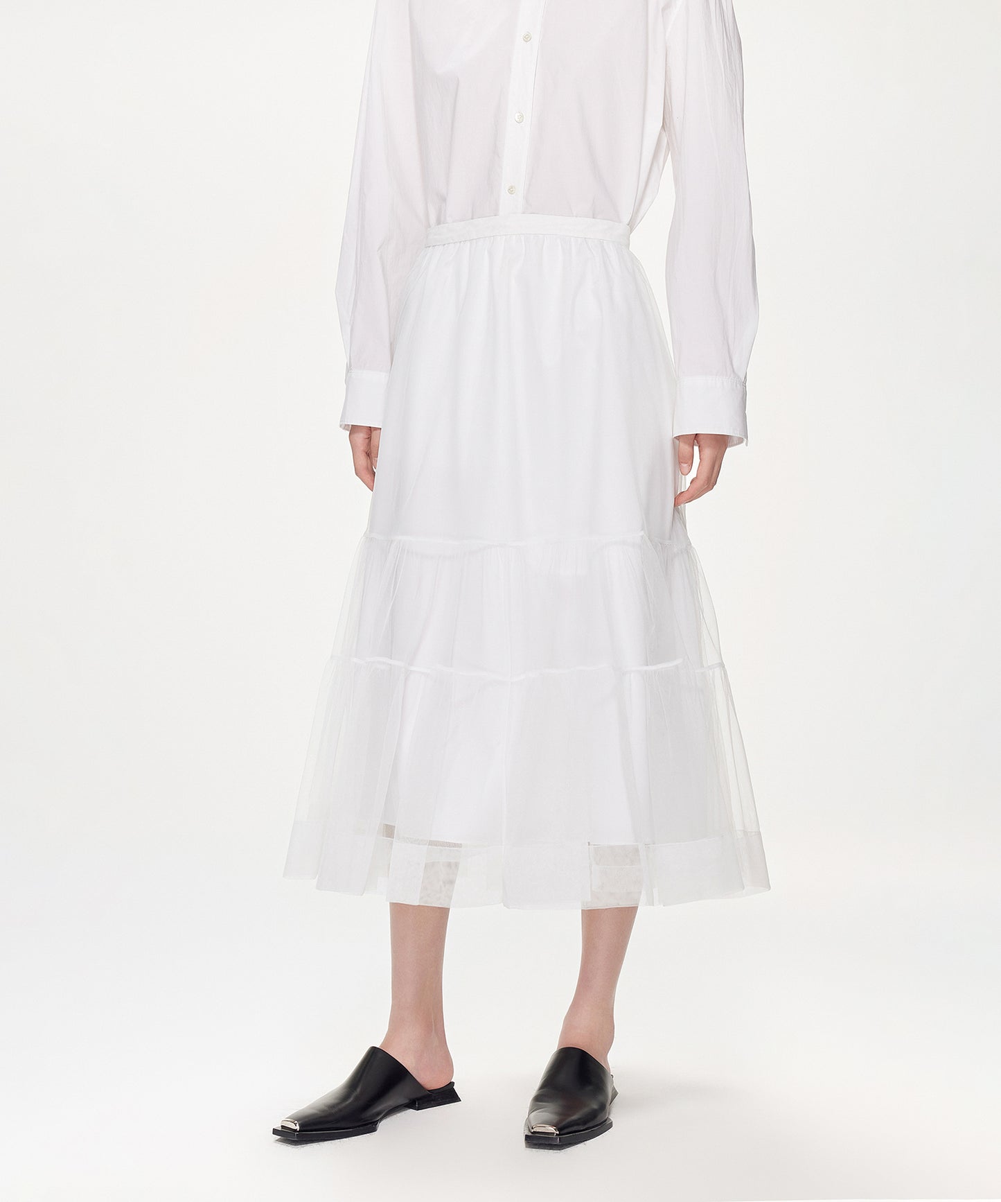 エレガントで大人ガーリーなチュールティアードスカート。ふわっと立体的に広がるボリューム感がフェミニンな印象を与えます。ブーツと合わせたり、パンツとのレイヤードスタイルもおすすめです。