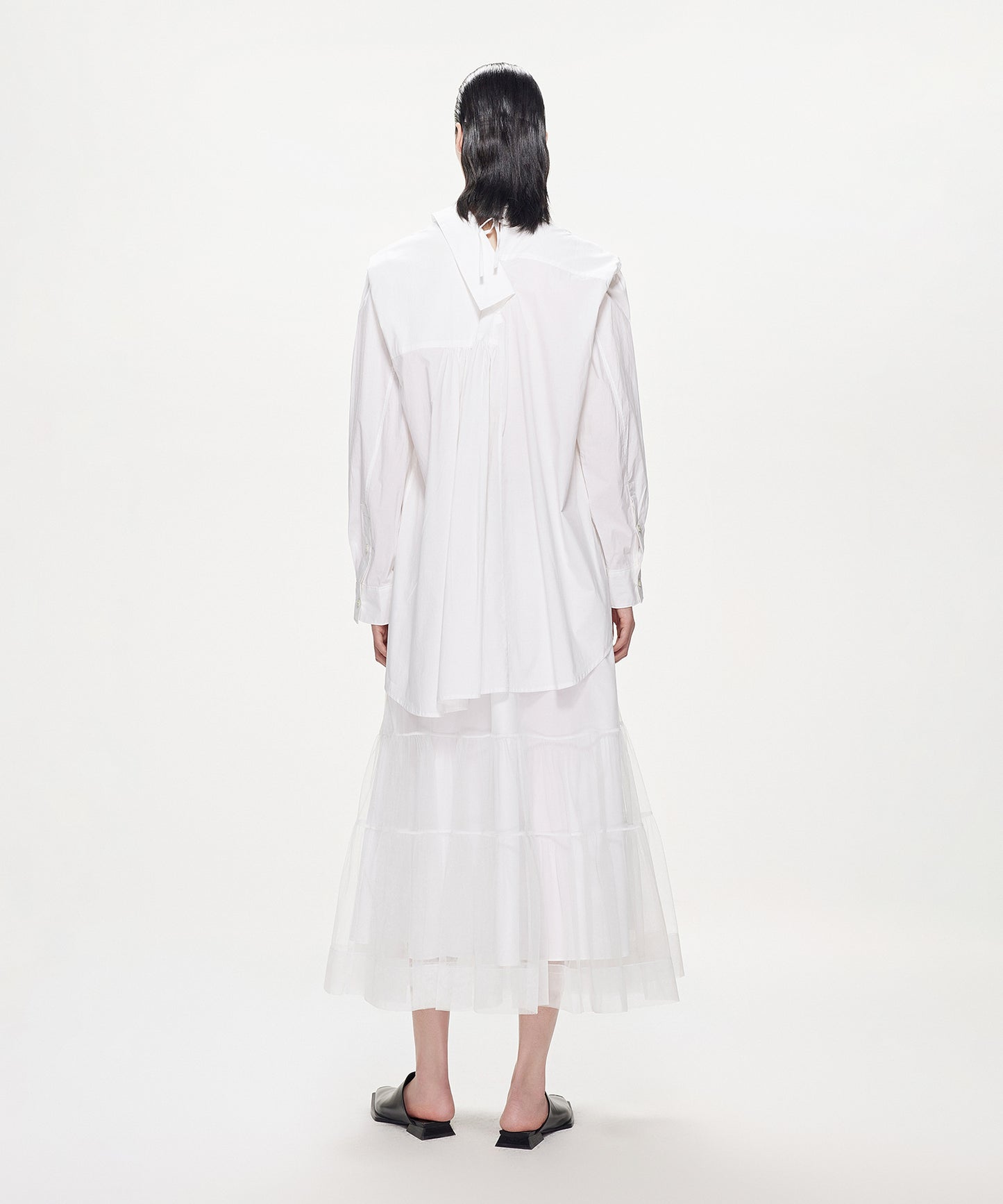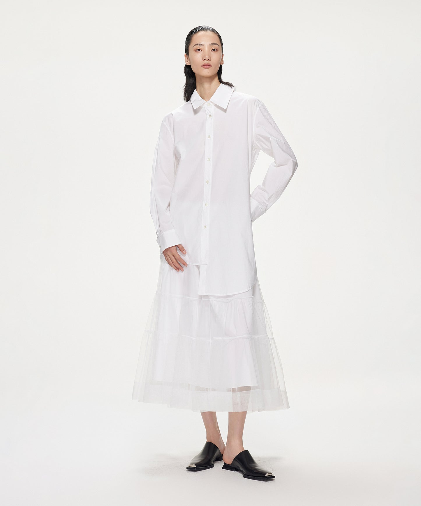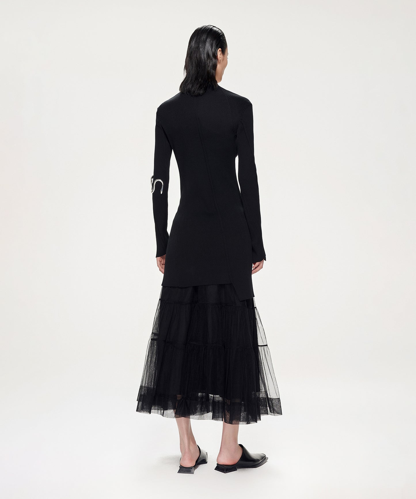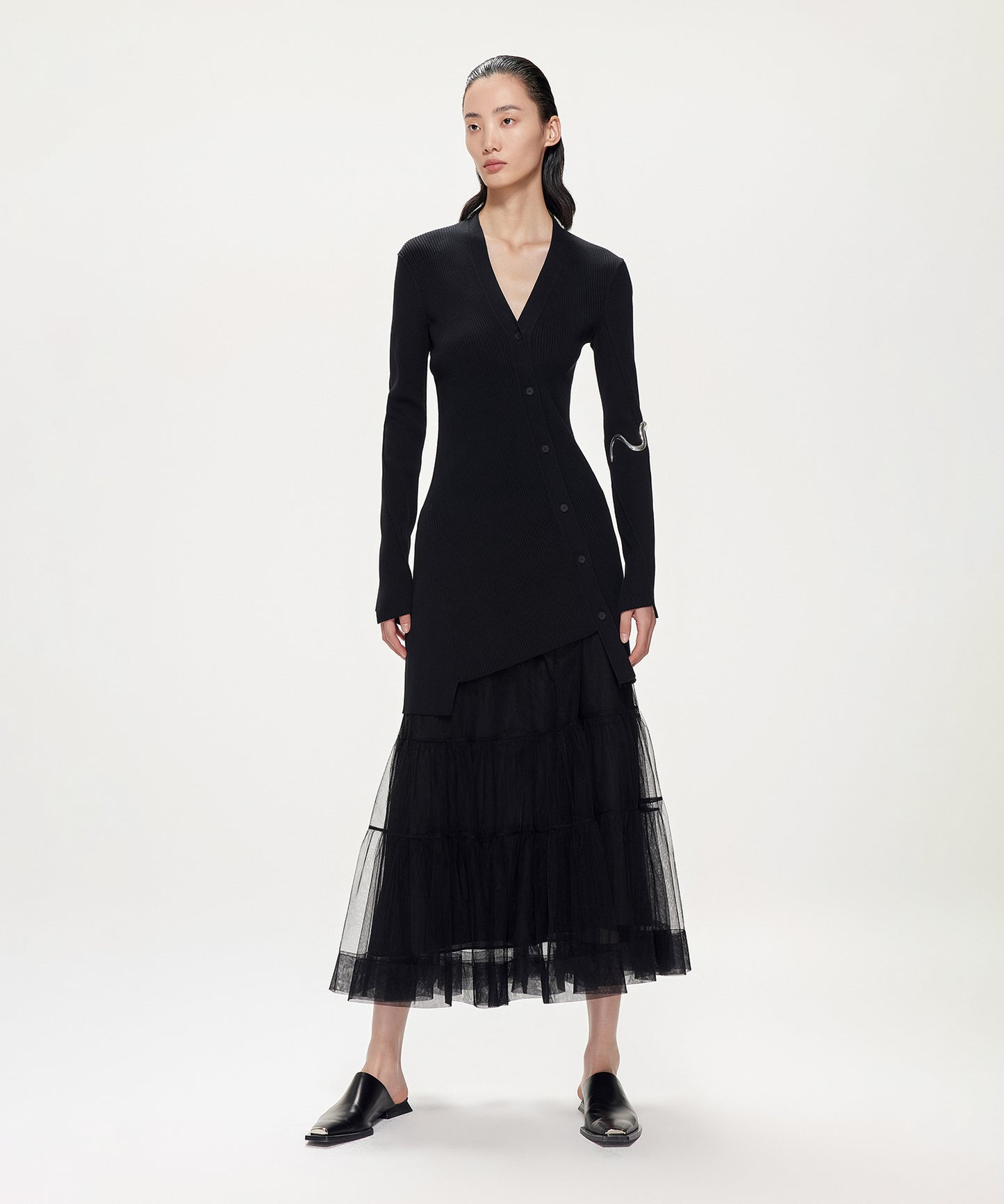 エレガントで大人ガーリーなチュールティアードスカート。ふわっと立体的に広がるボリューム感がフェミニンな印象を与えます。ブーツと合わせたり、パンツとのレイヤードスタイルもおすすめです。