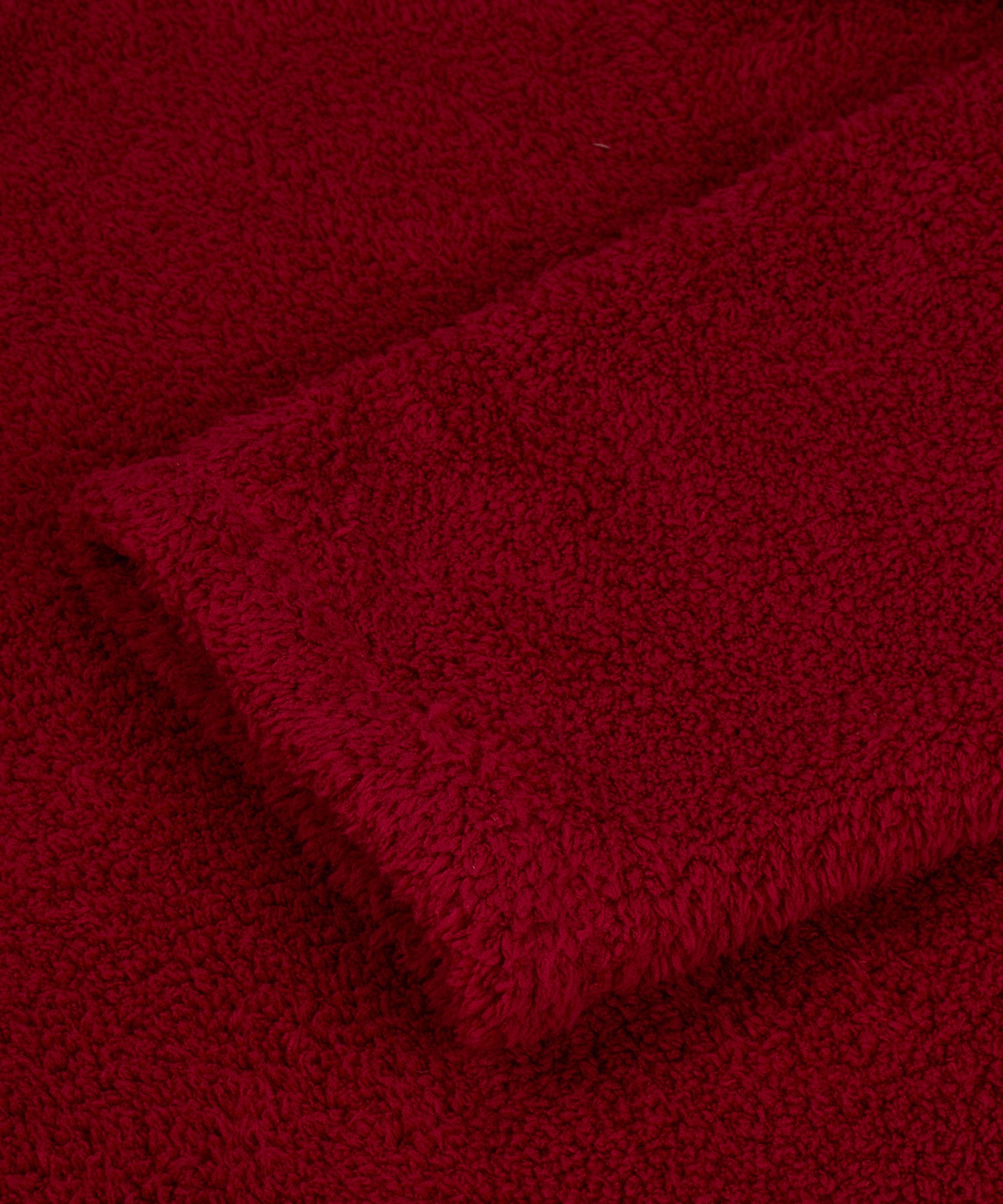 大判のふわふわなフリース生地を使用した一枚。厚みのある柔らかな質感で、秋冬シーズンを暖かく快適に過ごせます。包み込まれるような心地よさに加え、左右には大きなポケットを備え、実用性も兼ね備えています。