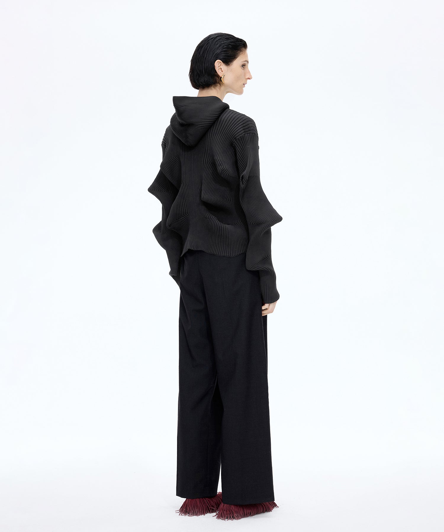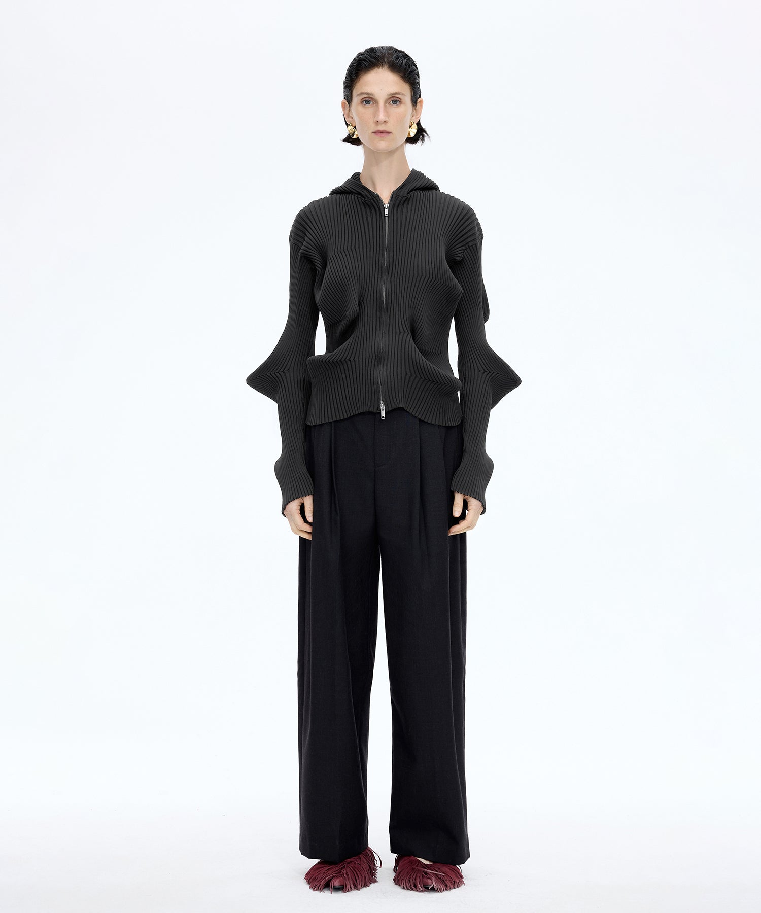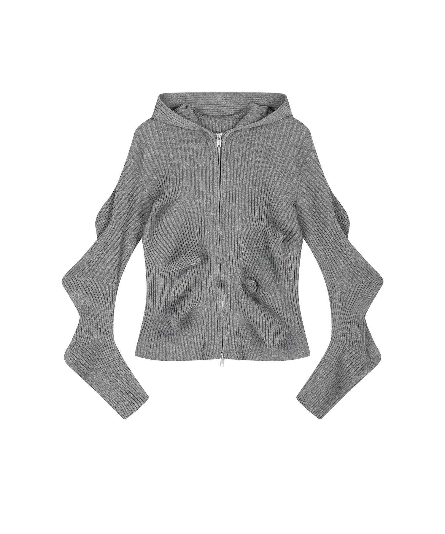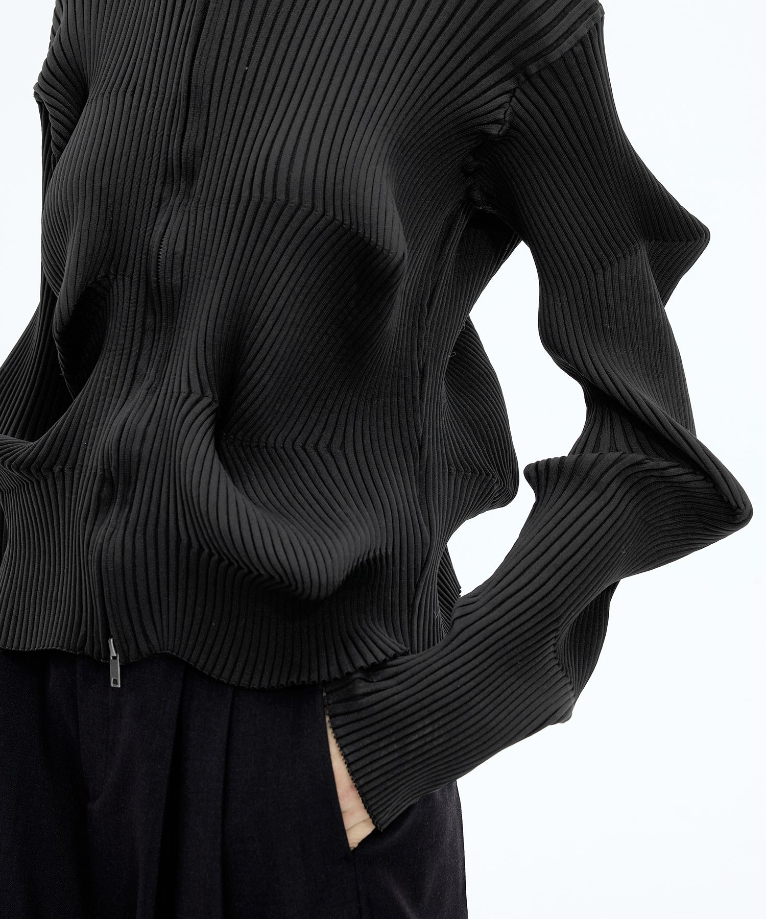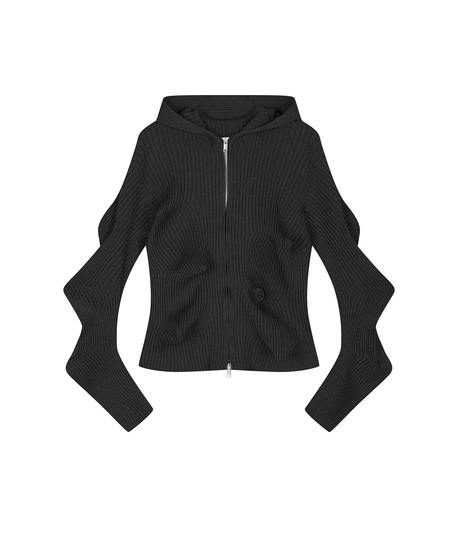 JNBY定番のユニークなフォルムが魅力のジップアップカーディガン。ニットならではの立体的なシルエットを楽しめます。ファッショナブルなデザインで、スタイリングに個性と洗練をプラスする一着です。