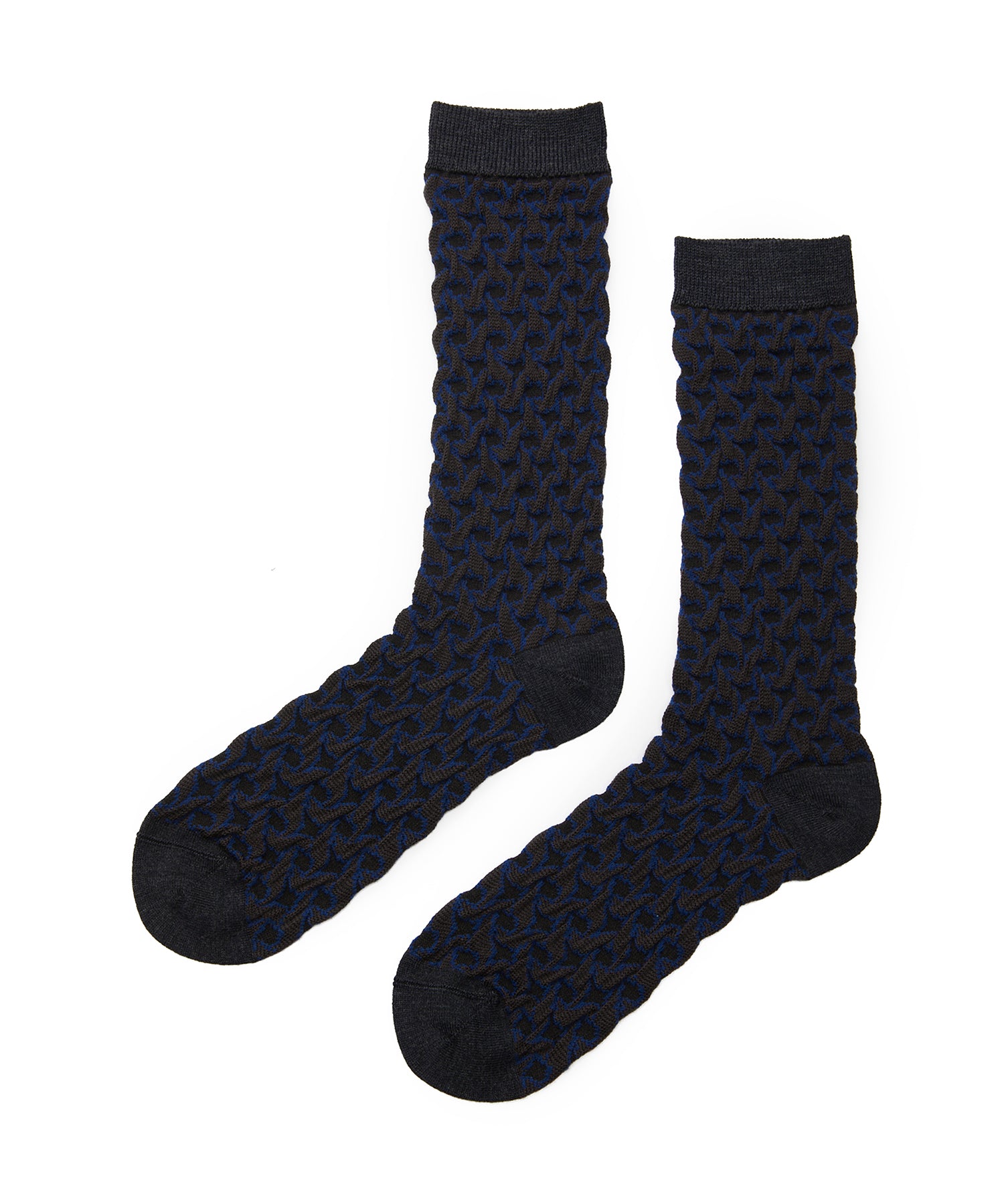 ポコポコと凹凸感のあるジャカードソックスです。 ほどよい厚みでオールシーズン履いていただけます。 パンプス、スニーカー、ショートブーツからチラッと見せることで、スタイリングの幅が広がるアイテムです。