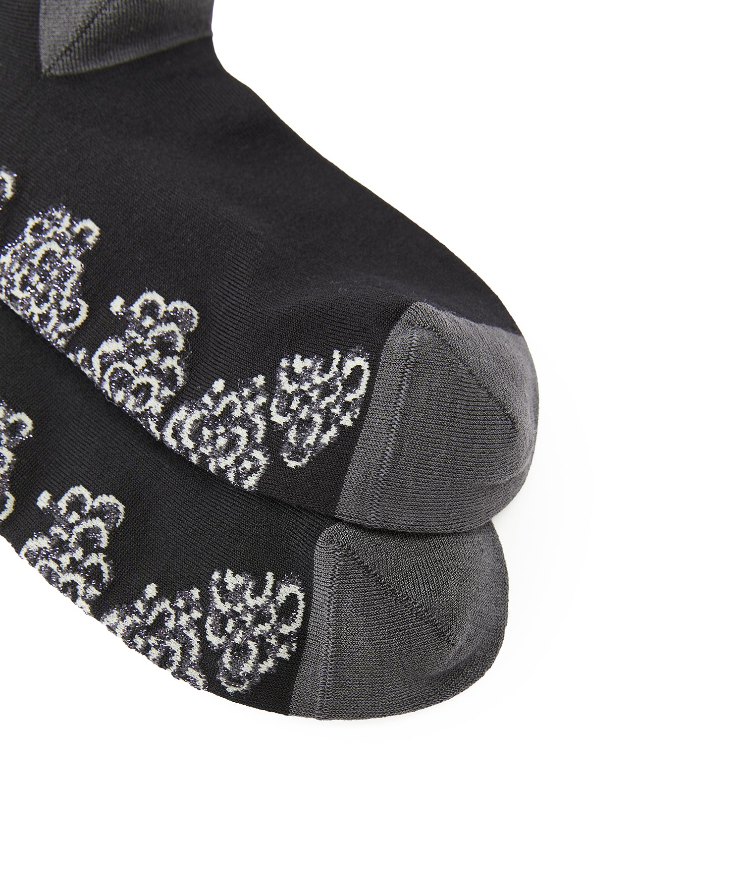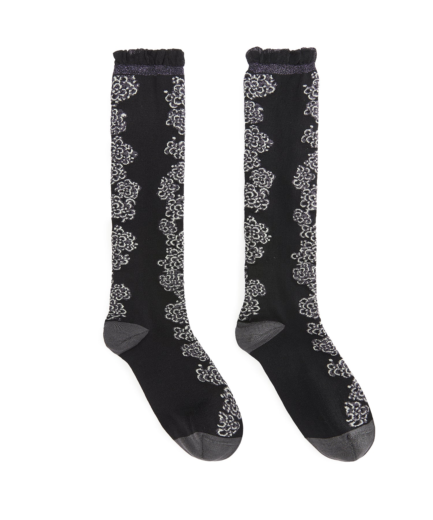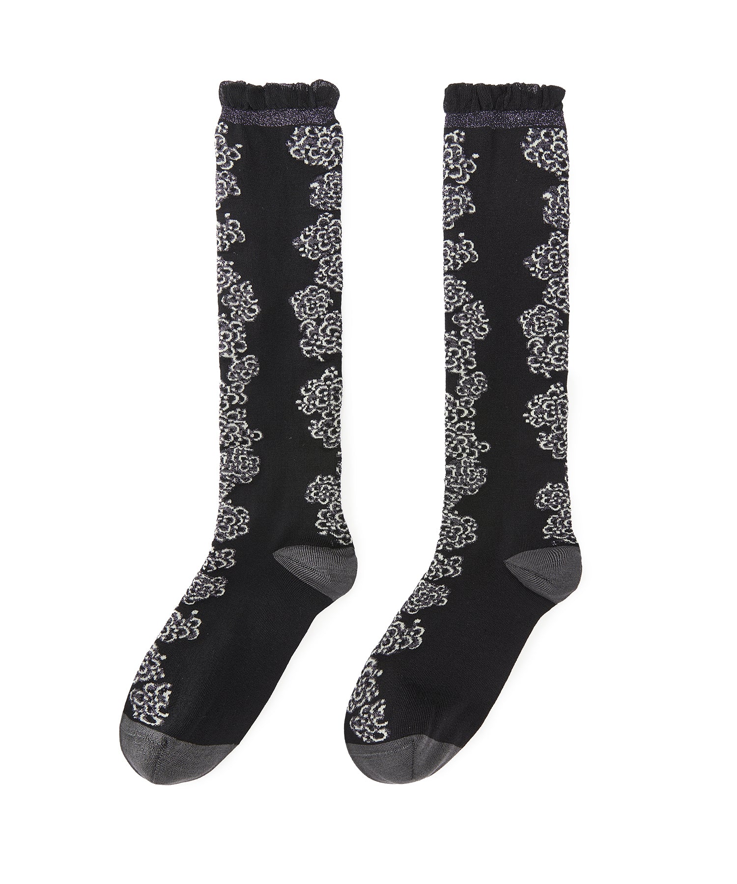 柔らかな風合いと程よい厚みが魅力のフラワー柄ハイソックス。きらりと輝くラメ糸を織り込み、軽やかな華やかさをプラスしました。重たくなりすぎないデザインで、季節を問わず活躍する万能アイテムです。