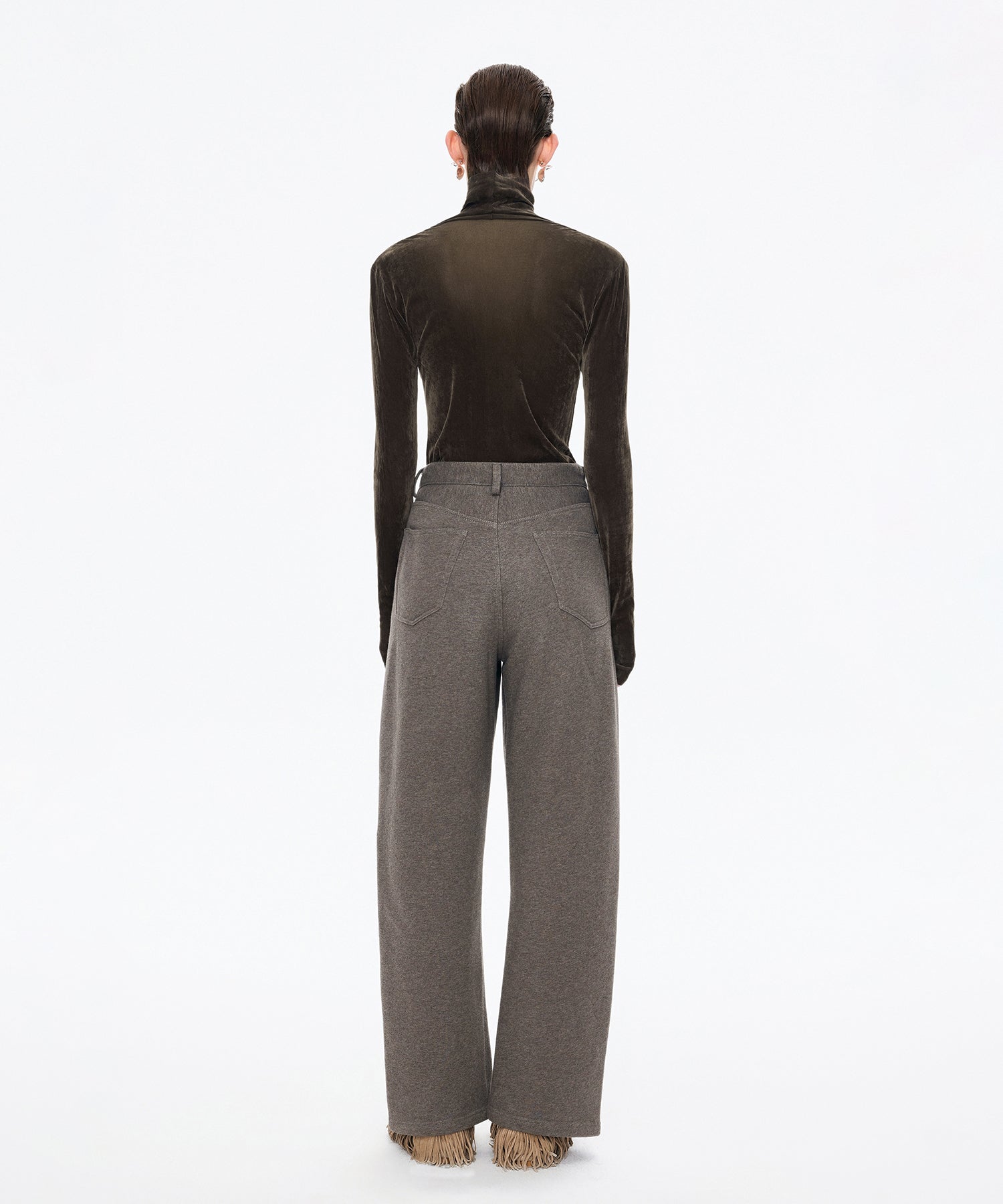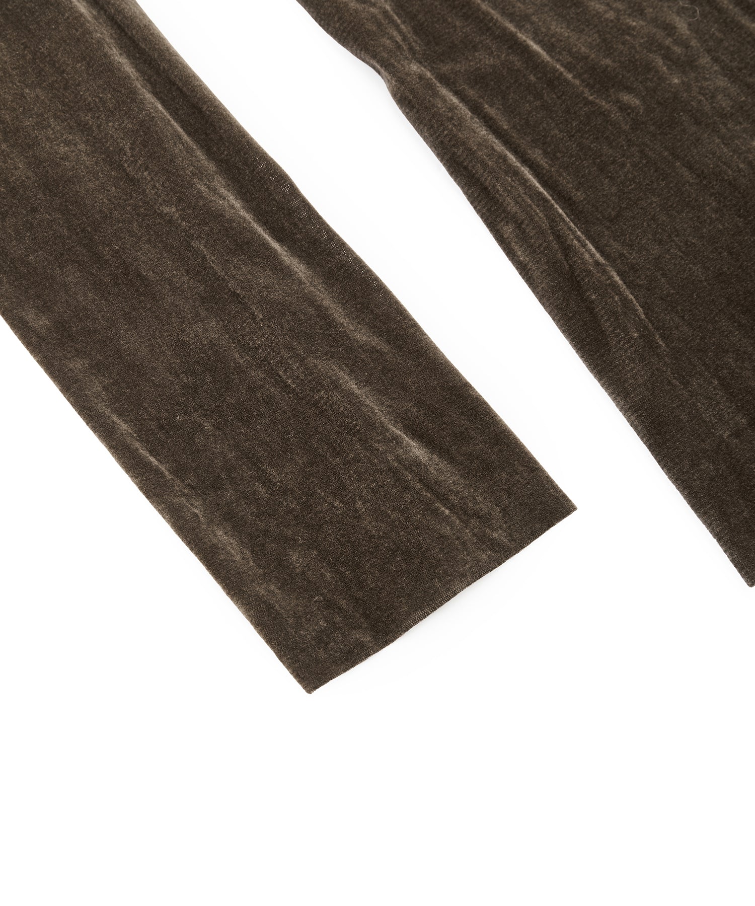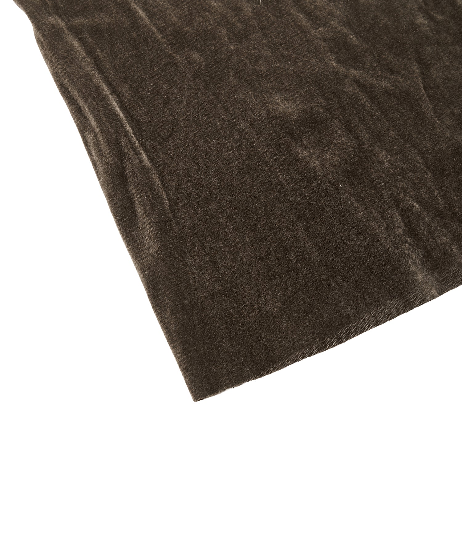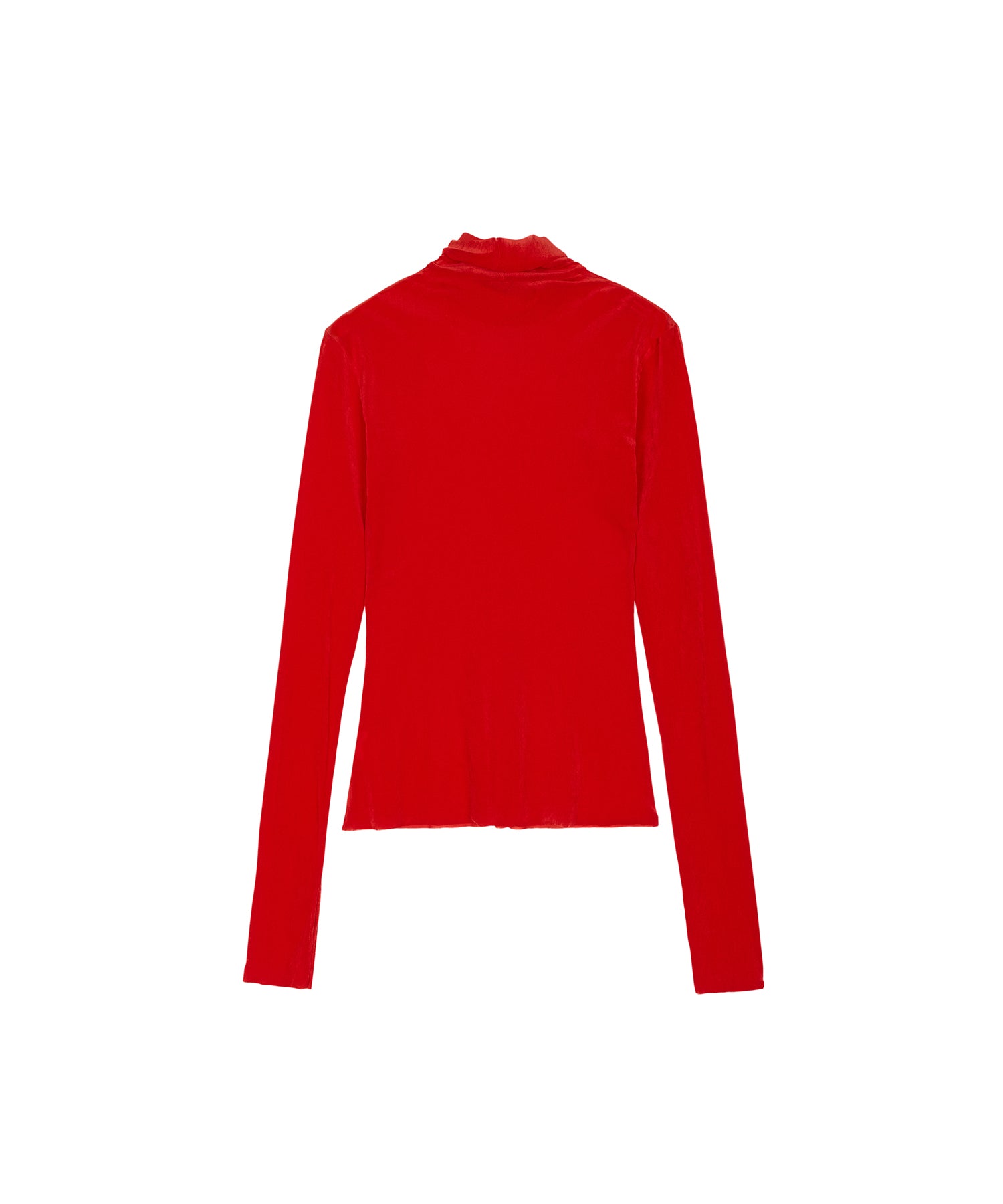 光沢のあるベロア素材が上品な印象を与えるタートルネックトップス。身体にほどよく沿うミニマルなシルエットが、素材の質感を一層引き立てます。シーズンムードを高める全5色展開で、一枚ではもちろん、ジャケットやニットのインナーとしても活躍します。