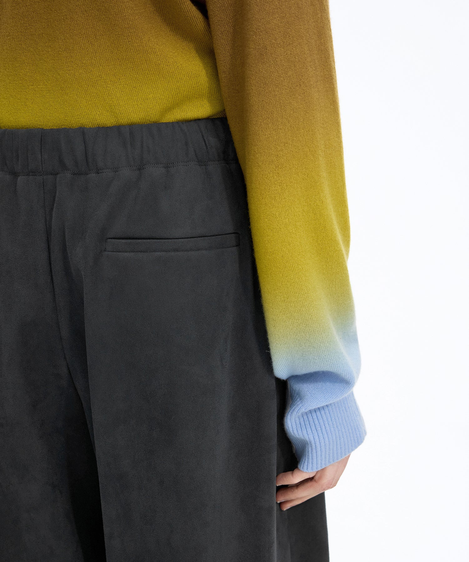 ほどよいハリと柔らかさを兼ね備えたスエード素材のパンツ。マットで上品な風合いと、ゆとりのあるシルエットが快適なはき心地を叶えます。シンプルながらも洗練されたデザインで、ニットやシャツと合わせるだけでこなれた印象に仕上がる万能アイテムです。