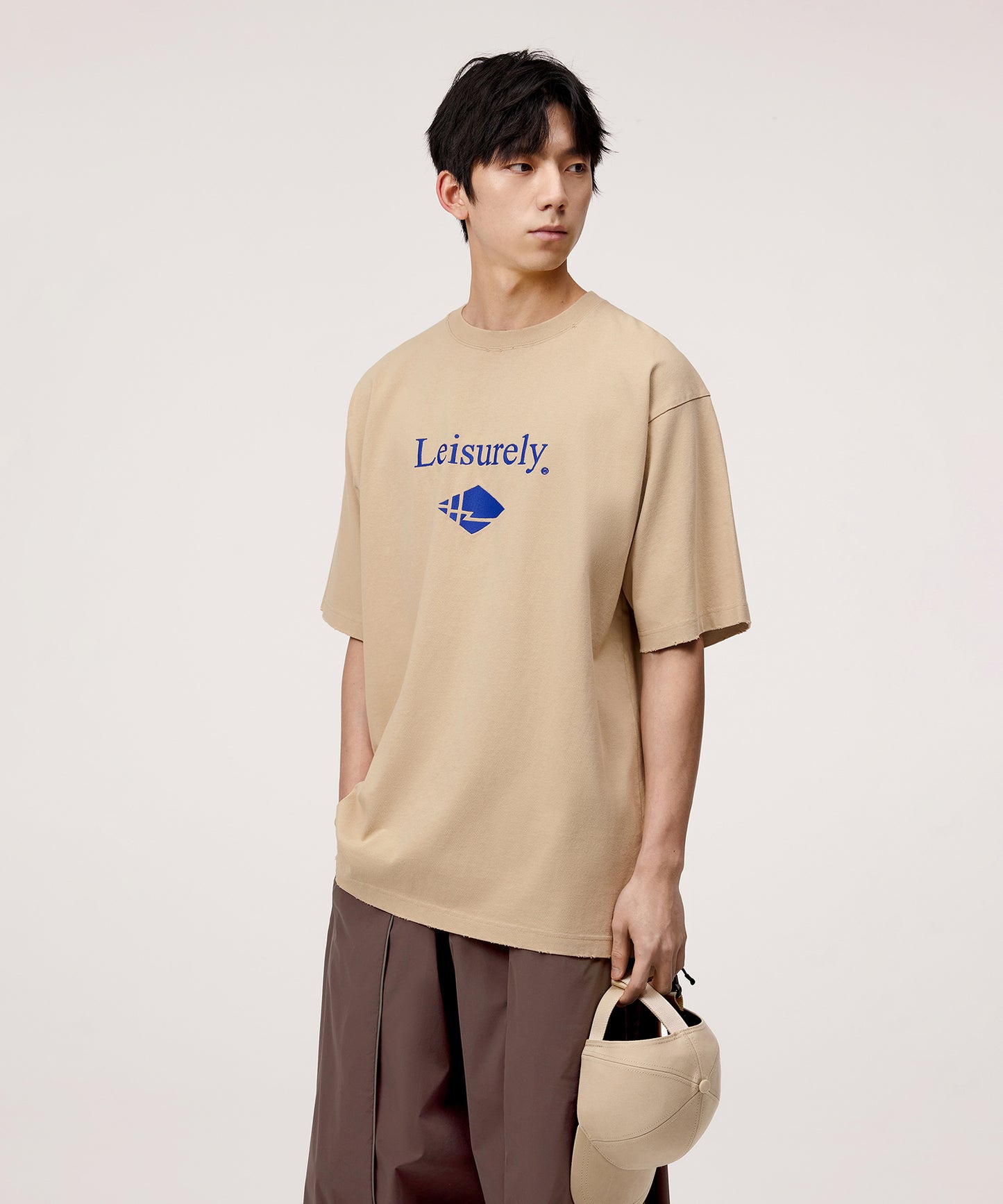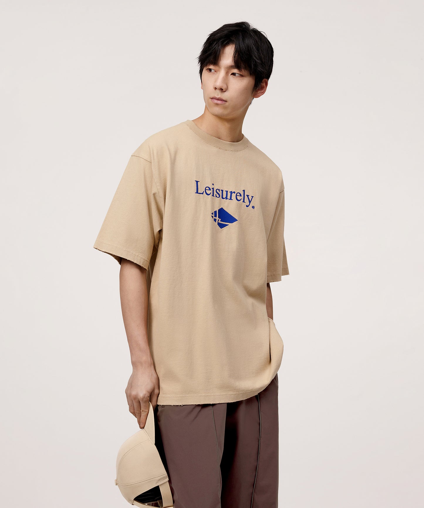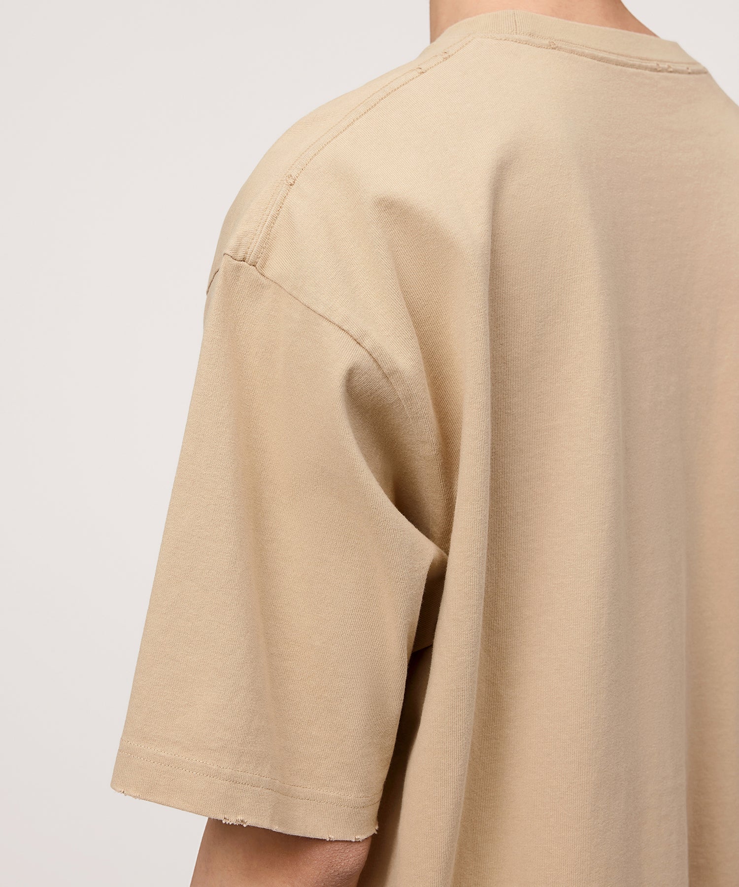 西湖をモチーフにしたロゴ刺繍がさりげなく光るTシャツ。襟元や袖口、裾にはさりげないダメージ加工を施し、ほどよくヴィンテージ感をプラス。シンプルなデザインながら、ディテールにこだわった一着です。カジュアルからきれいめまで、幅広いシーンで活躍します。