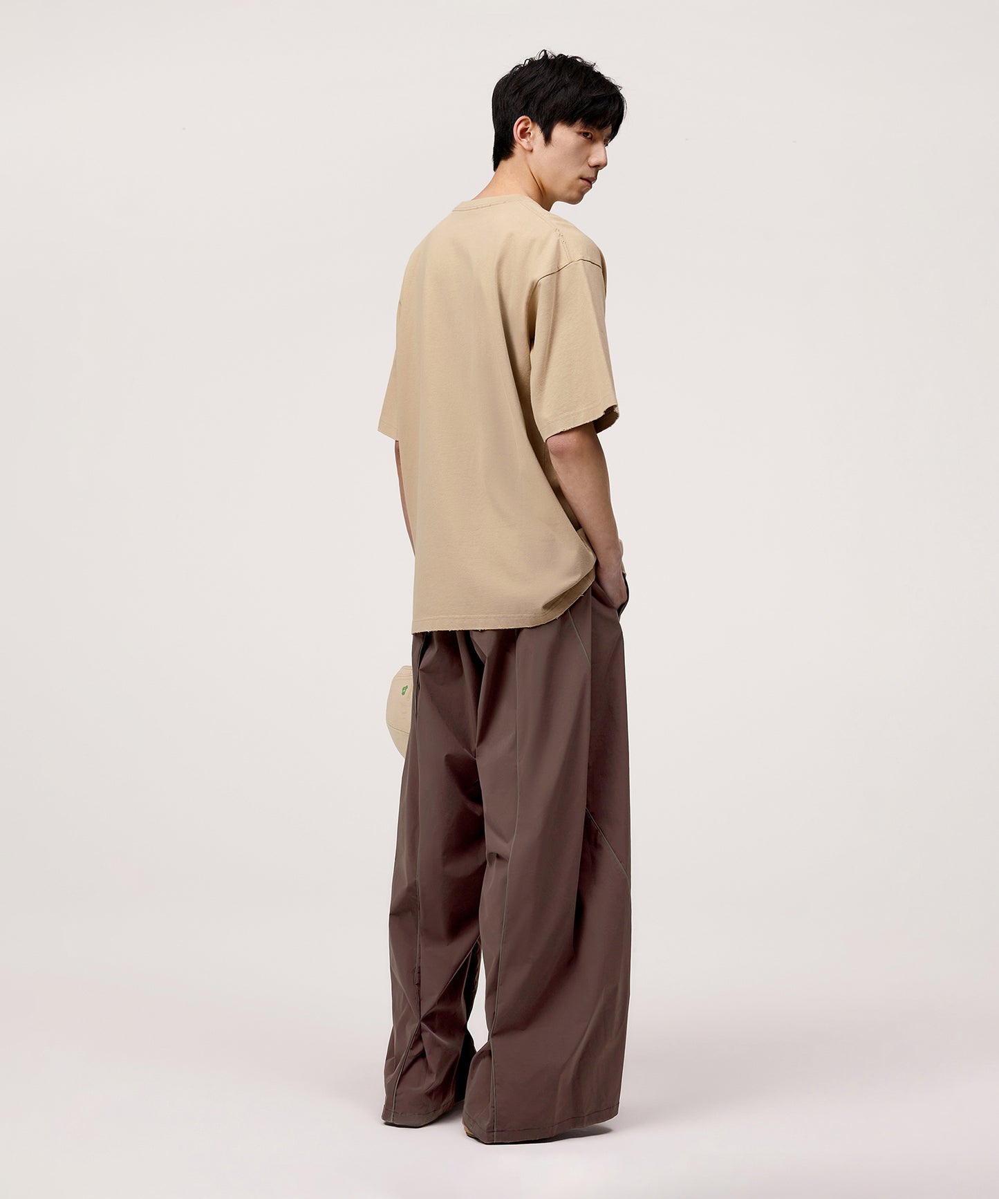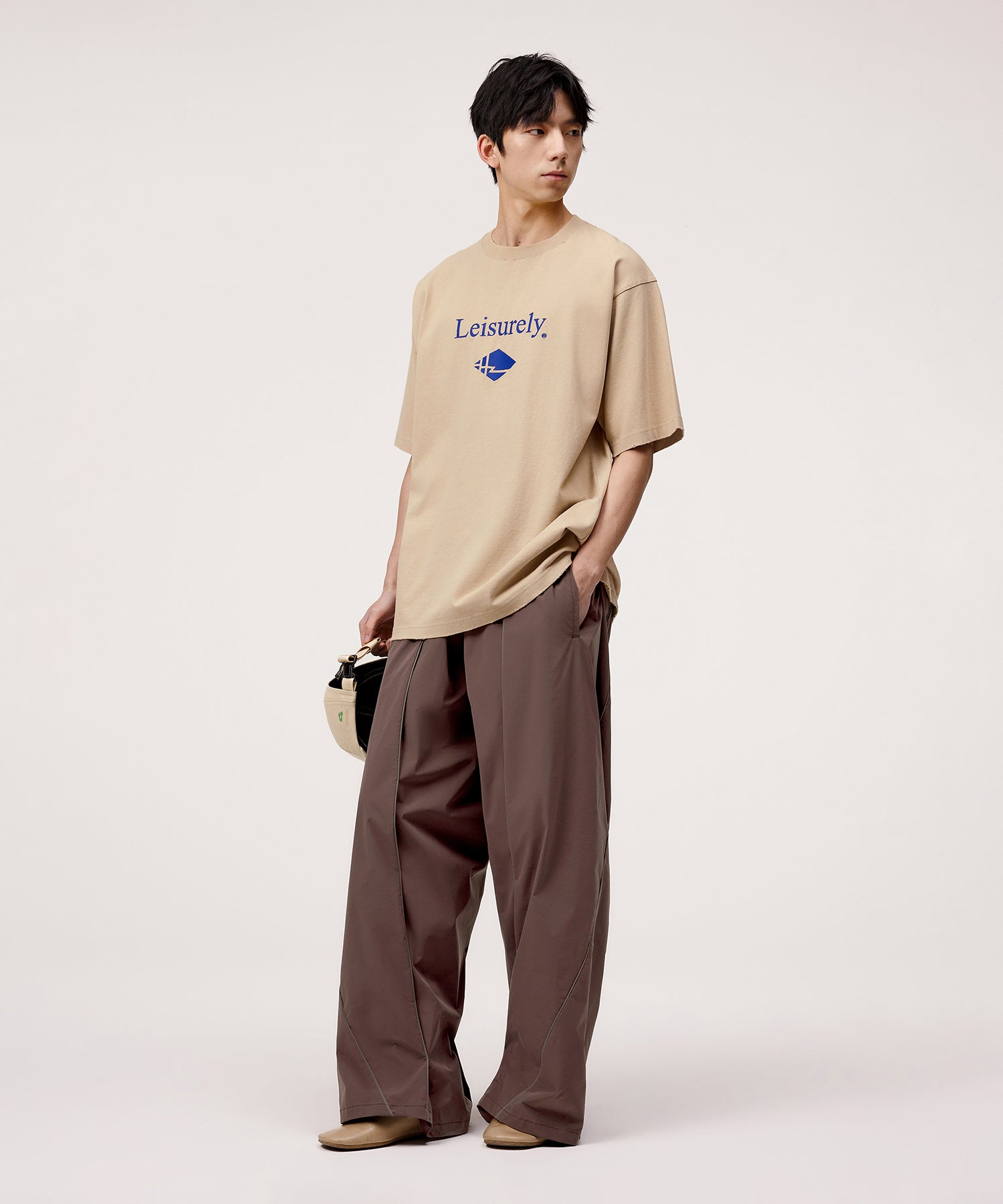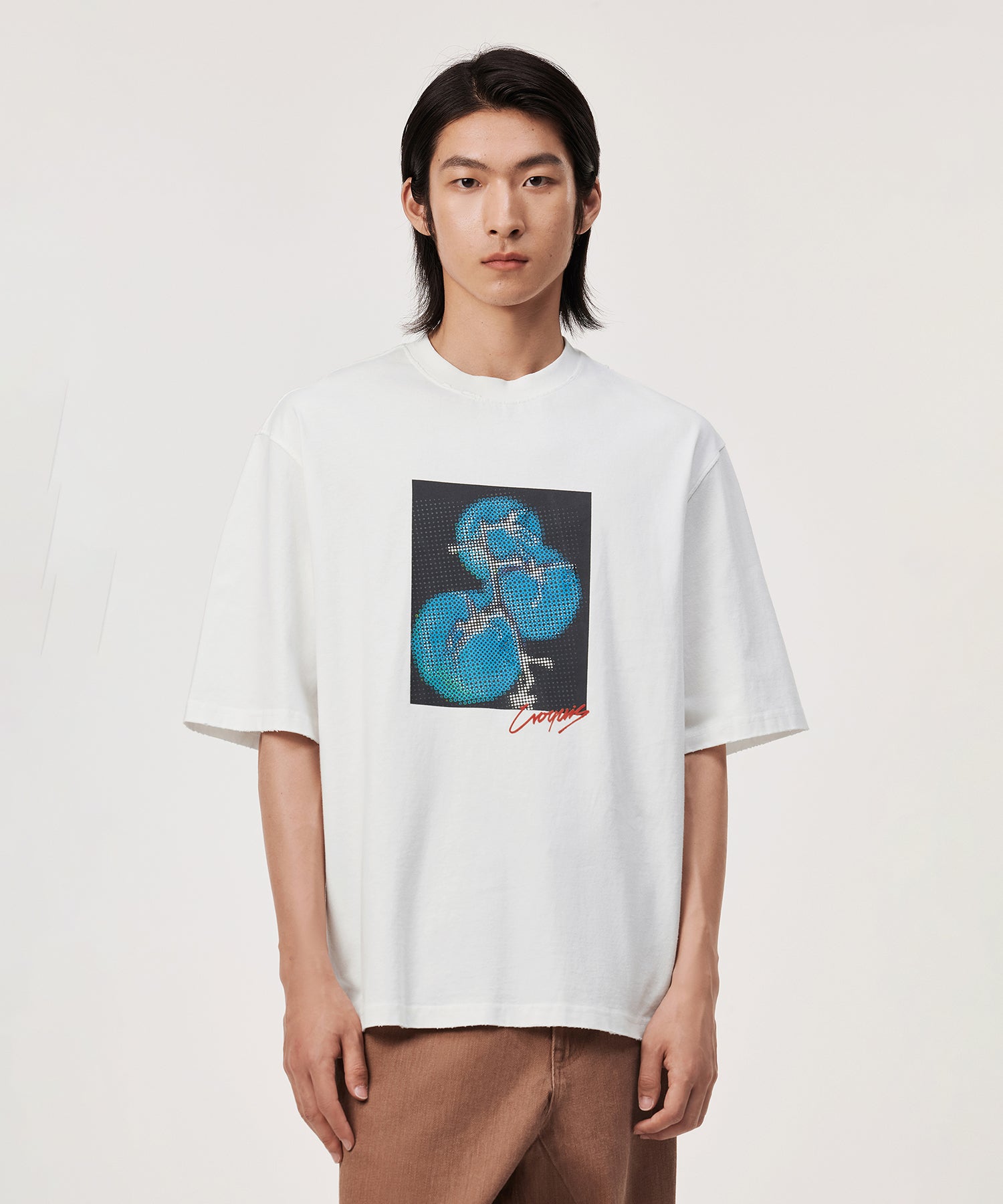 西湖をモチーフにしたロゴ刺繍がさりげなく光るTシャツ。襟元や袖口、裾にはさりげないダメージ加工を施し、ほどよくヴィンテージ感をプラス。シンプルなデザインながら、ディテールにこだわった一着です。カジュアルからきれいめまで、幅広いシーンで活躍します。