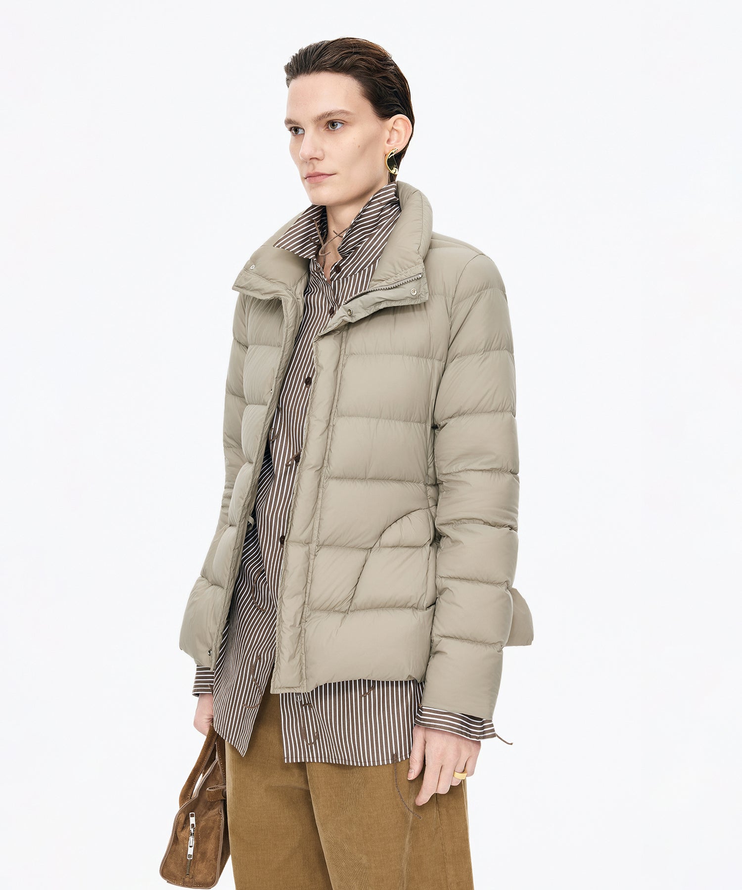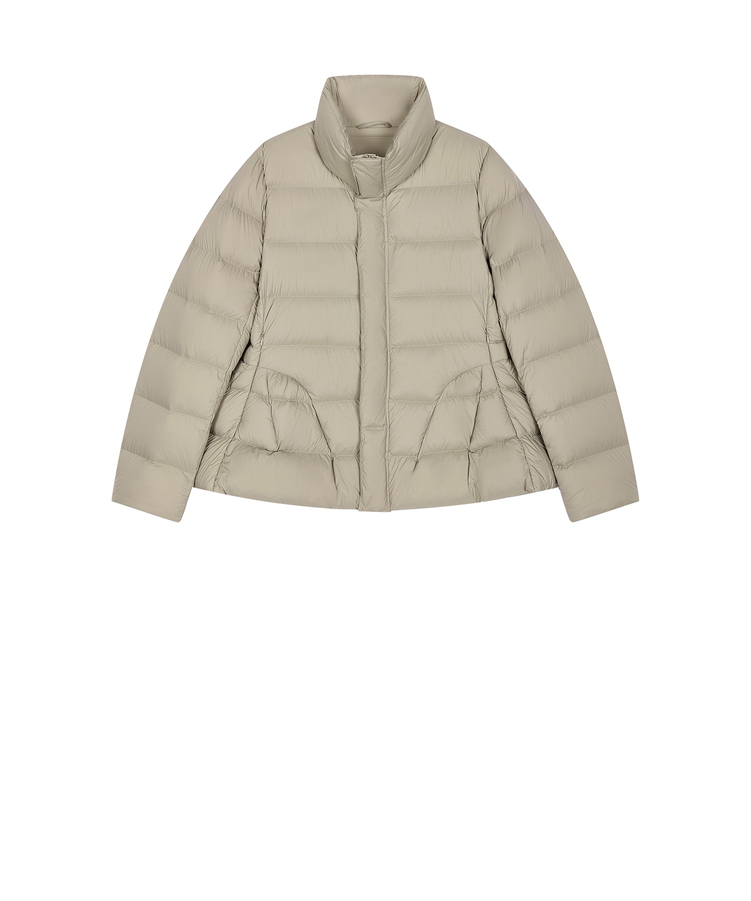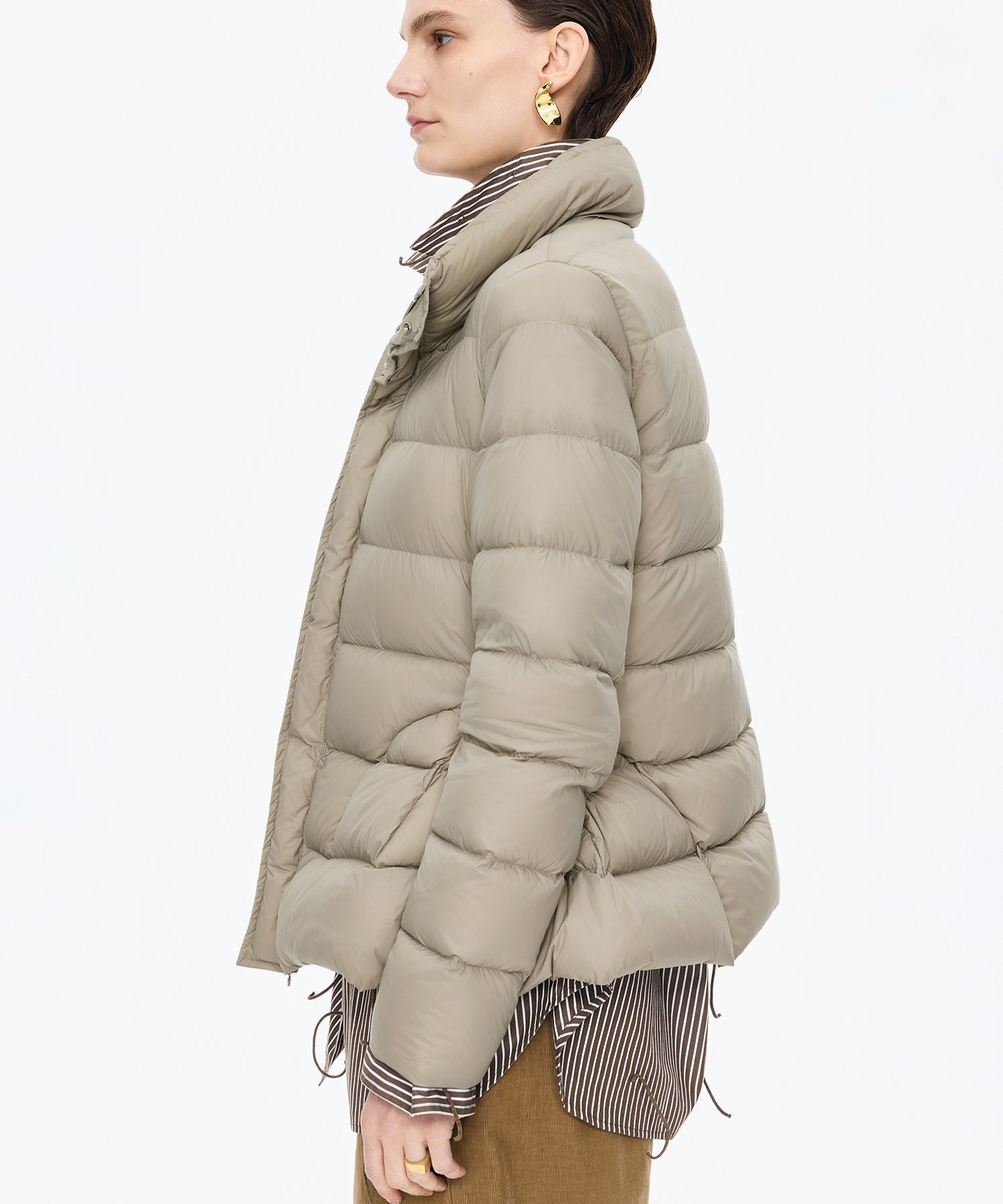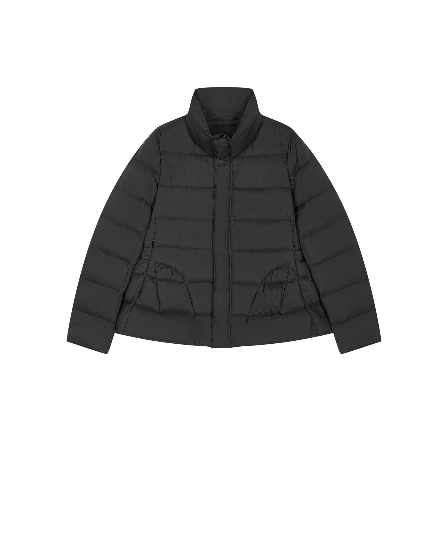 ペプラムシルエットが美しいダウンジャケット。マットな質感とふんわり柔らかな軽さで、リラックスした着心地を叶えます。ジャストサイズで着ることで、上品なペプラムラインが際立ち、エレガントな印象を演出します。