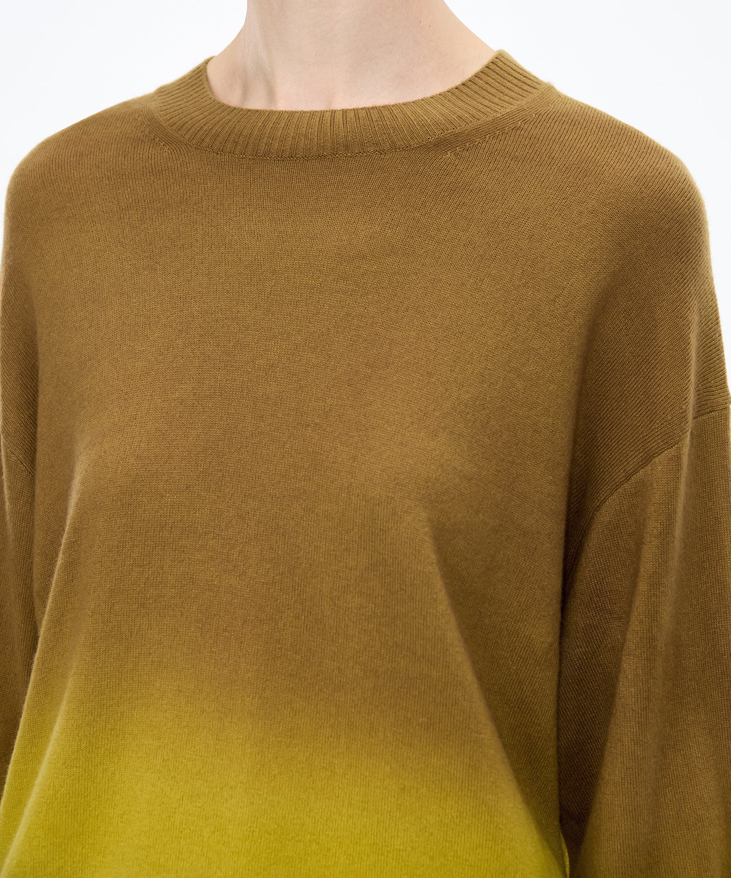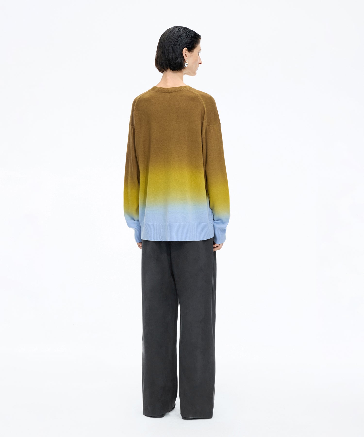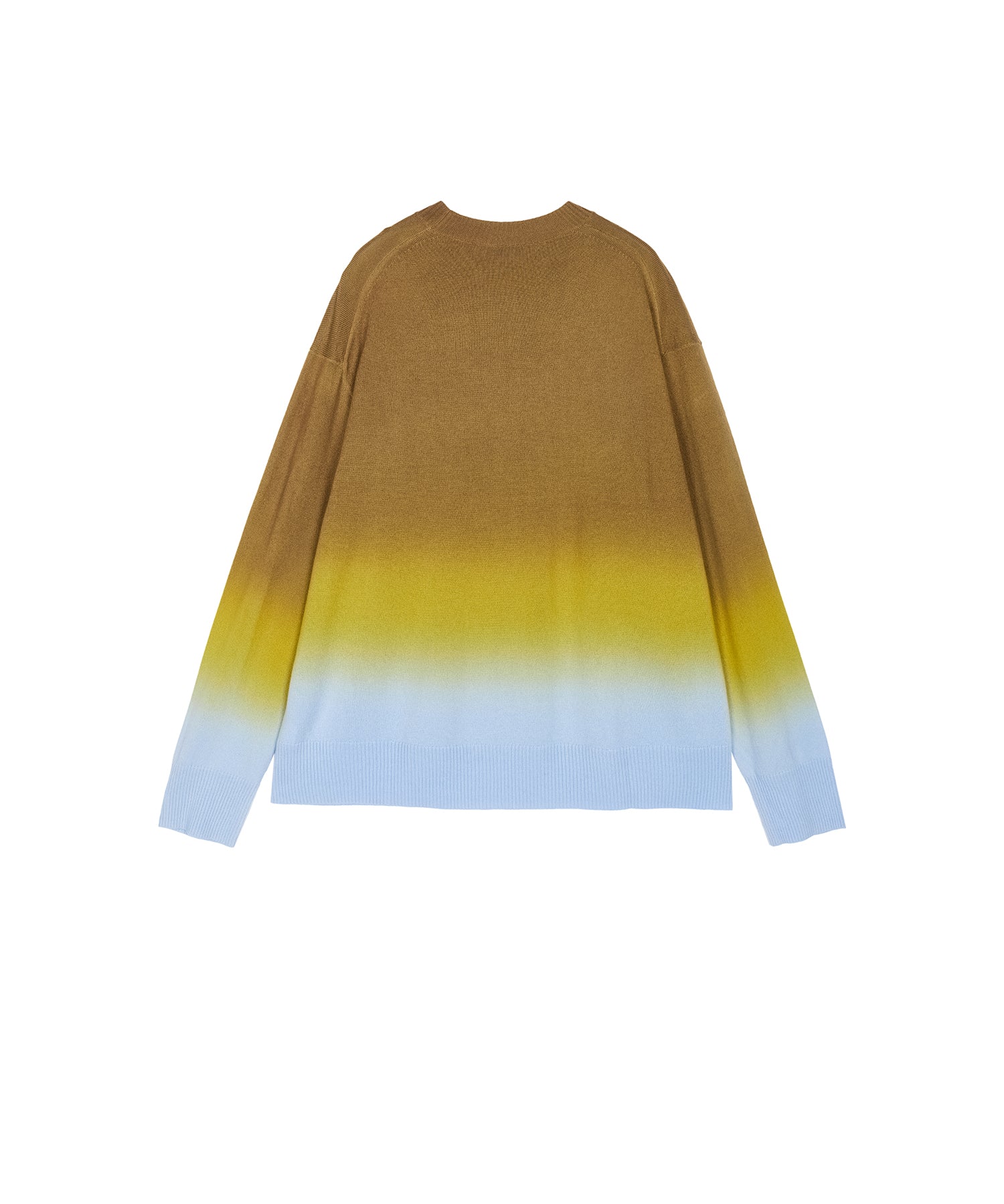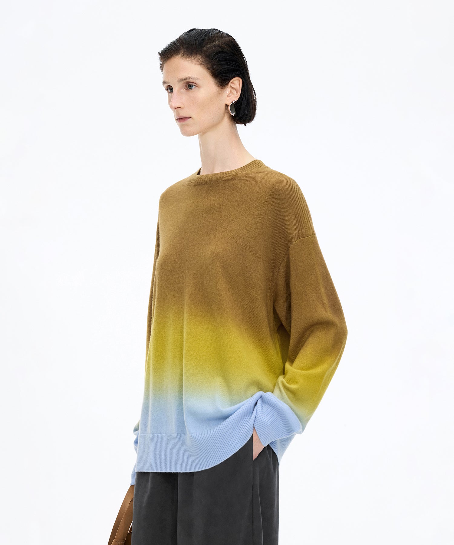 グラデーションが印象的なクルーネックセーター。なめらかな風合いと程よいゆとりのあるシルエットで、リラックス感のある着心地を叶えます。デニムやワイドパンツなど、シンプルなボトムスとの相性も抜群です。