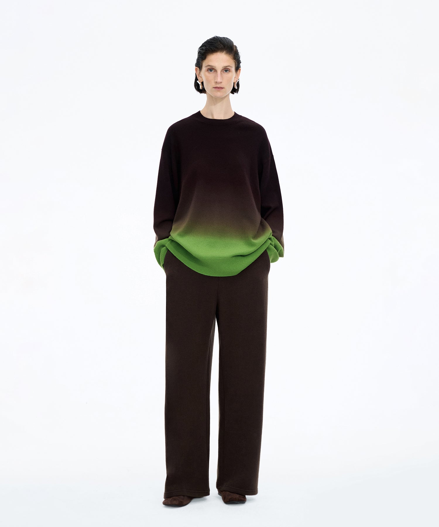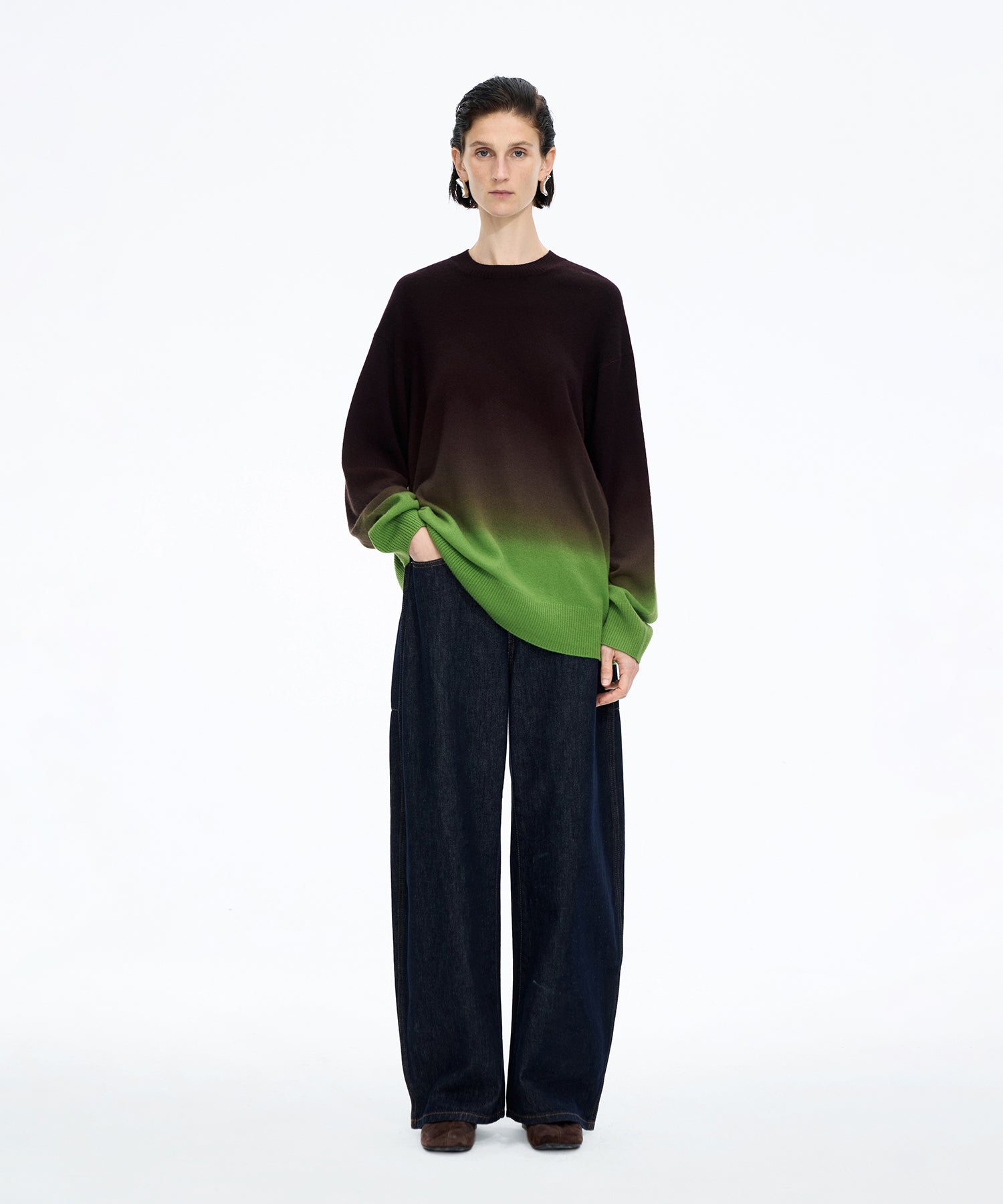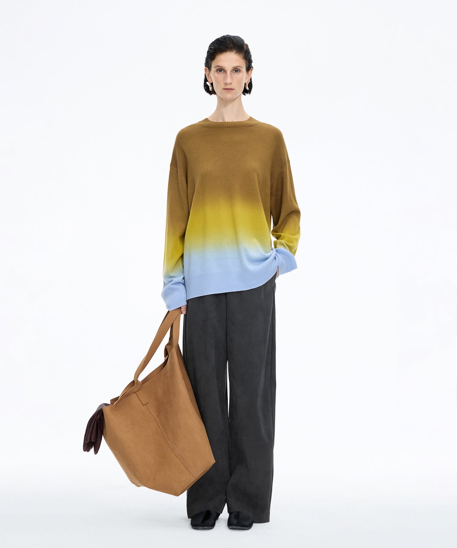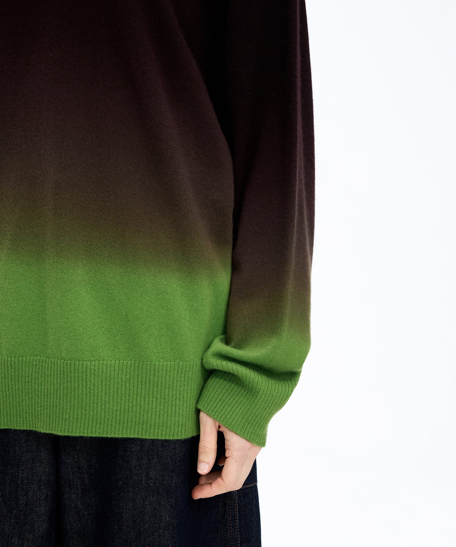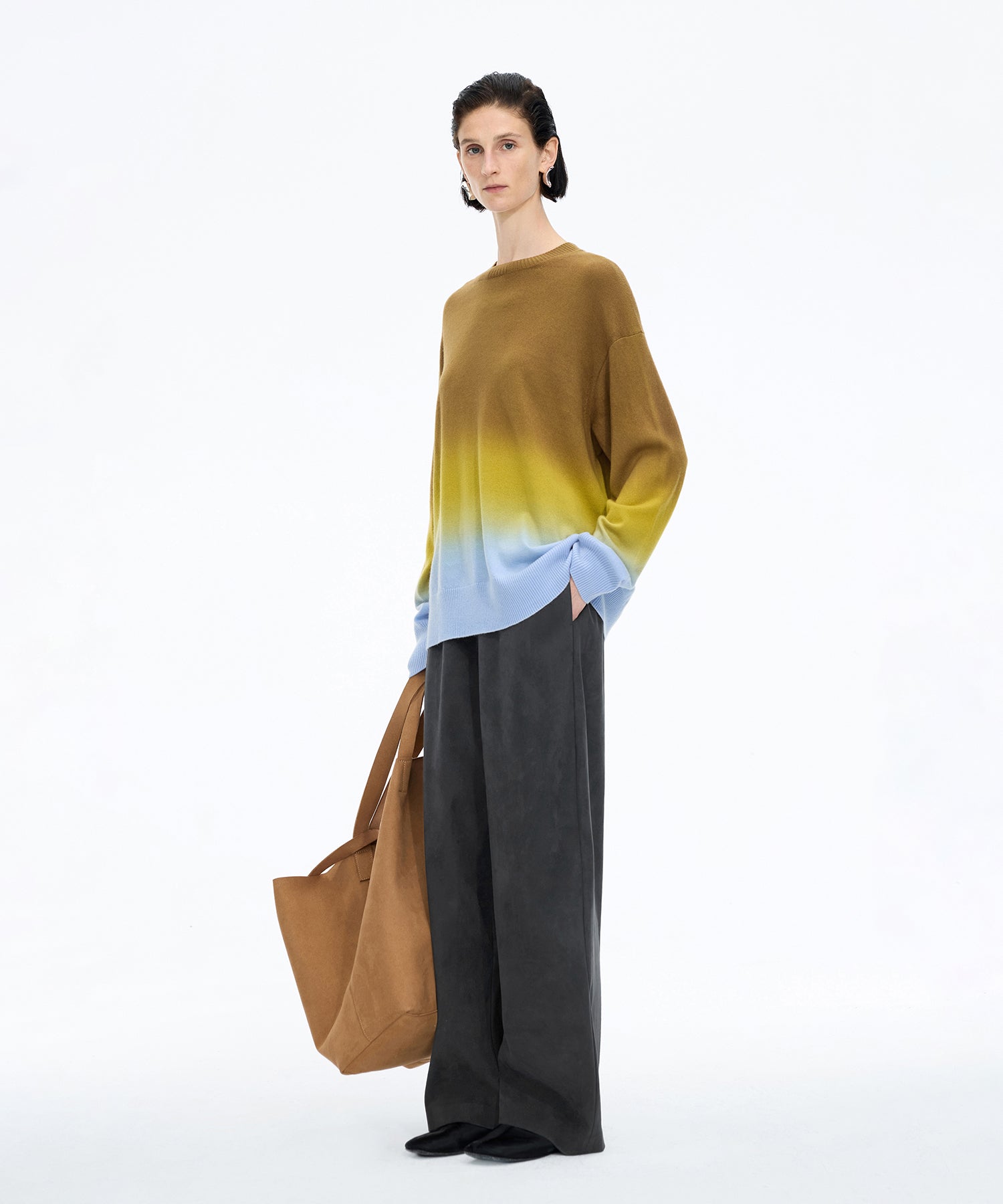 グラデーションが印象的なクルーネックセーター。なめらかな風合いと程よいゆとりのあるシルエットで、リラックス感のある着心地を叶えます。デニムやワイドパンツなど、シンプルなボトムスとの相性も抜群です。