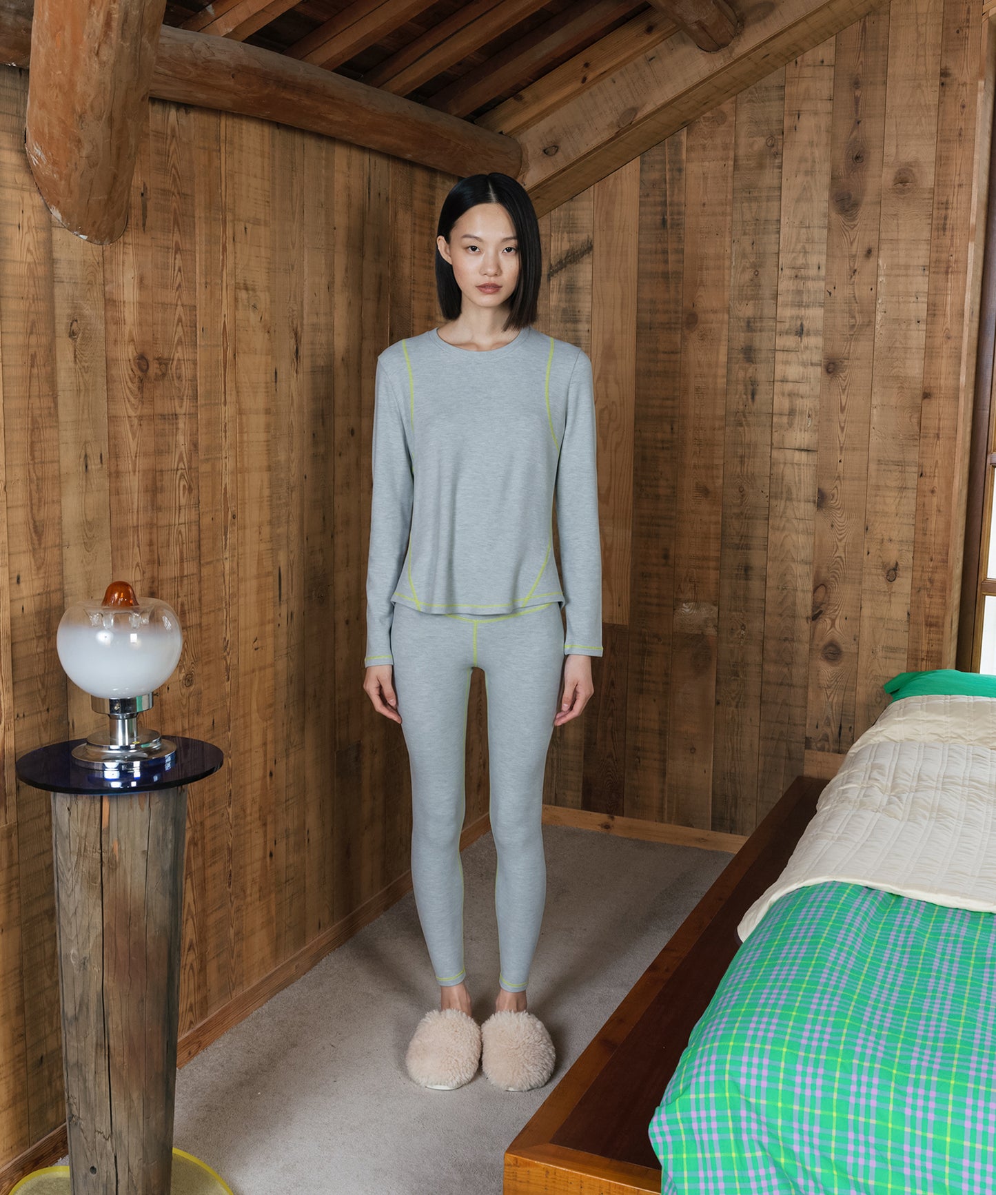 このスリムフィットカットソーは、配色ステッチが目を引く一枚です。シンプルなデザインは、一枚でもインナーとしてもお使いいただける便利なアイテムです。伸縮性に優れているため、アクティブなシーンでも快適に着用できます。またHOME High-rise Stretch-jersey Leggingsとセットアップで着用可能です。