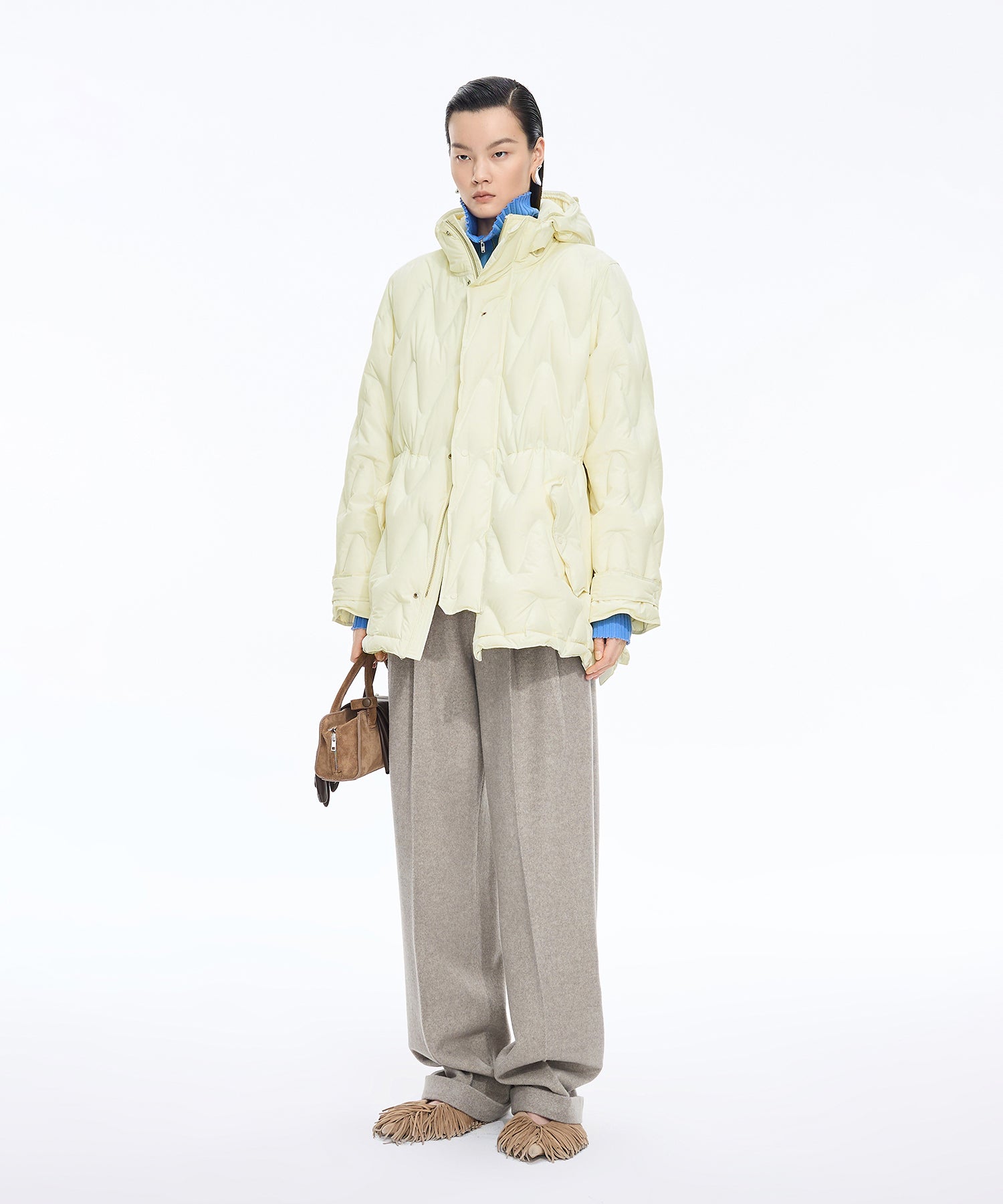 ふんわりとした軽さと柔らかなキルティングが魅力のダウンジャケット。マットな風合いがナチュラルで優しい印象を添え、軽量でリラックスした着心地を叶えます。程よい丈感でスカートにもパンツにも合わせやすく、デイリーからお出かけまで幅広く活躍する一枚です。