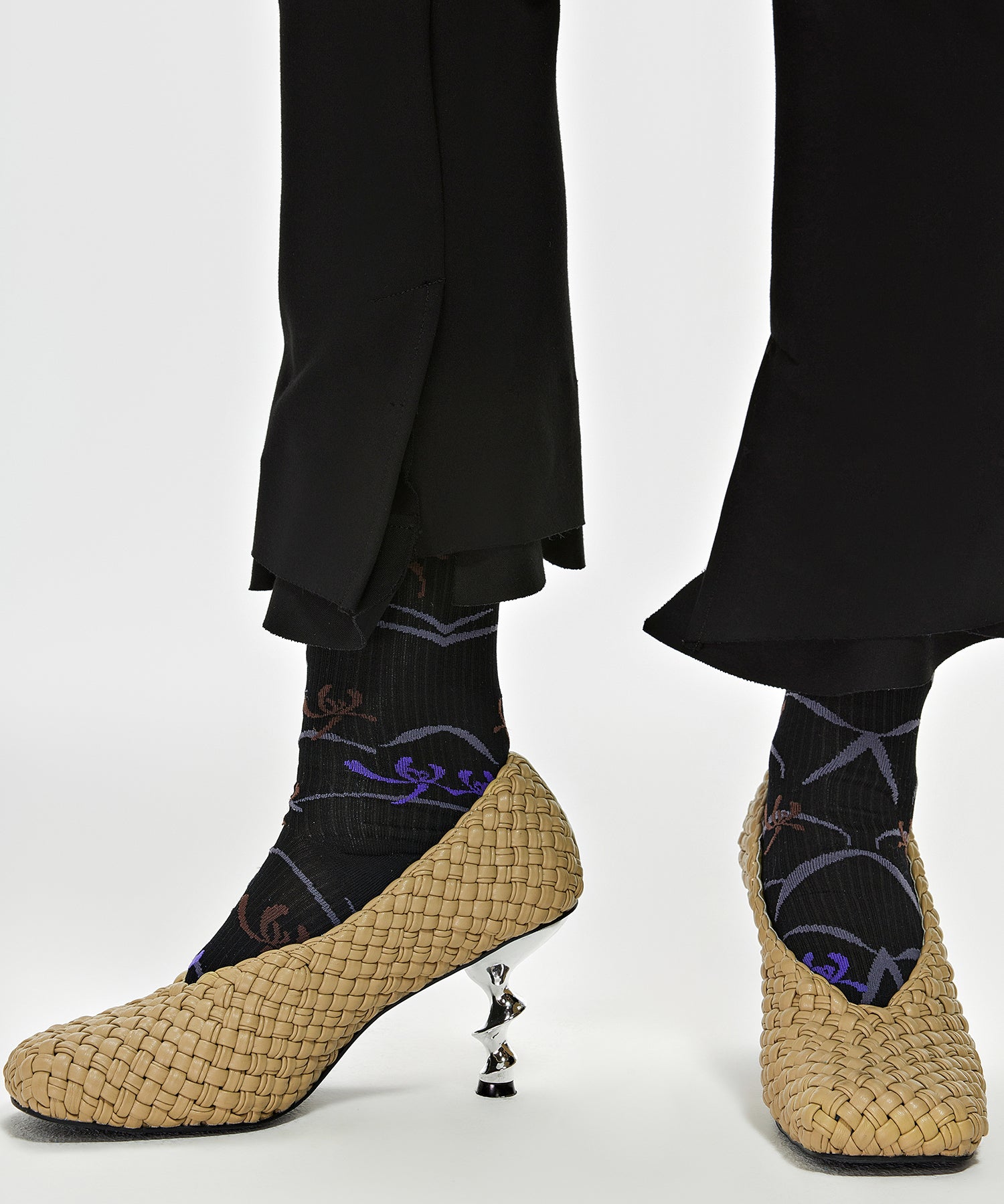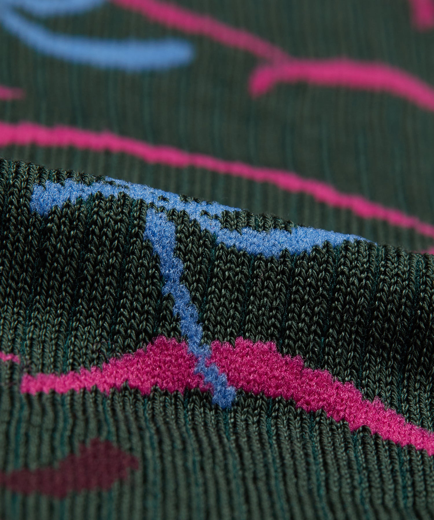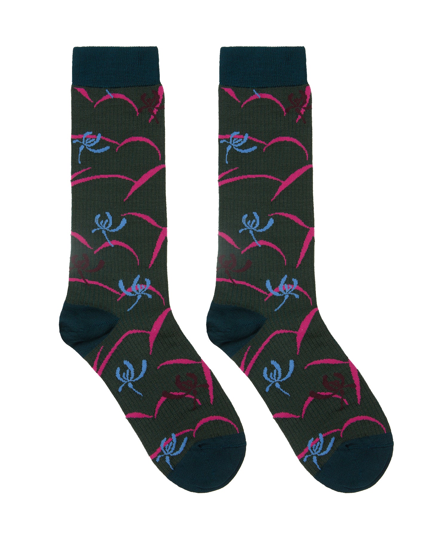 伝統的な植物をモチーフにした、タイガーテイルオーキッド柄のジャカードソックスです。 ほどよい厚みでオールシーズ履いていただけます。 パンプスやスニーカー、サンダルからチラッと覗かせてスタリングの幅が広がります。 コーディネートのアクセントにいかがでしょうか。
