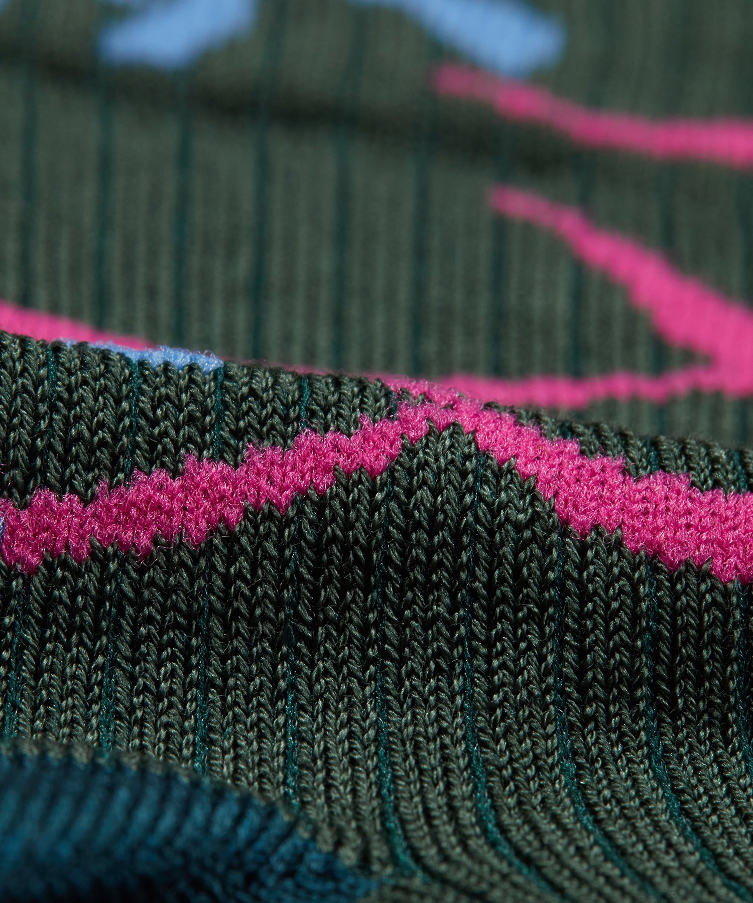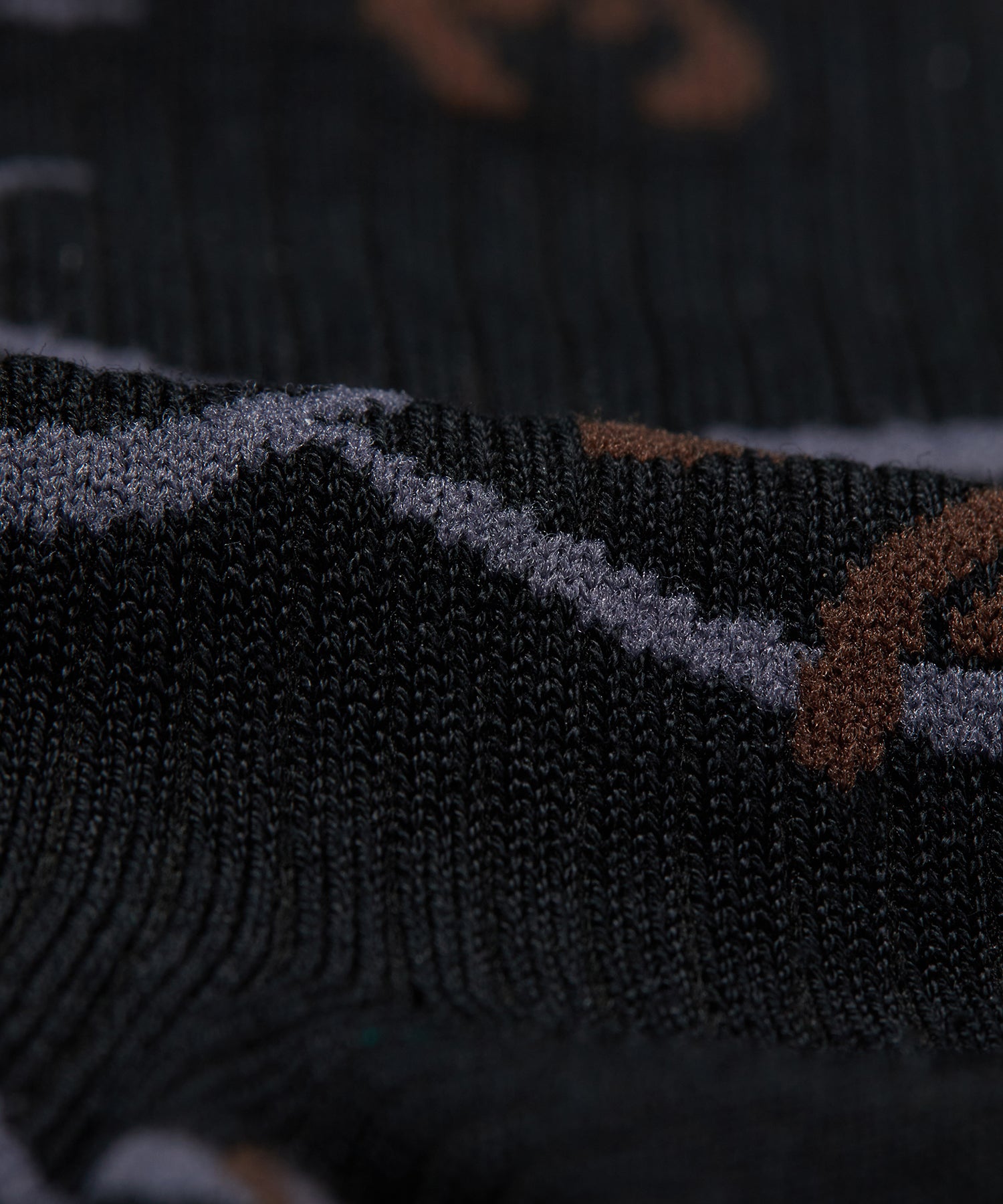 伝統的な植物をモチーフにした、タイガーテイルオーキッド柄のジャカードソックスです。 ほどよい厚みでオールシーズ履いていただけます。ローカットスニーカーとも相性抜群です。
