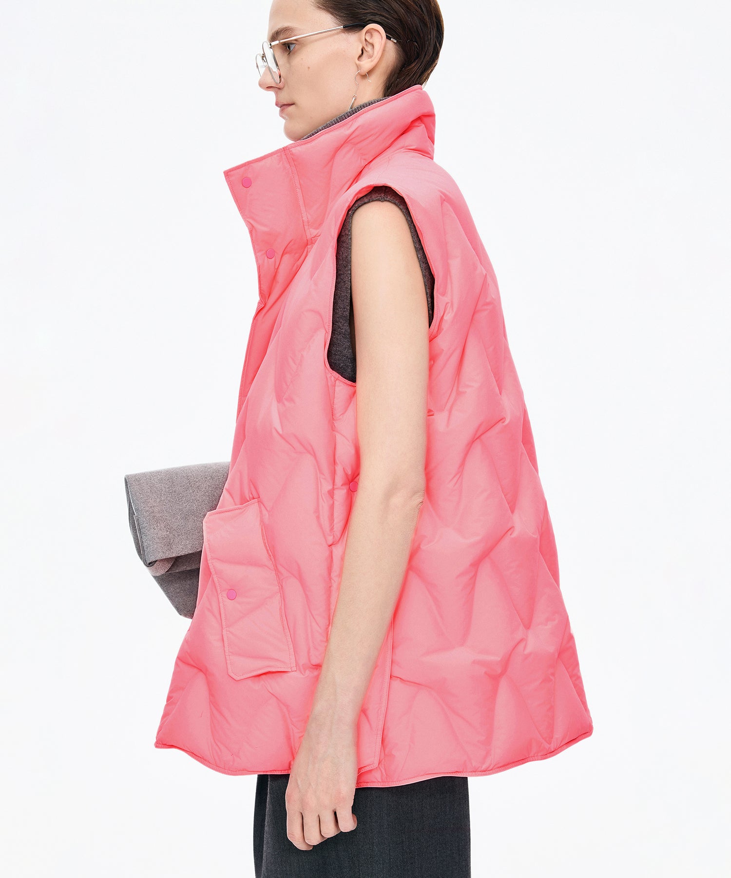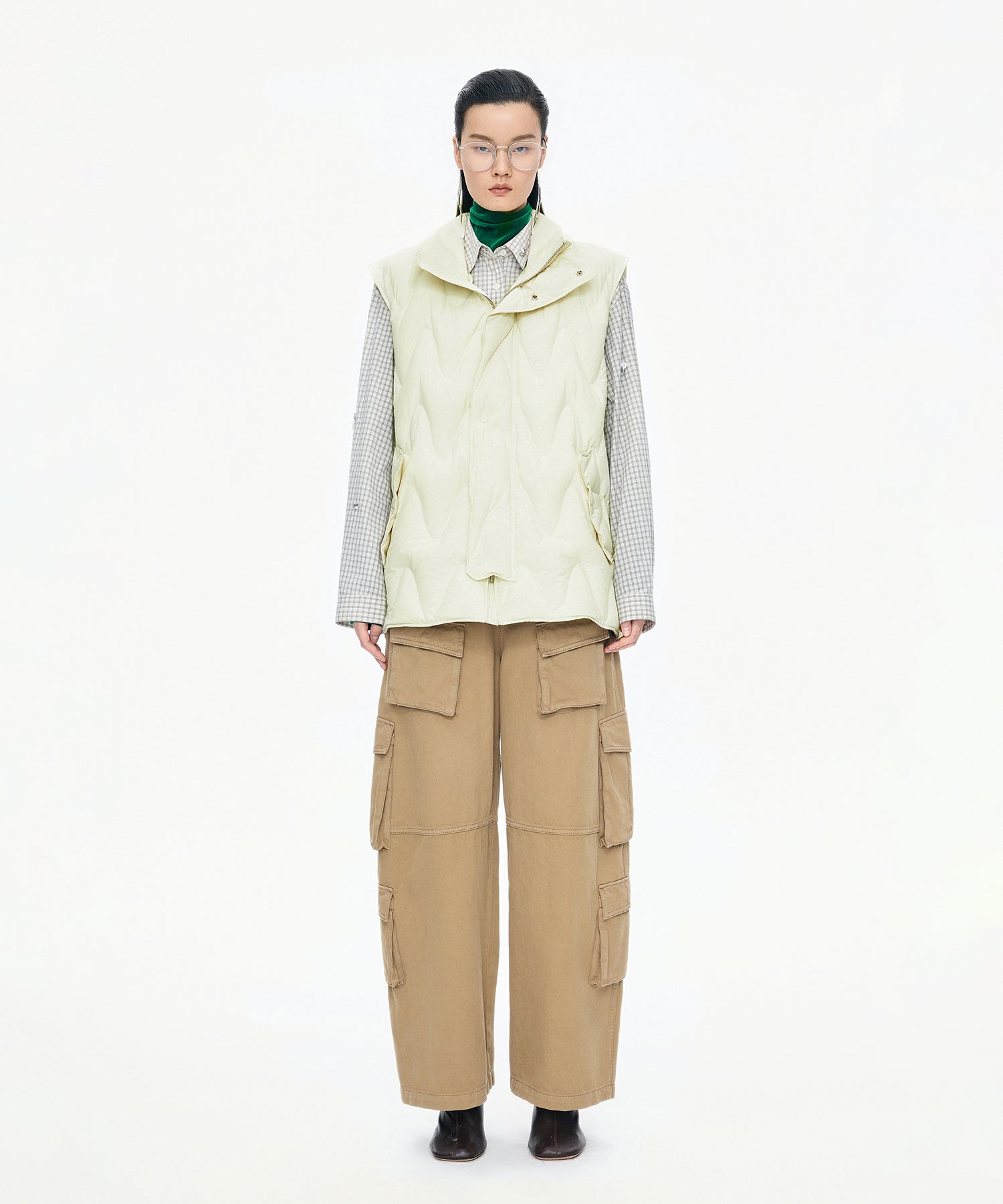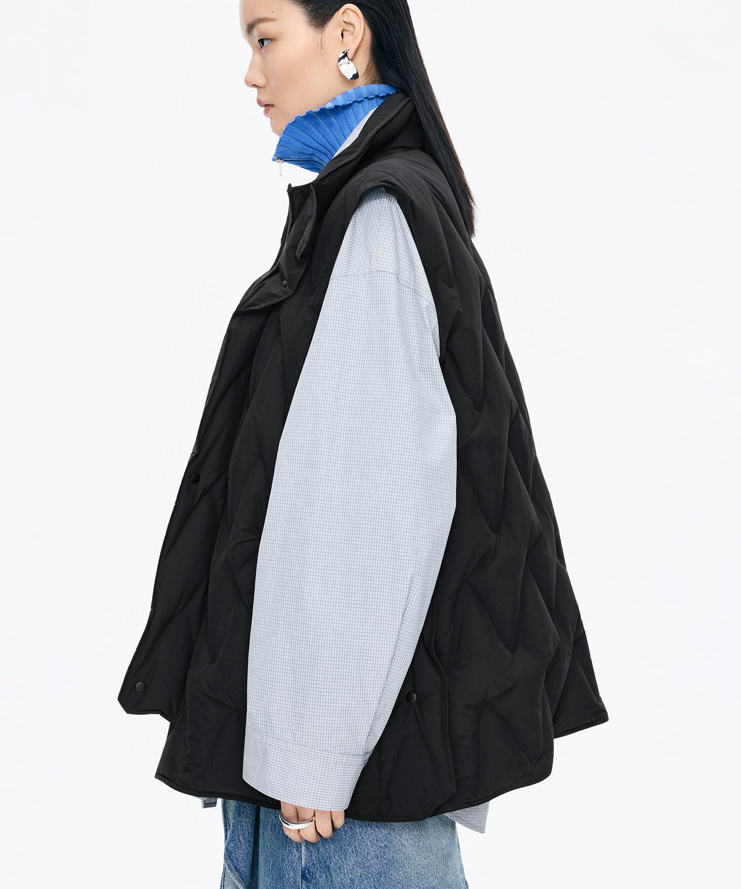 ふんわりと軽い着心地が魅力のキルティングベスト。マットな質感がナチュラルで優しい印象を演出します。すっきりとしたシルエットで、ニットやスウェットの上からでもバランスよく着こなせる一着。秋口から春先まで、ロングシーズン活躍する万能アイテムです。