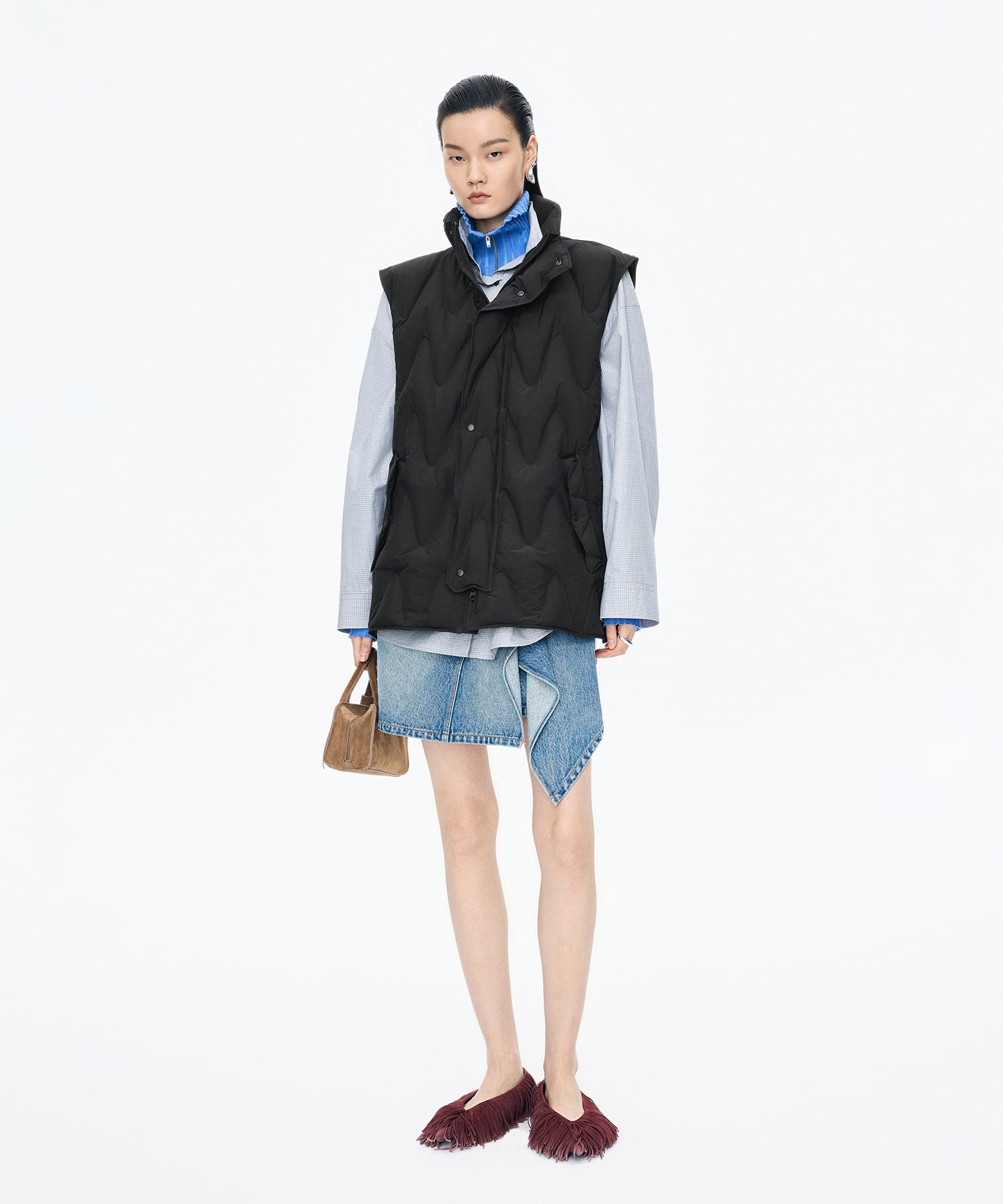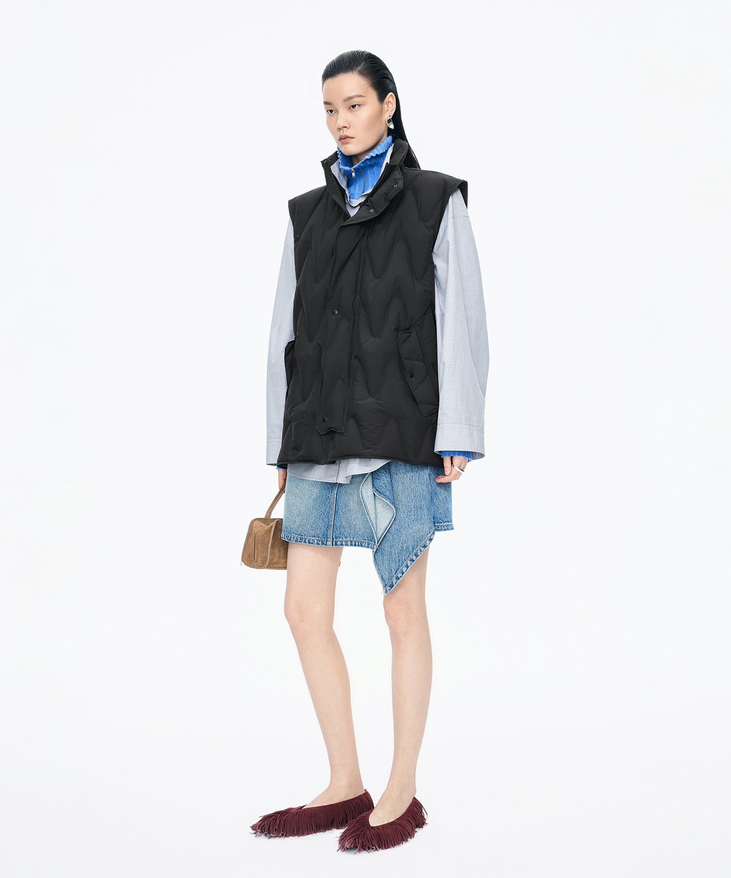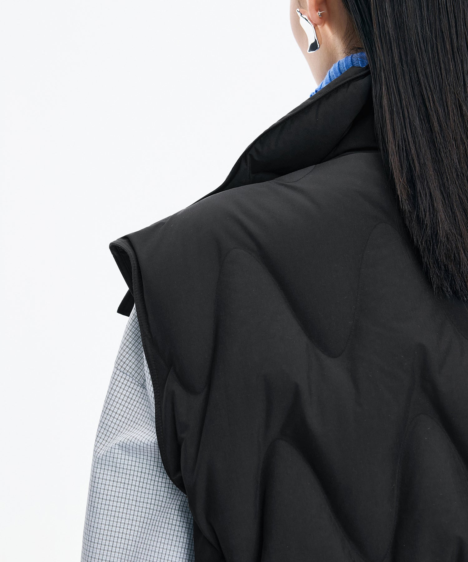 ふんわりと軽い着心地が魅力のキルティングベスト。マットな質感がナチュラルで優しい印象を演出します。すっきりとしたシルエットで、ニットやスウェットの上からでもバランスよく着こなせる一着。秋口から春先まで、ロングシーズン活躍する万能アイテムです。