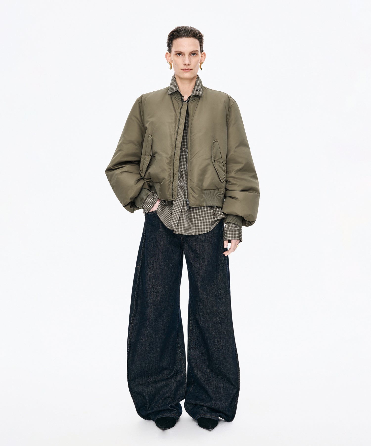 トレンド感のあるMA-1デザインに、ダウンのあたたかさをプラスしたジャケット。程よいボリュームシルエットが抜け感を演出し、スウェットやデニムと合わせるだけでこなれたストリートスタイルが完成します。軽くて暖かく、デイリーに活躍する一枚です。