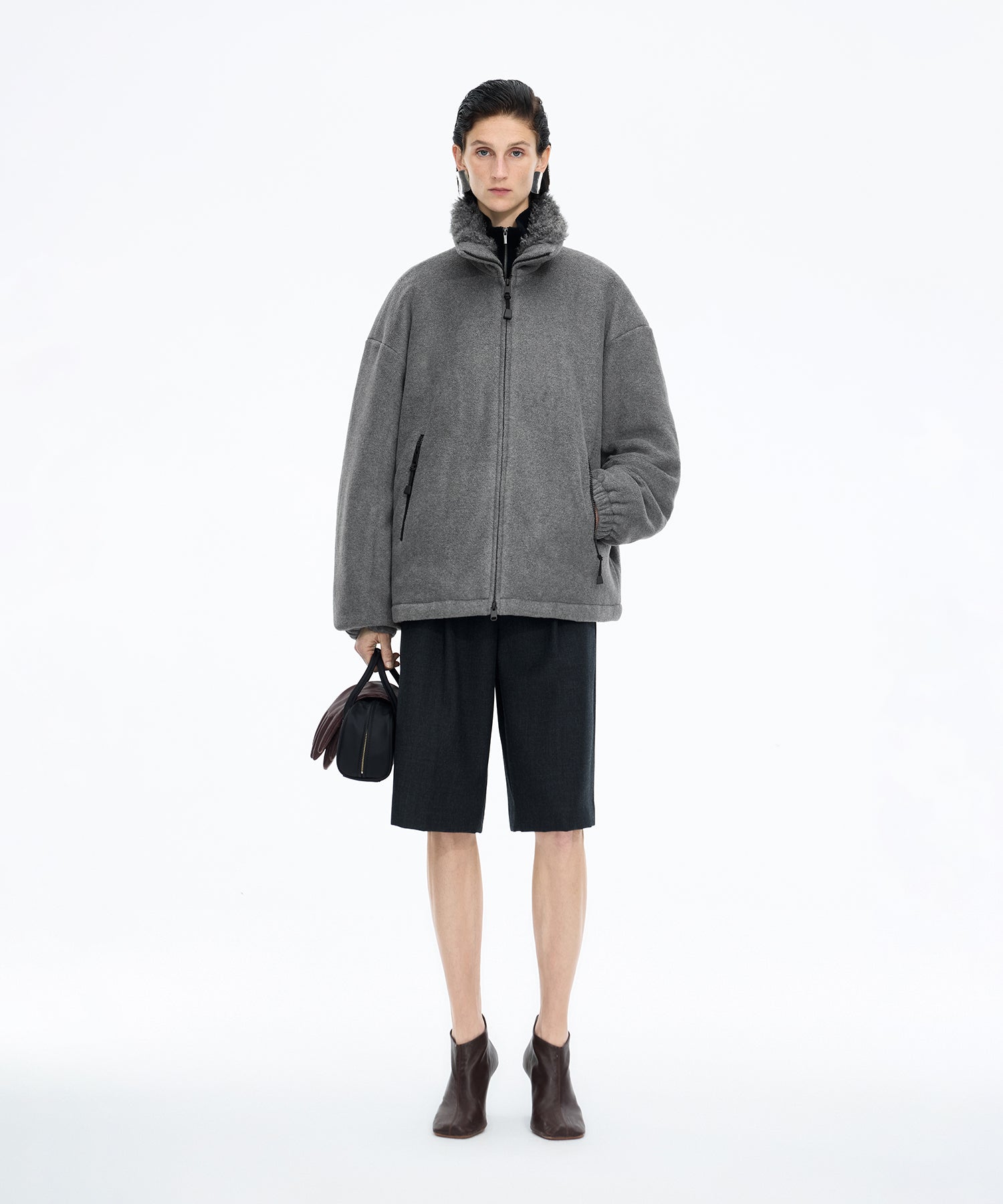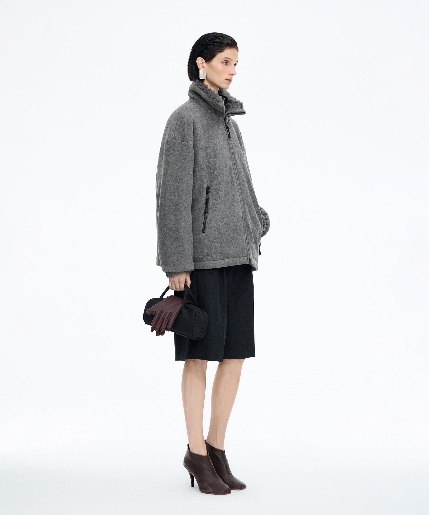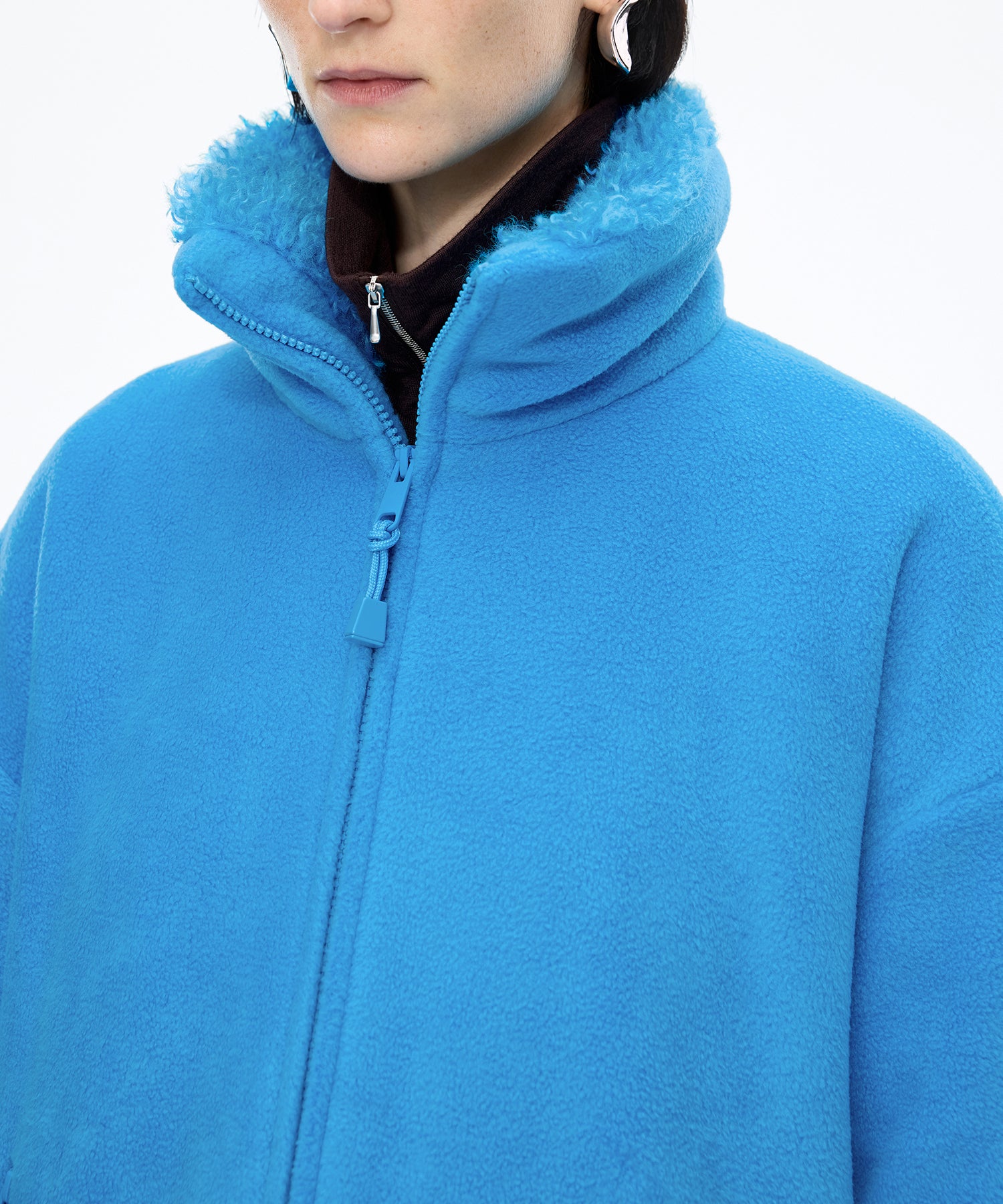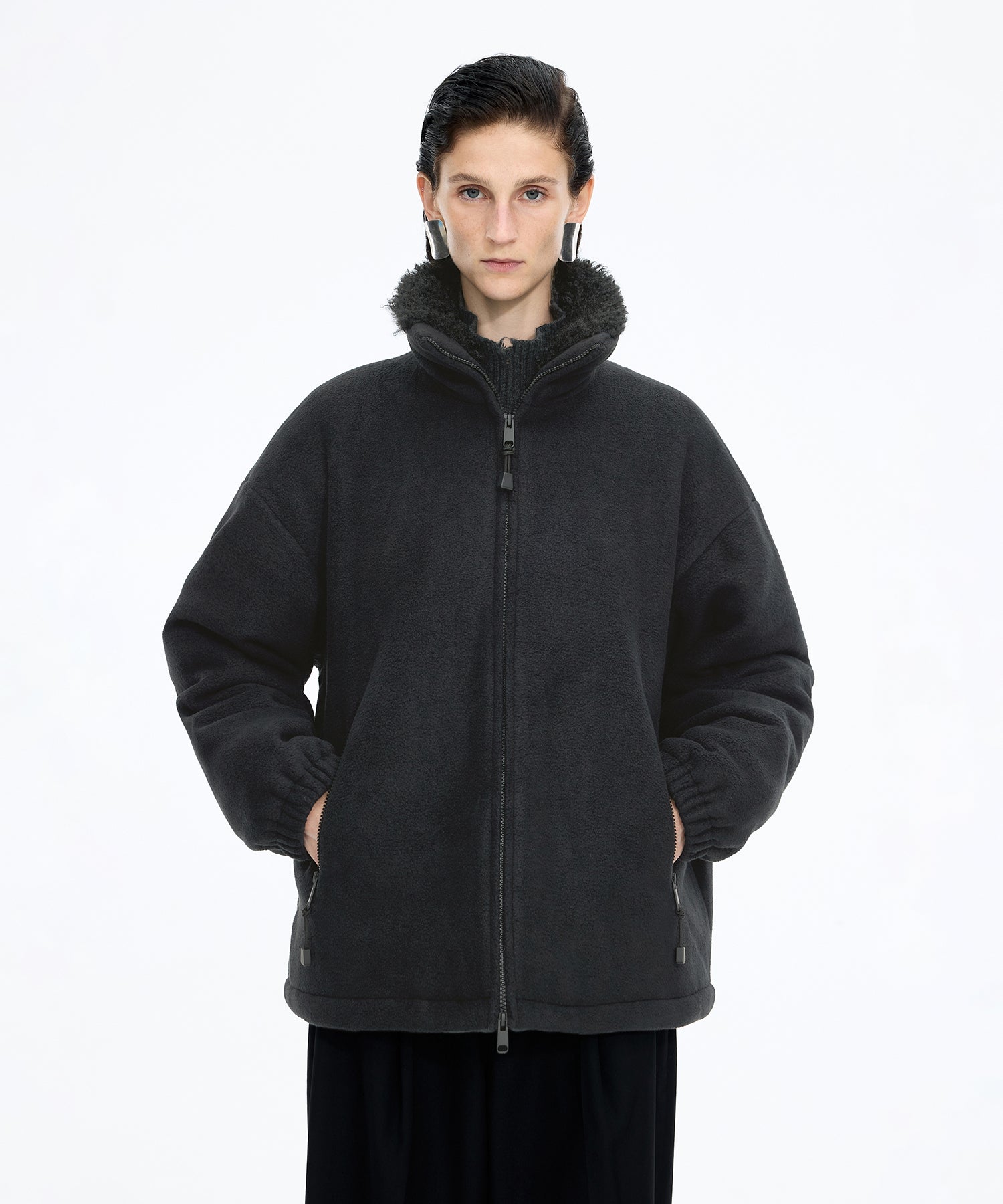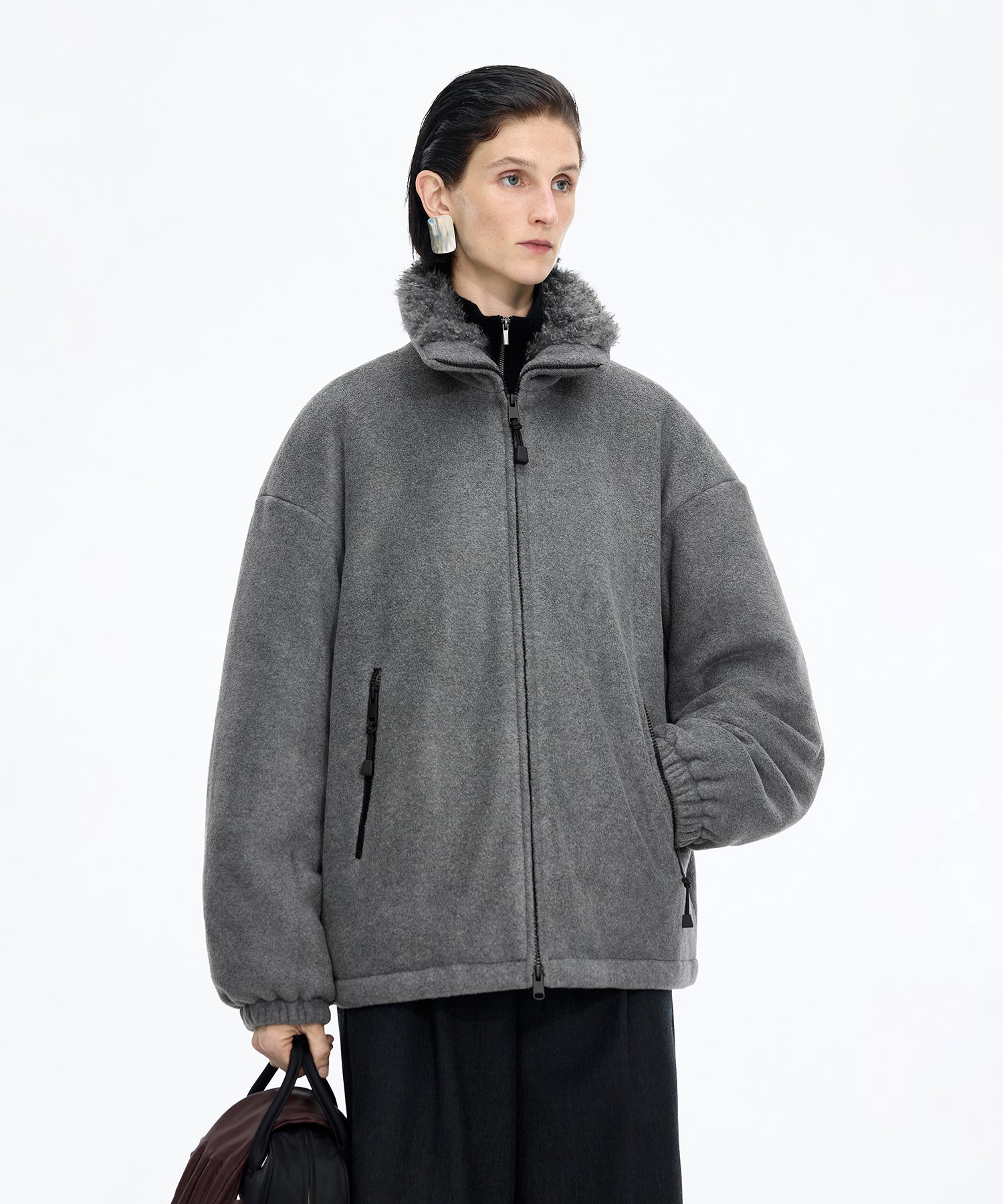 軽くて暖かなフリースダウンジャケット。襟ぐりのボアが顔まわりをやさしく包み込み、さりげない可愛らしさを添えます。デイリーに活躍する、リラックス感のあるアウターです。