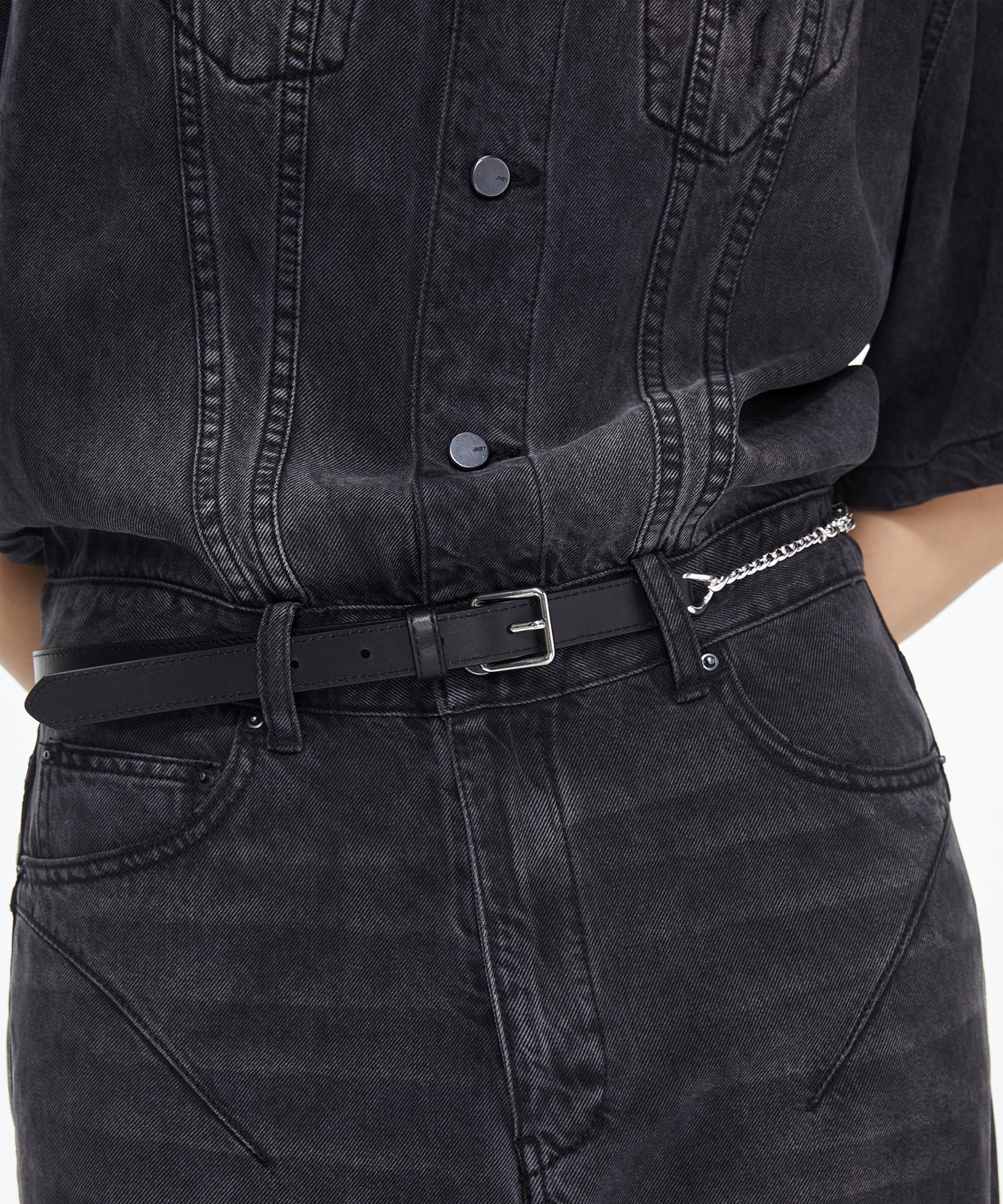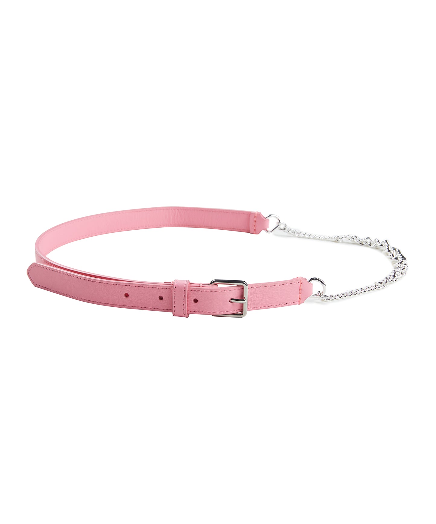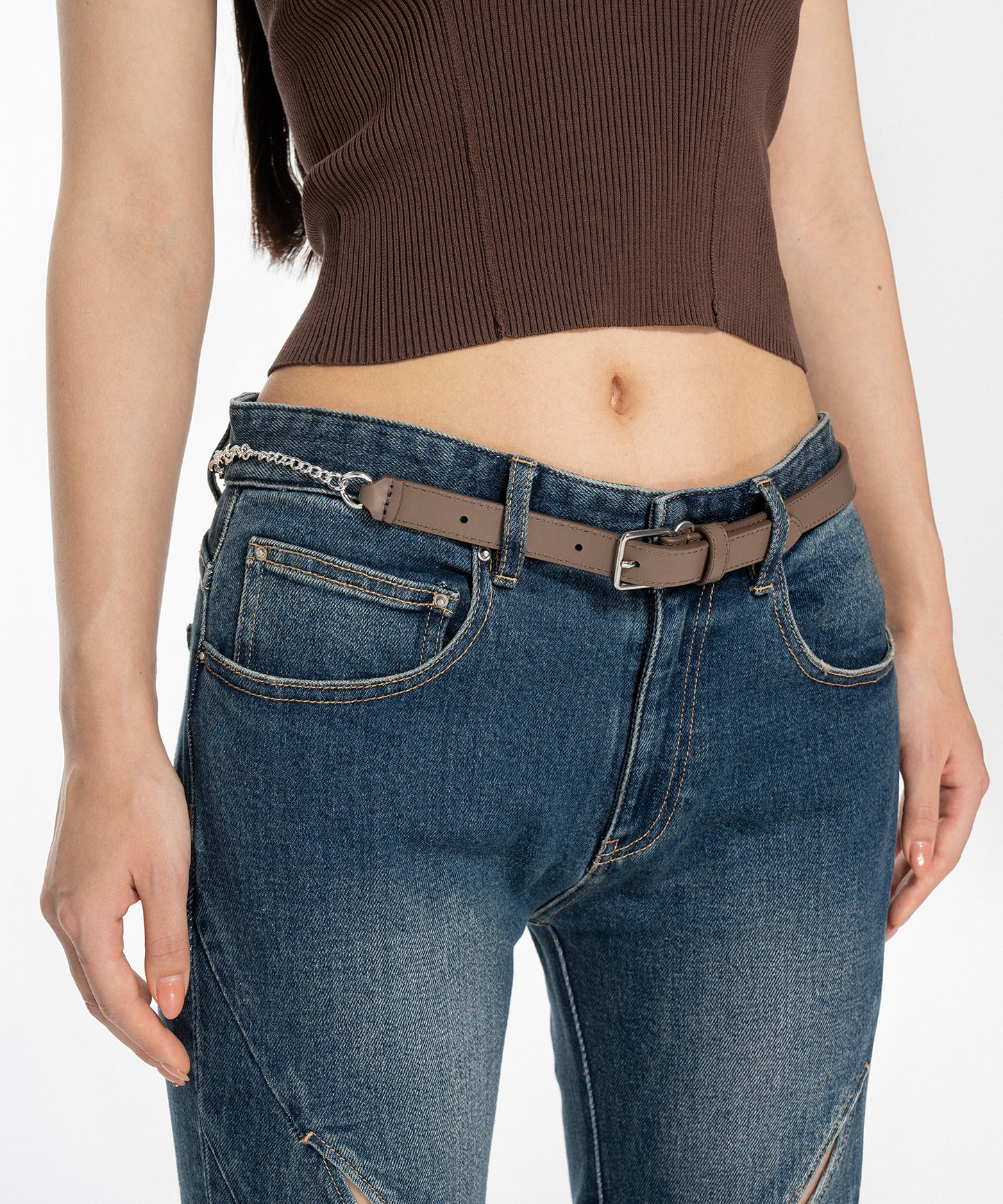 クールでお洒落なチェーンとレザーベルト。 ファッションのワンポイントとしてもぴったり。カジュアルコーデはもちろん、きれいめスタイルにも合わせてもOK。