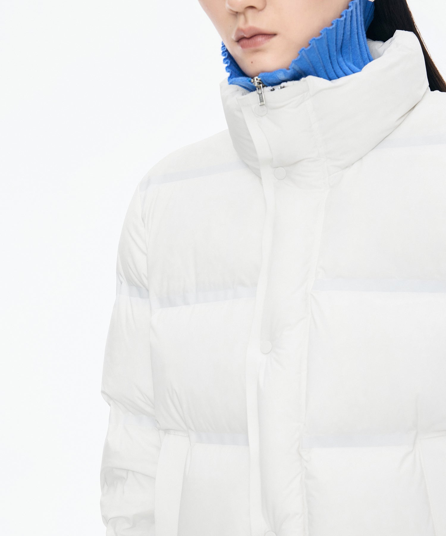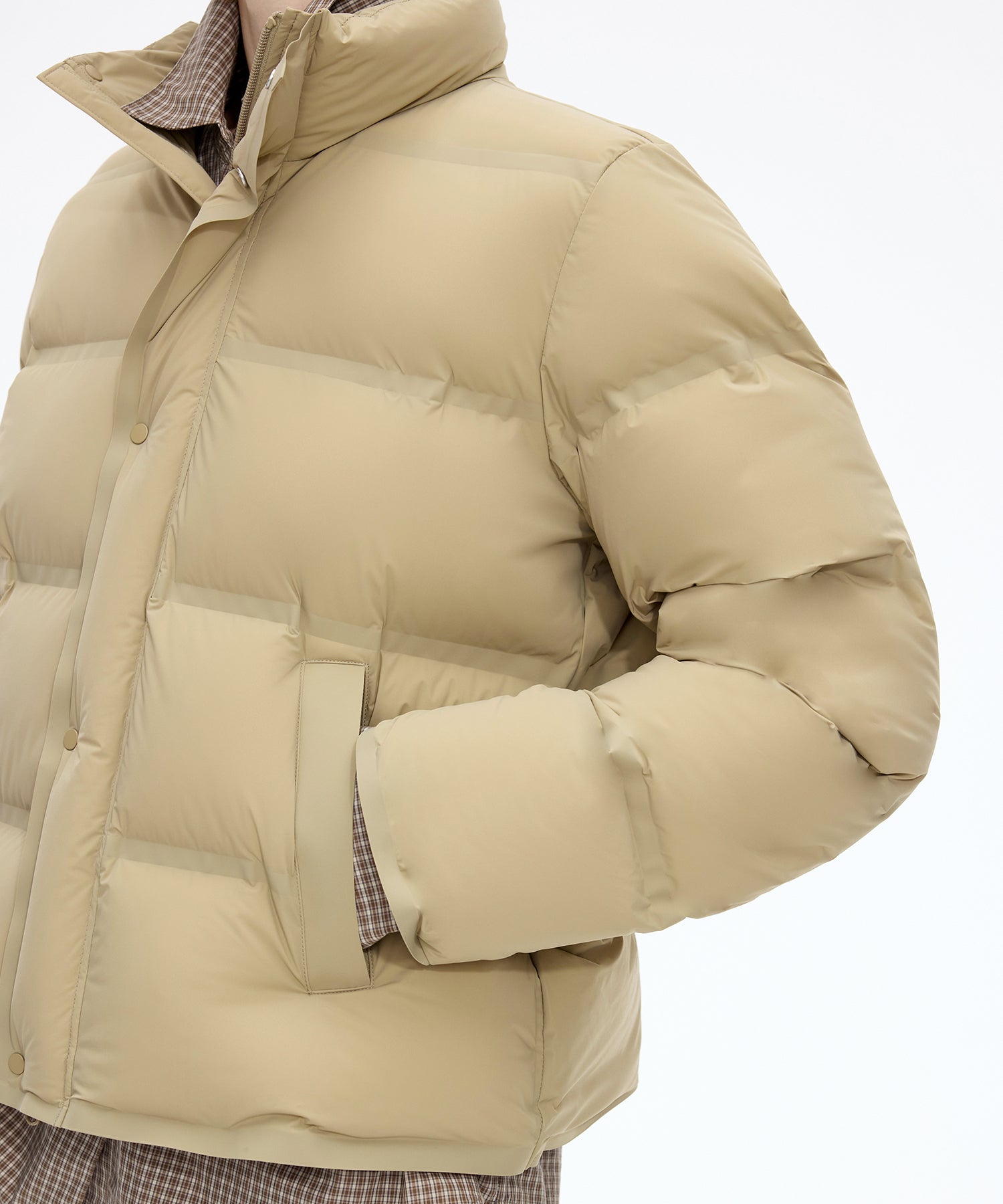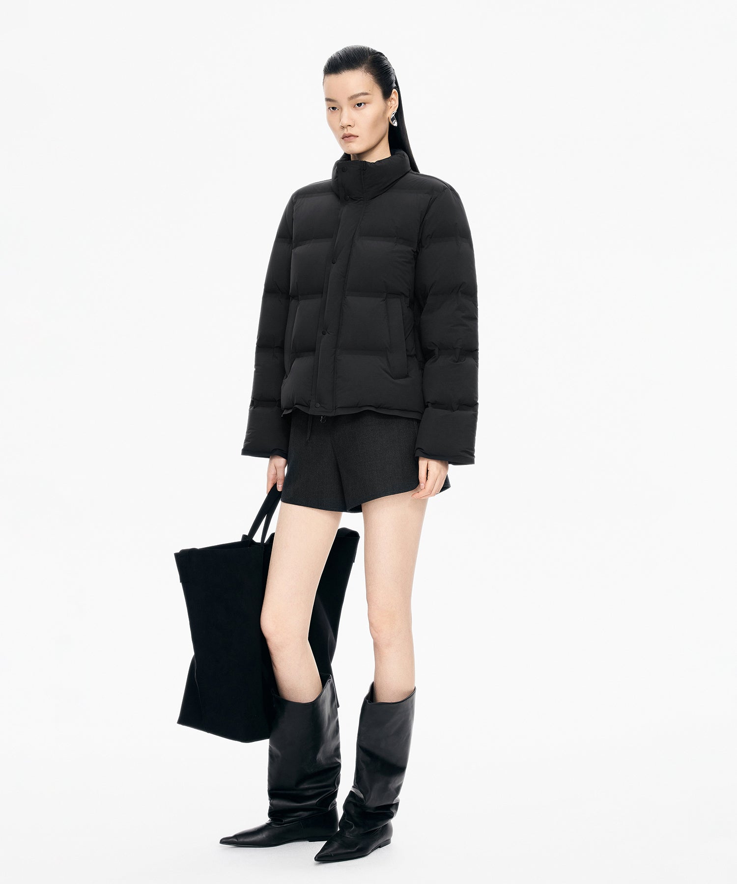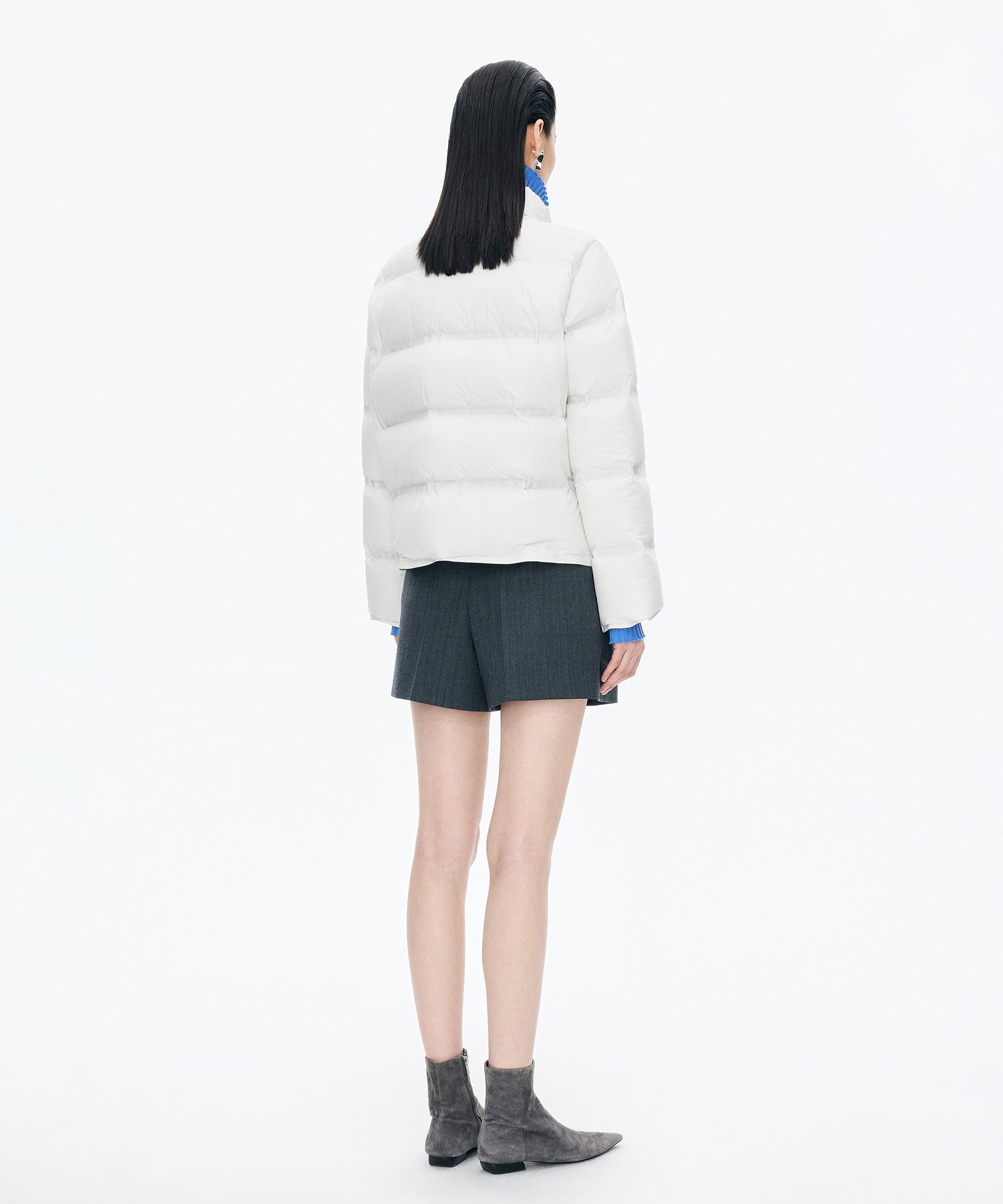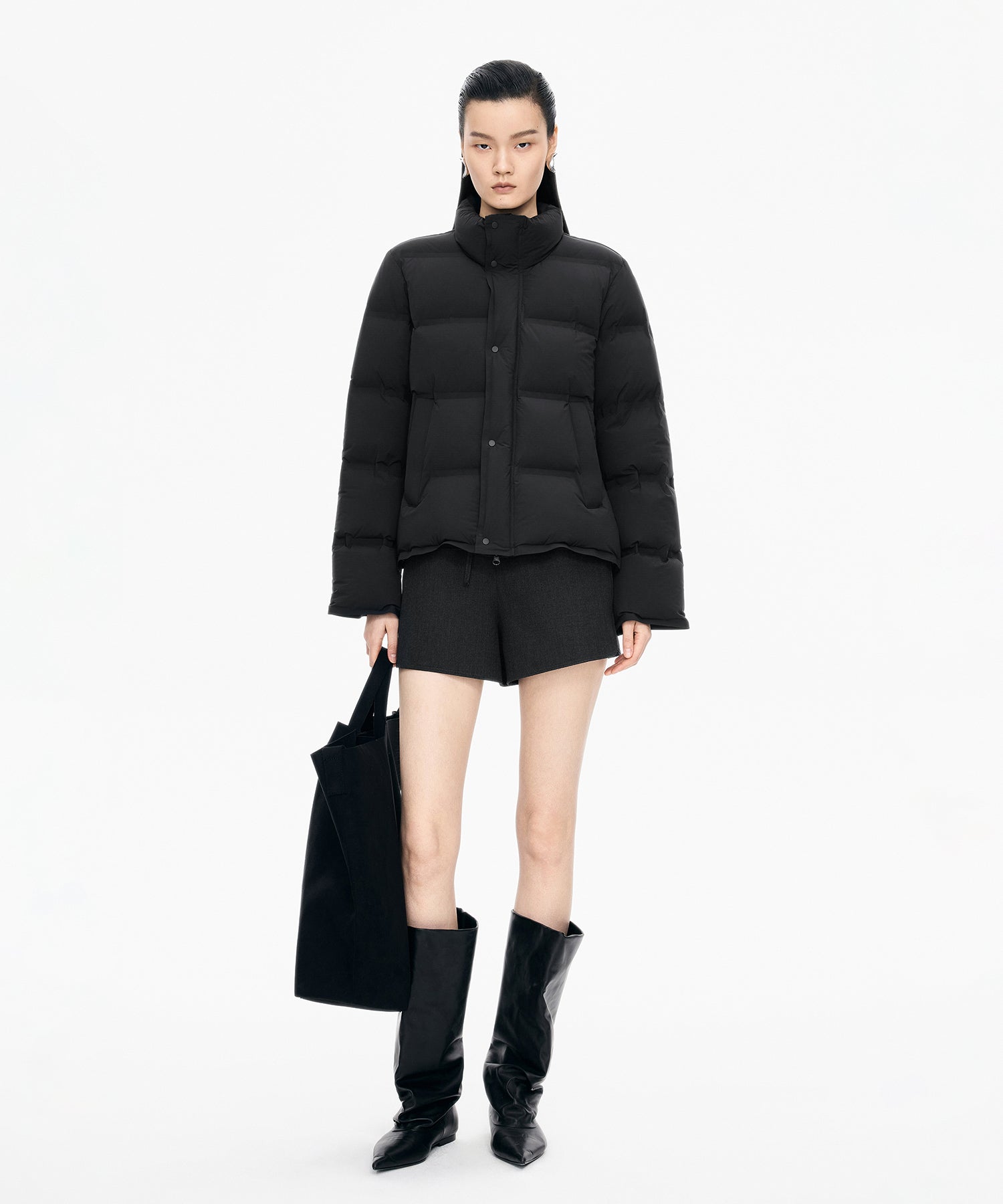 マットな質感が上品なダウンジャケット。軽やかな着心地と優れた保温性を兼ね備え、シンプルで洗練されたデザインが魅力です。どんなスタイリングにも自然に馴染む、万能な一着です。