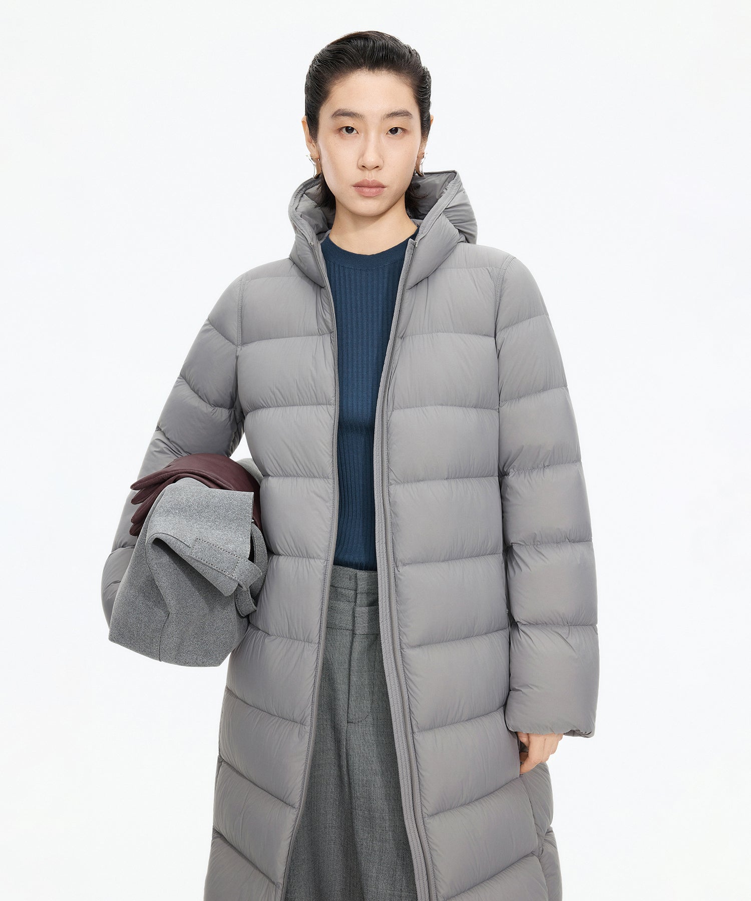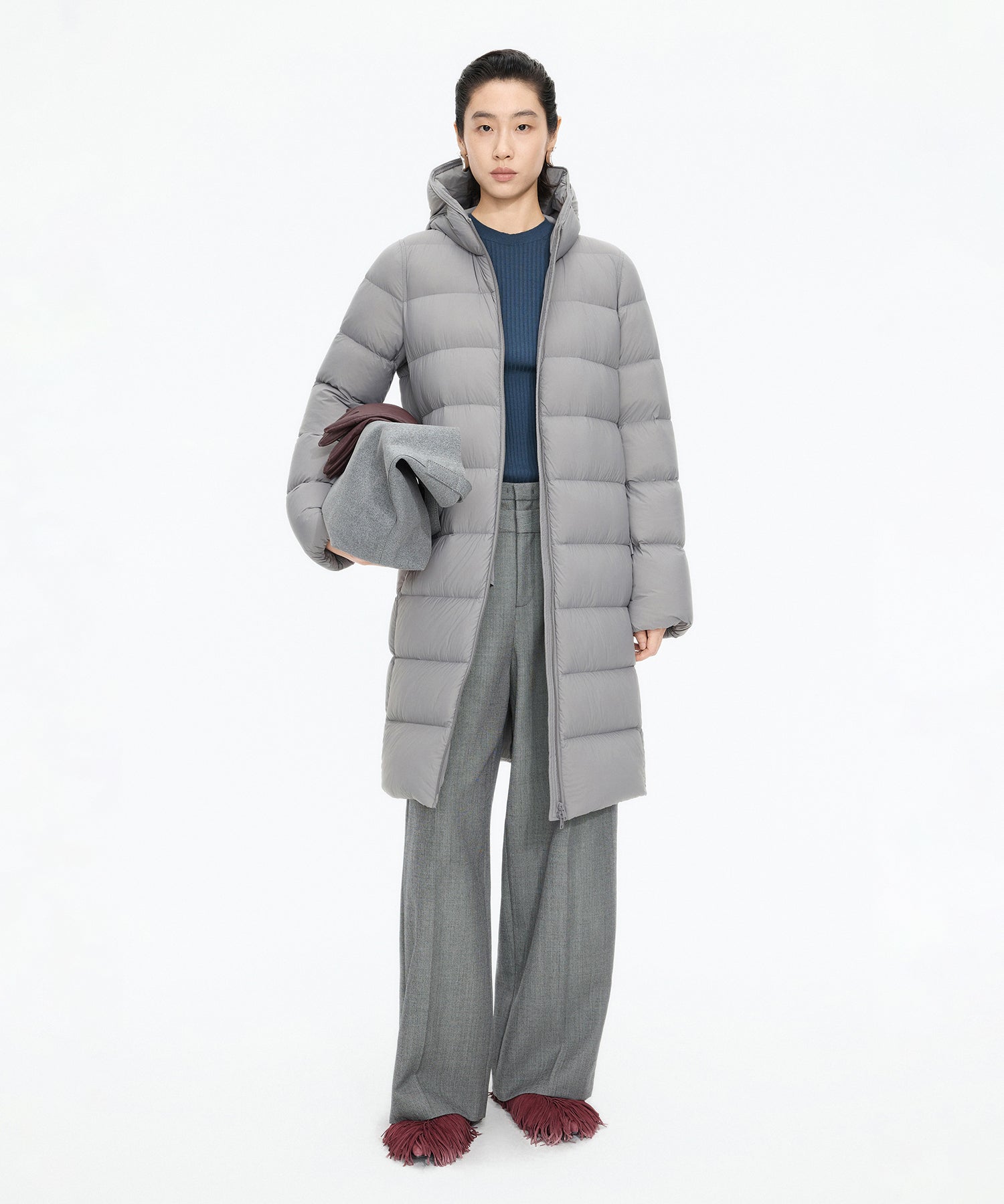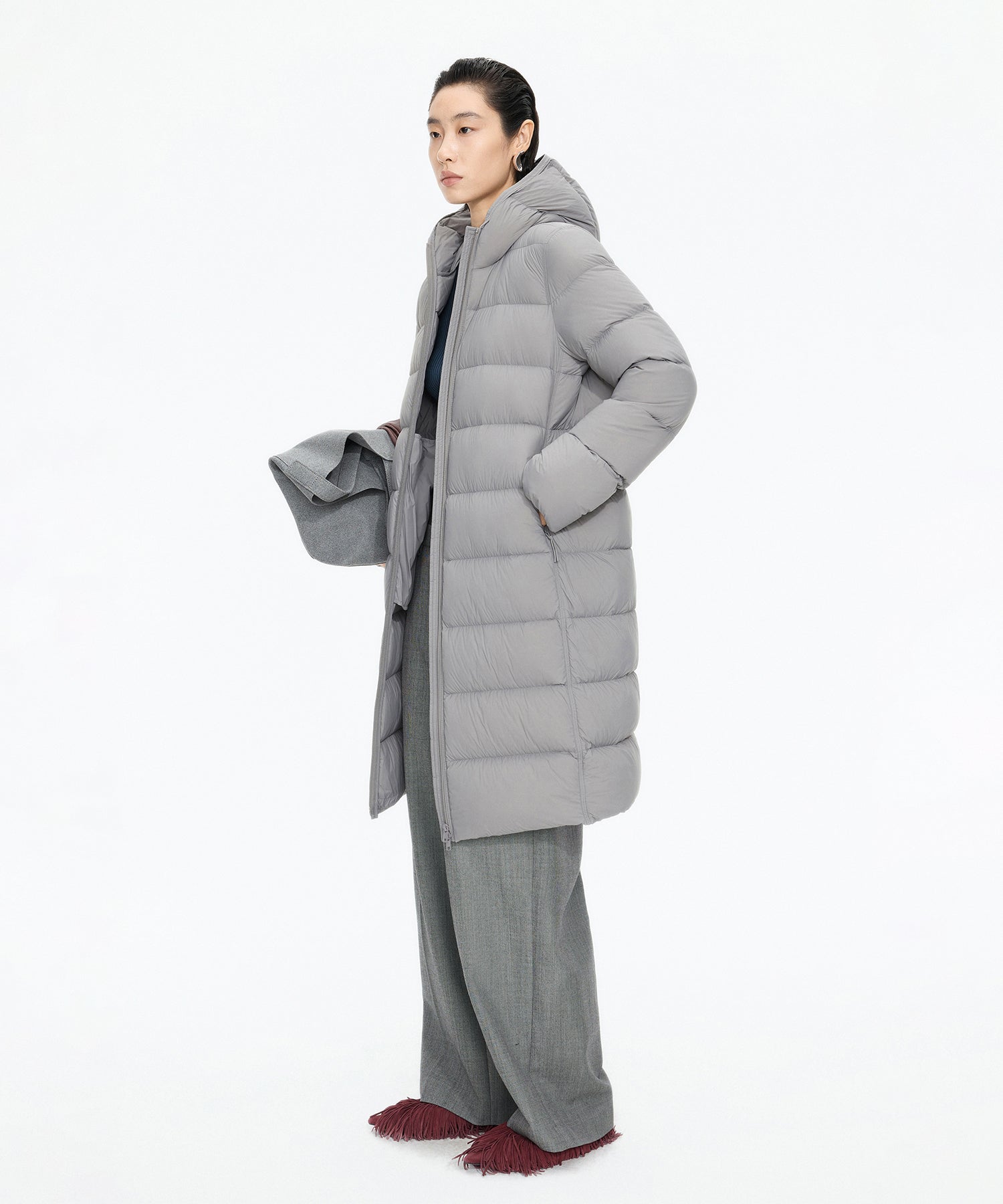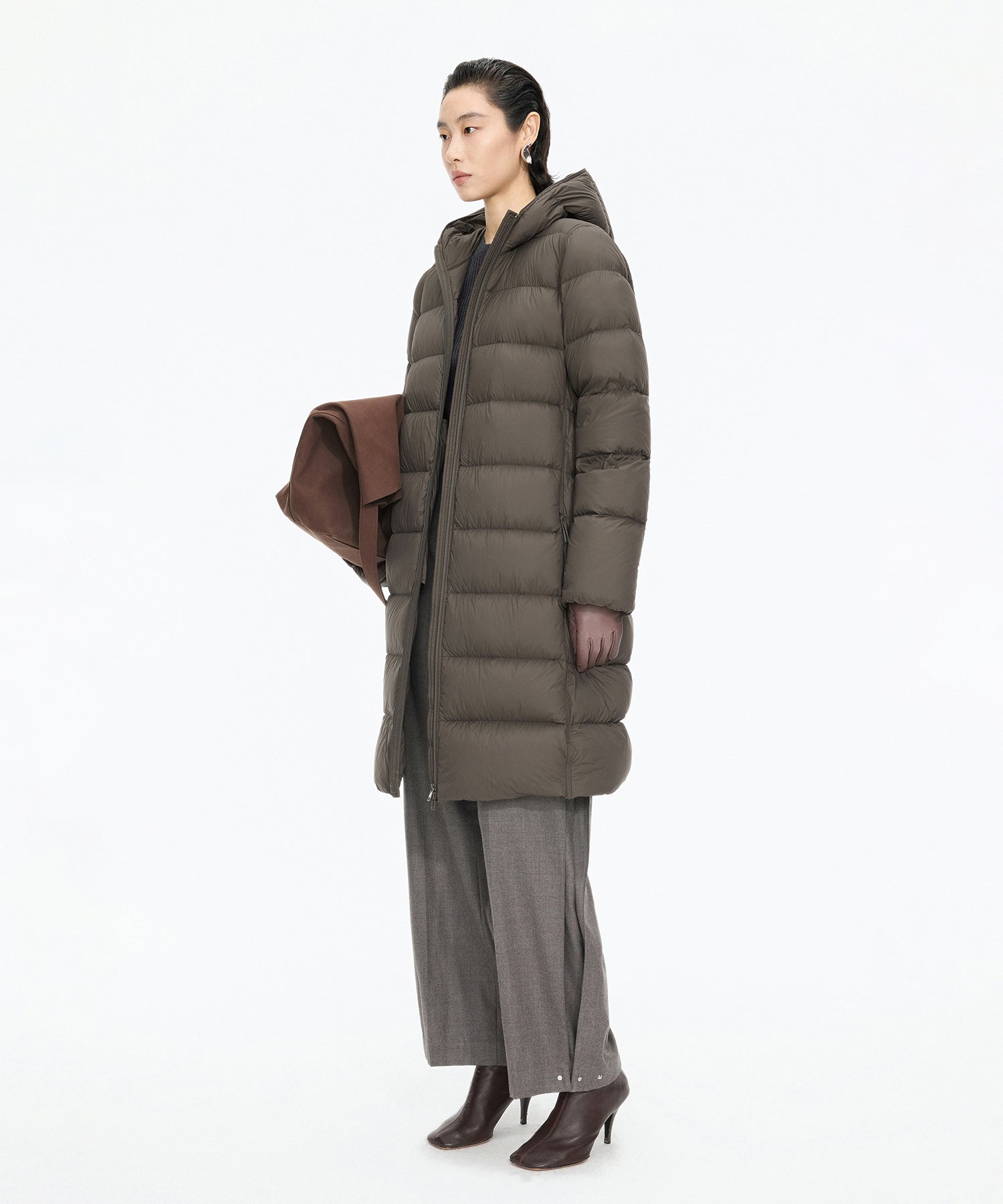 ベーシックで洗練されたデザインが魅力のロングダウンコート。身体に沿うスリムなシルエットが美しく、ふんわりと柔らかな着心地と軽さで、快適に着用いただけます。デイリーから通勤まで、幅広いシーンで活躍する一着です。