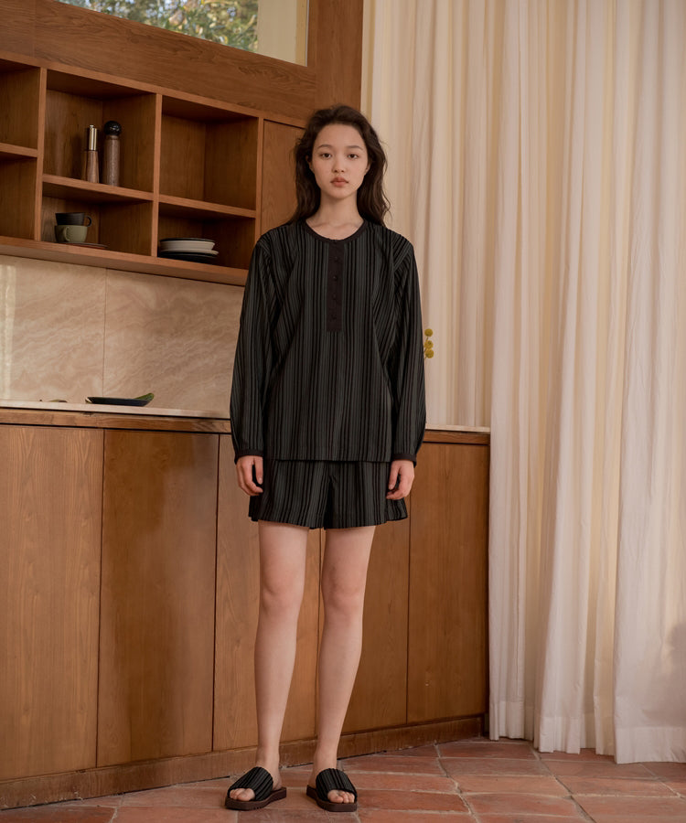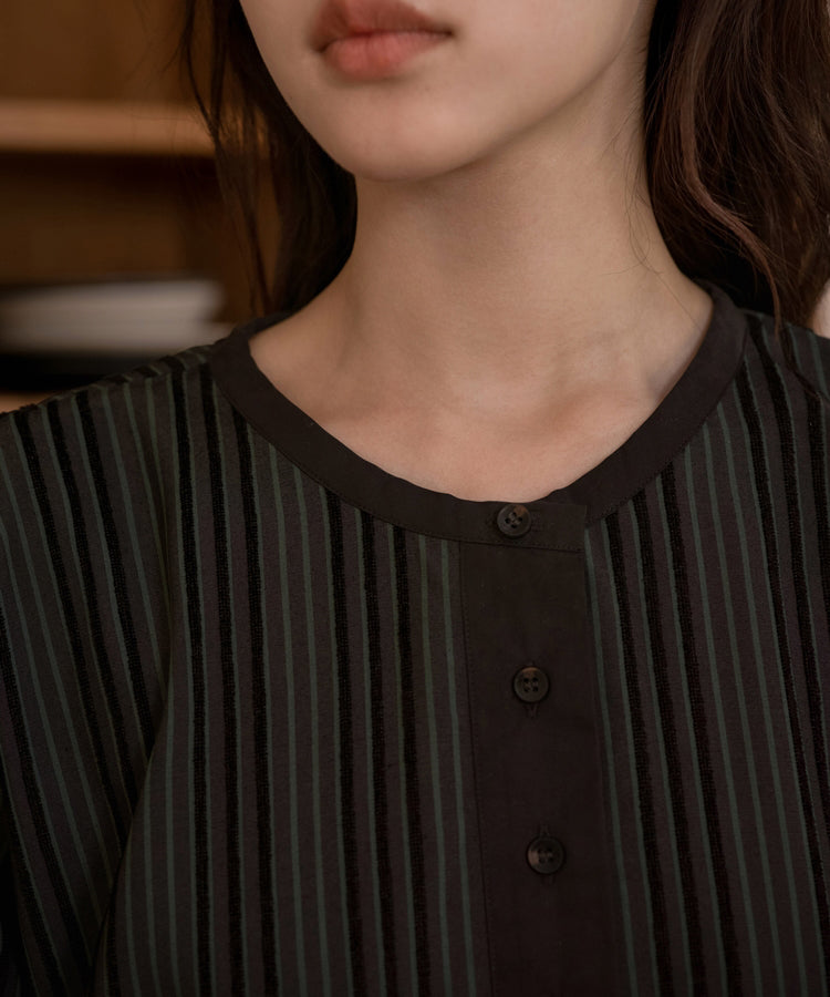 HOME Striped Round -collar Top