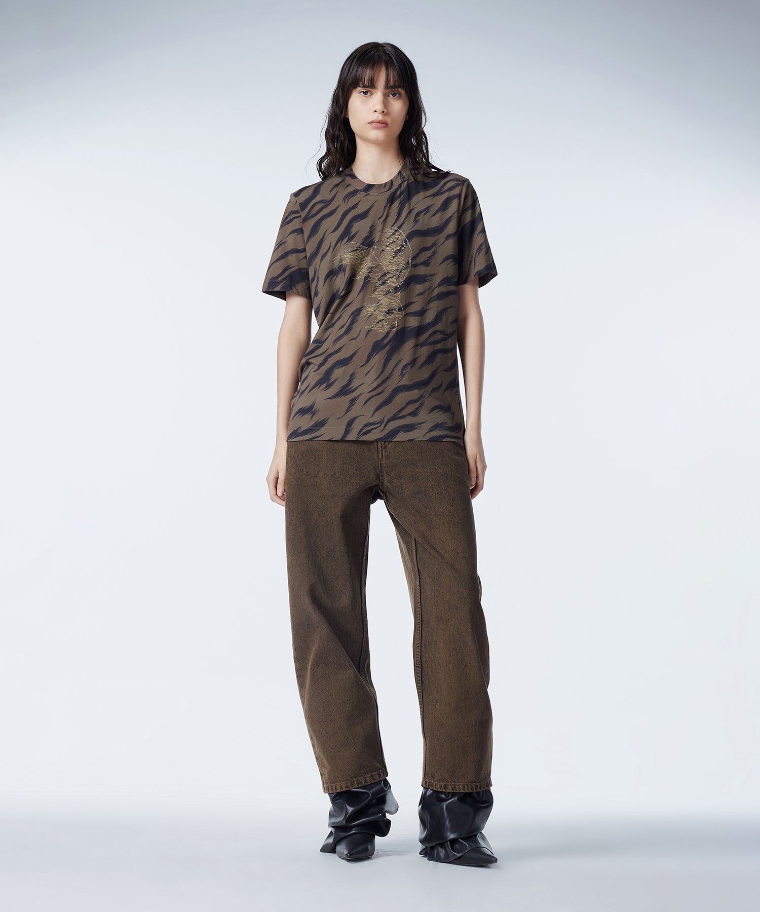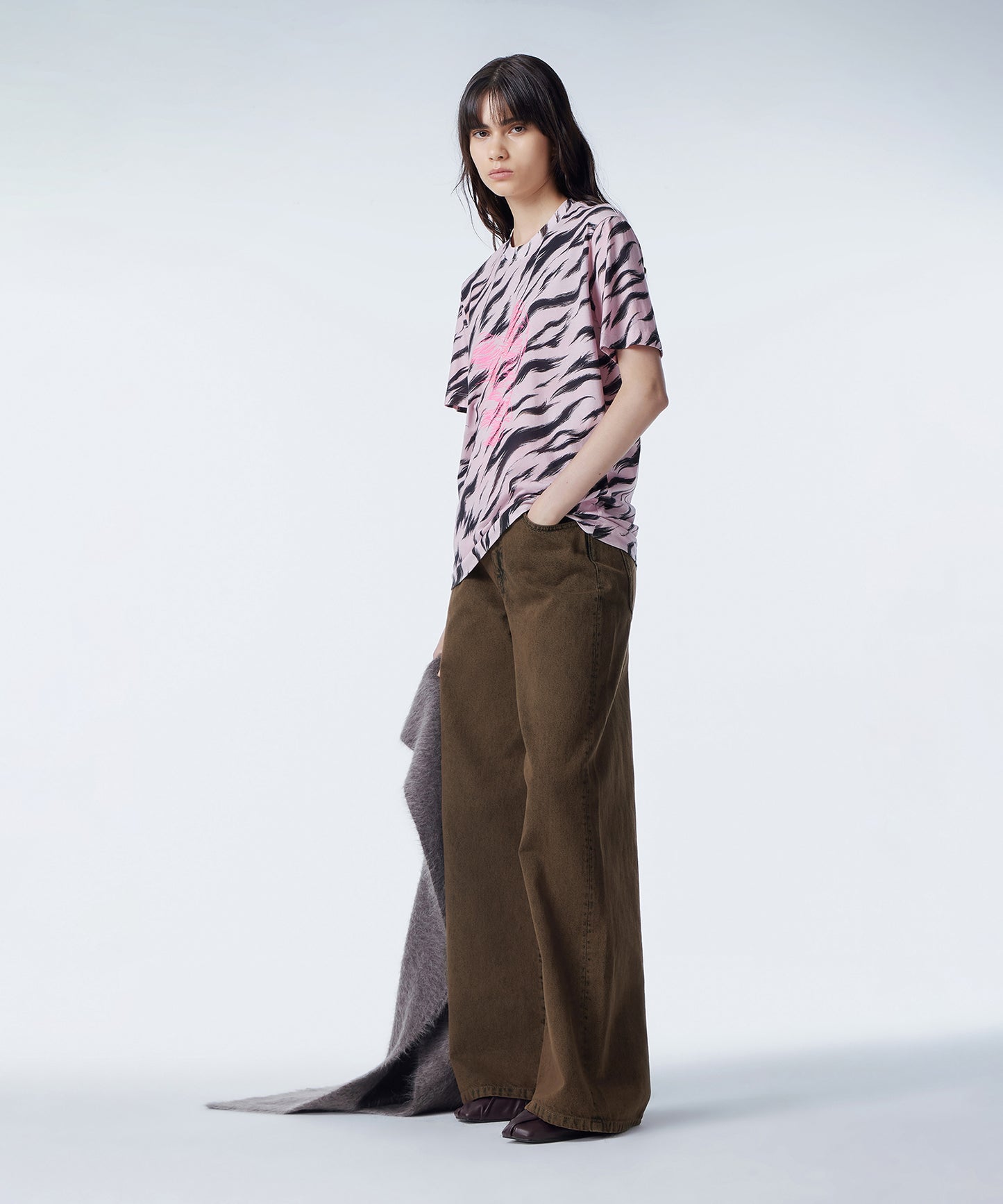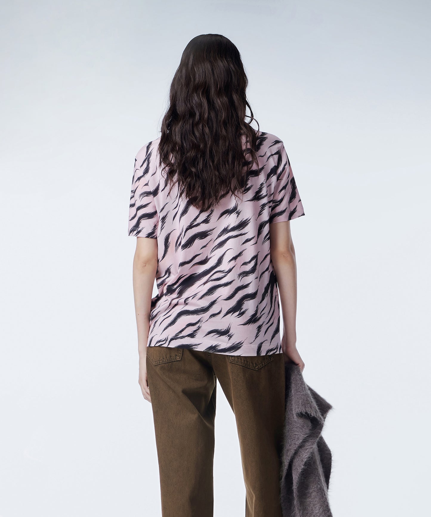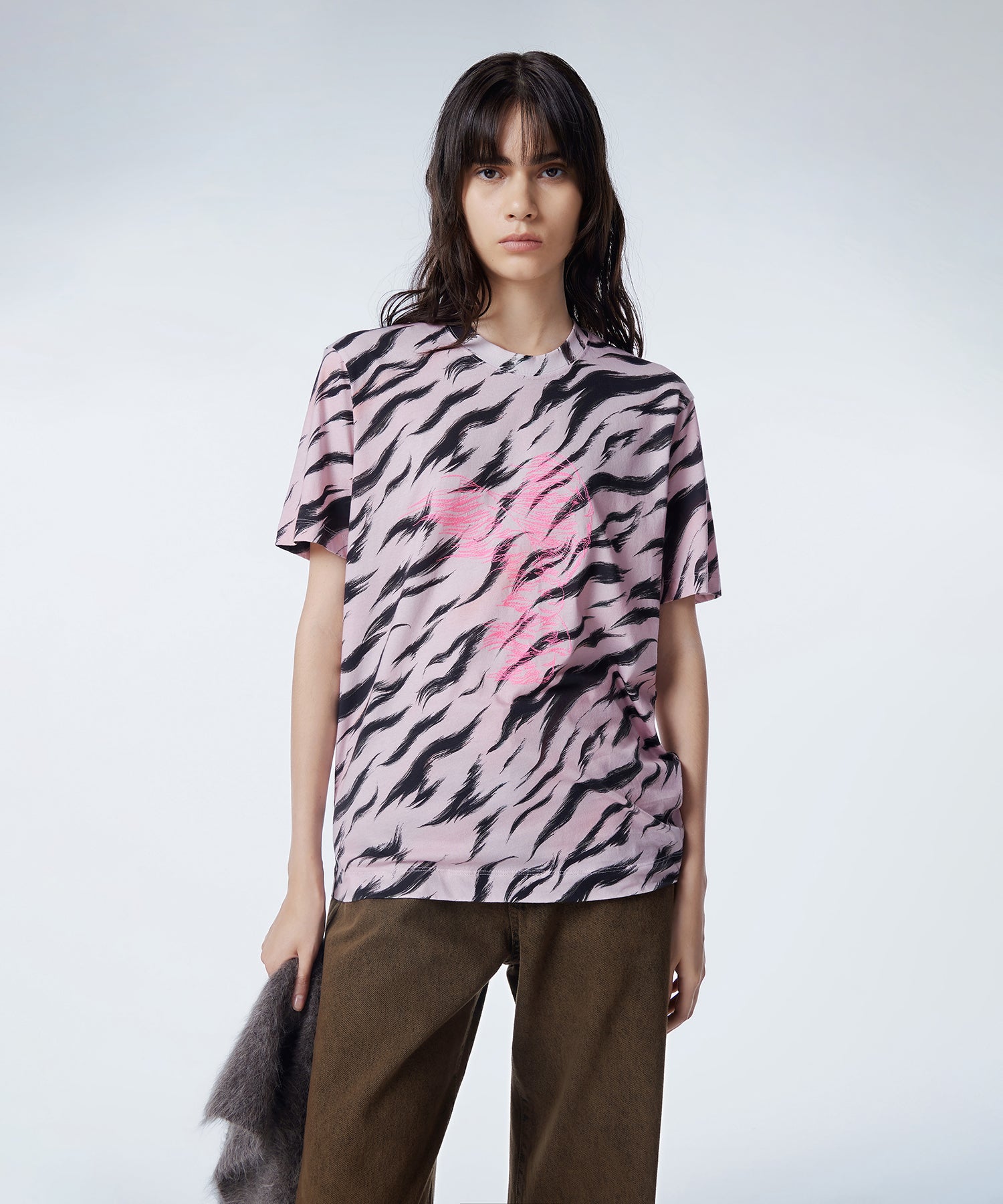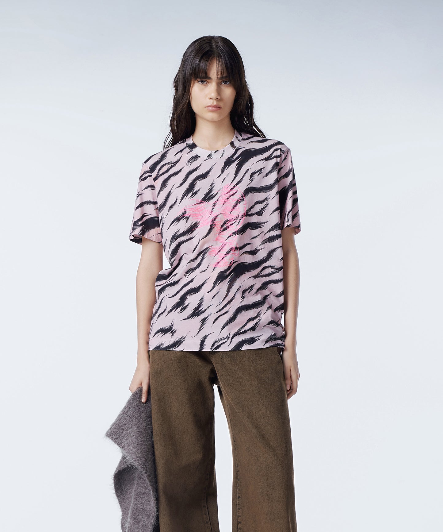 JNBYらしい配色カラーが新鮮で目を引くアニマル柄のTシャツ。ウサギの刺繍がポイントになります。程よいフィット感で羽織りアイテムと合わせやすいシルエットです。