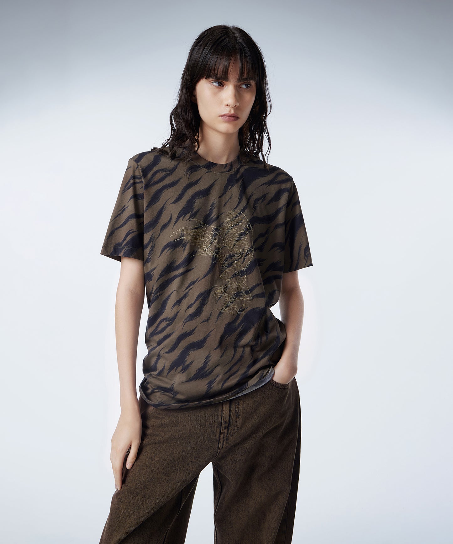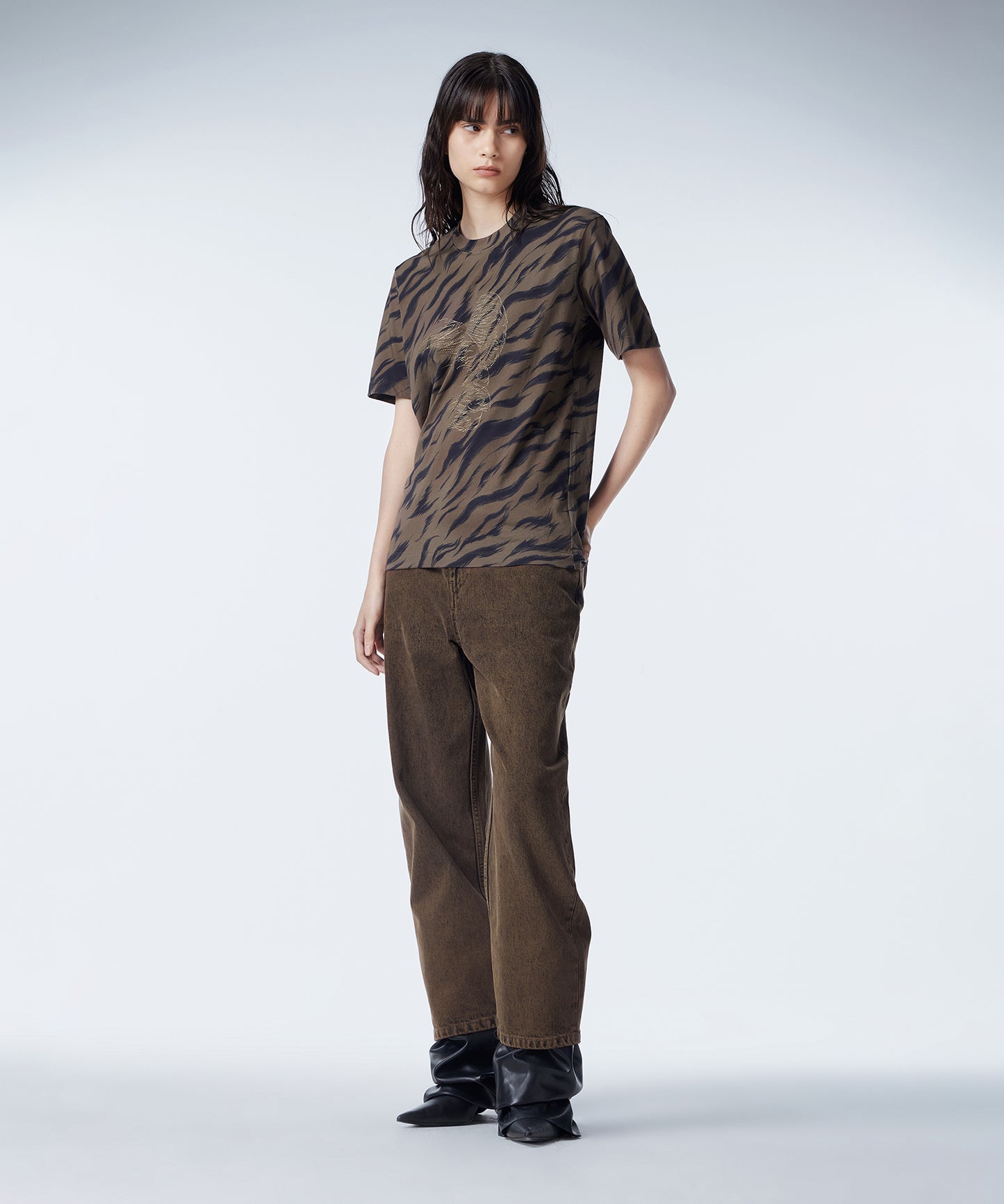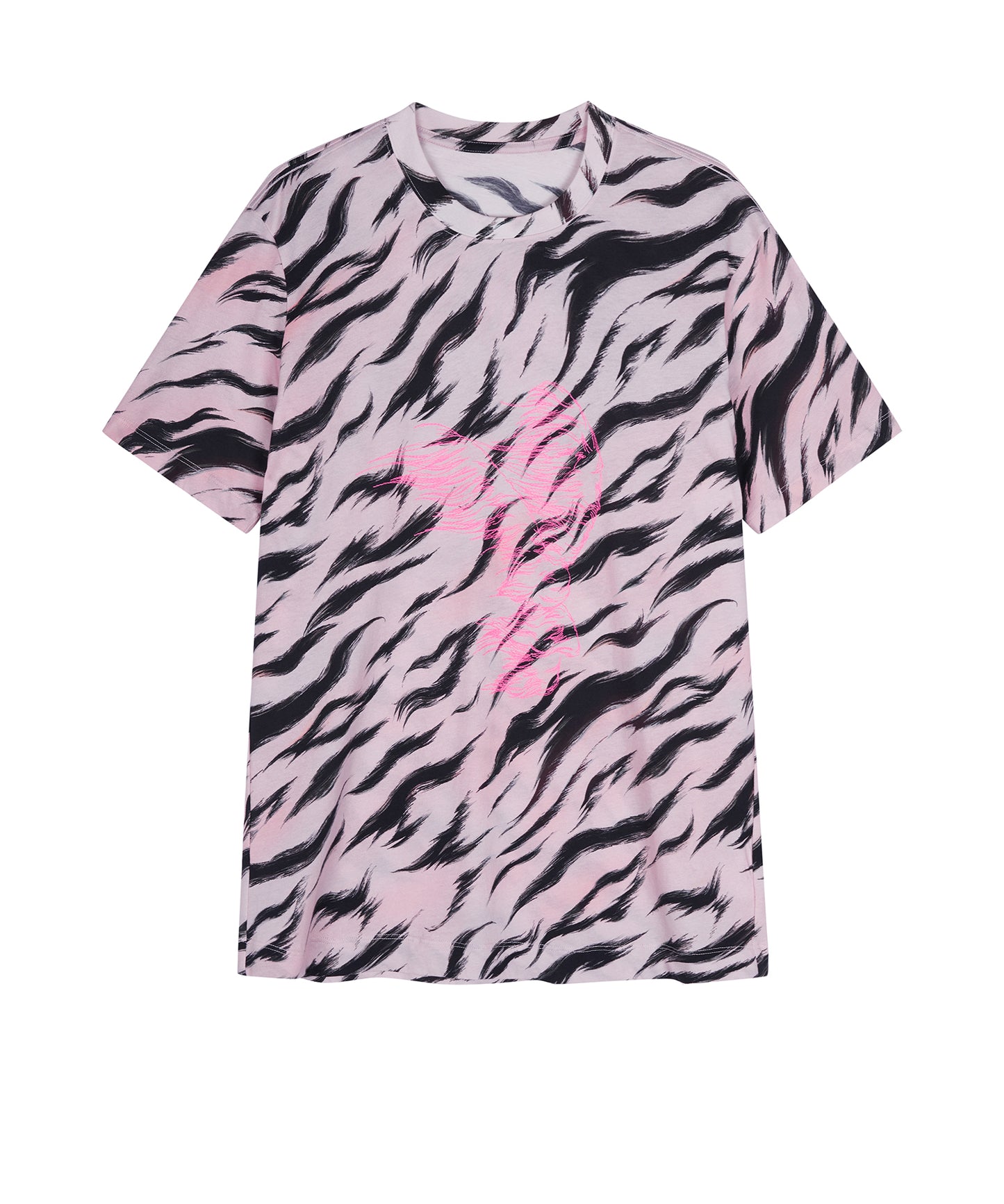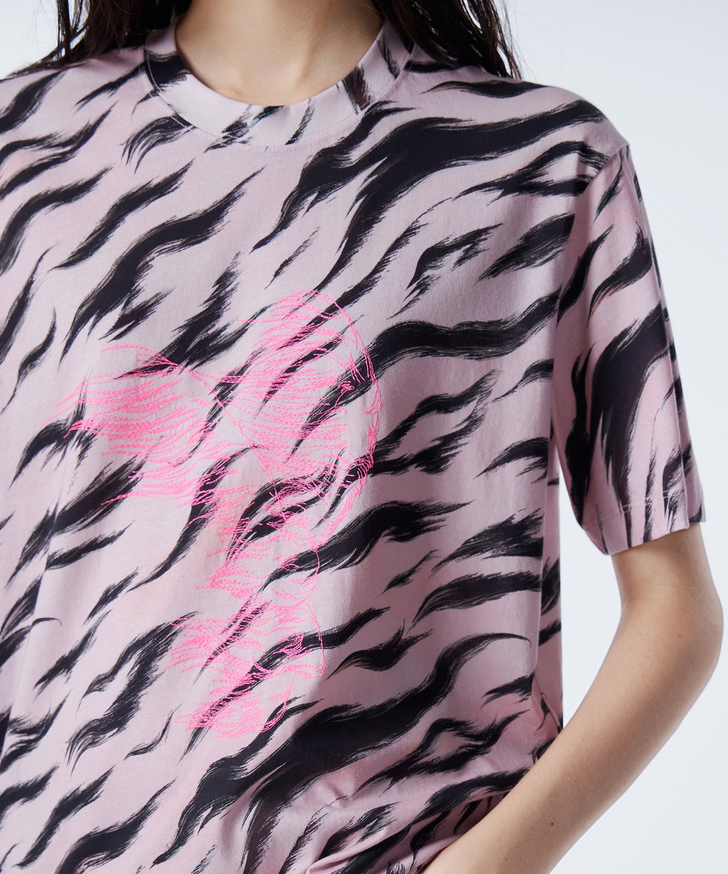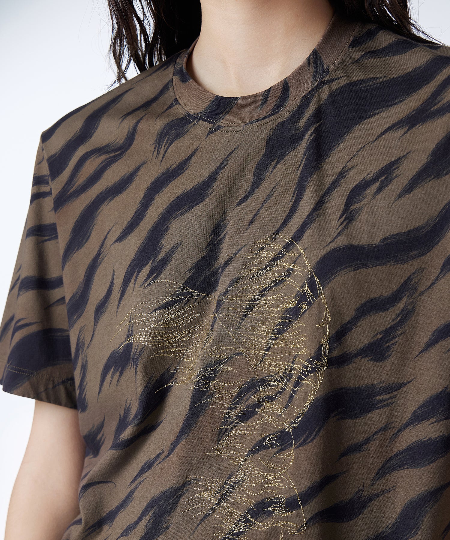 JNBYらしい配色カラーが新鮮で目を引くアニマル柄のTシャツ。ウサギの刺繍がポイントになります。程よいフィット感で羽織りアイテムと合わせやすいシルエットです。