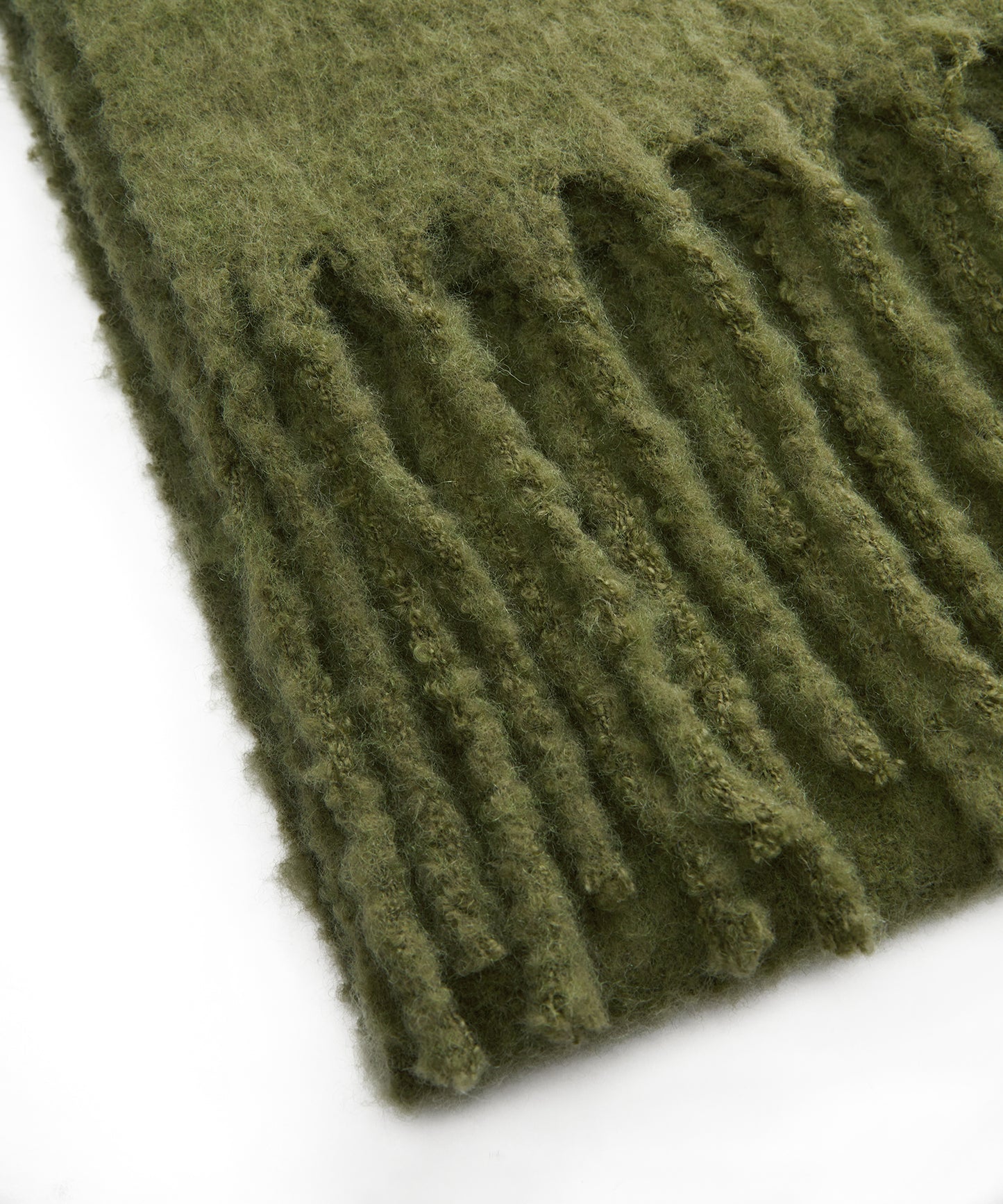 ボリューム感のあるフリンジマフラー。圧縮ウールのため、柔らかくてあたたかく、程良い厚みもあり、巻き方をアレンジして楽しむことができます。アースカラーに加え、JNBYらしい鮮やかなカラーは、コーディネートのアクセントに。