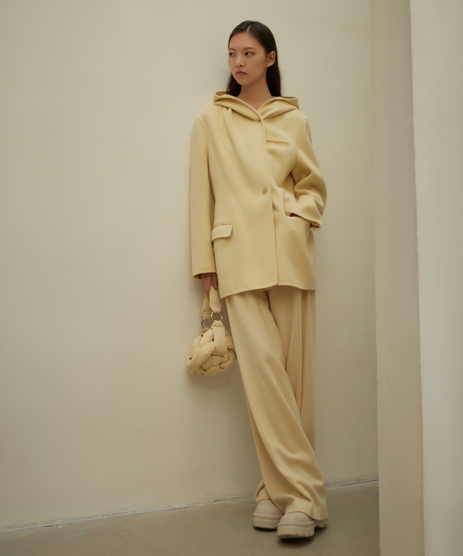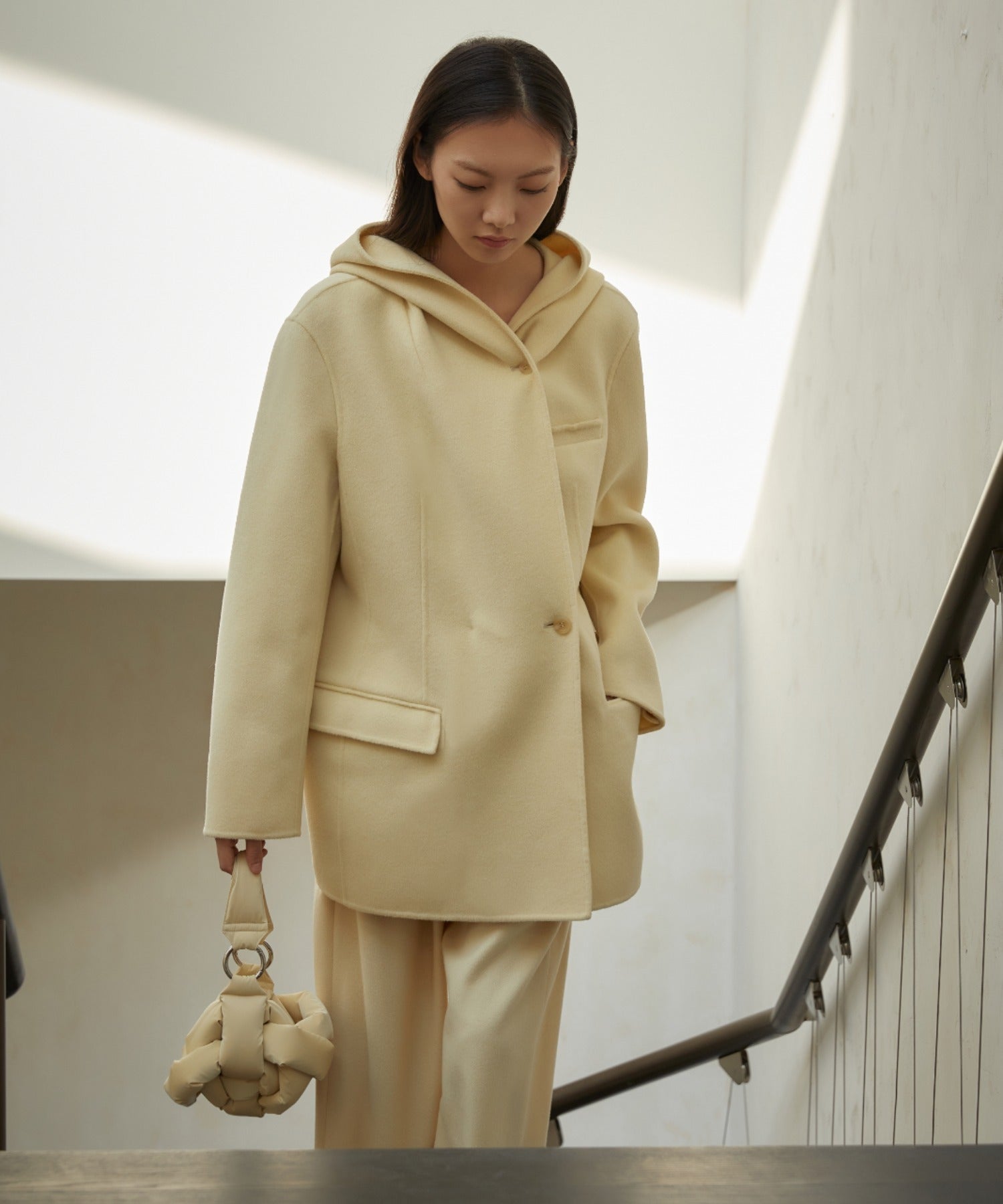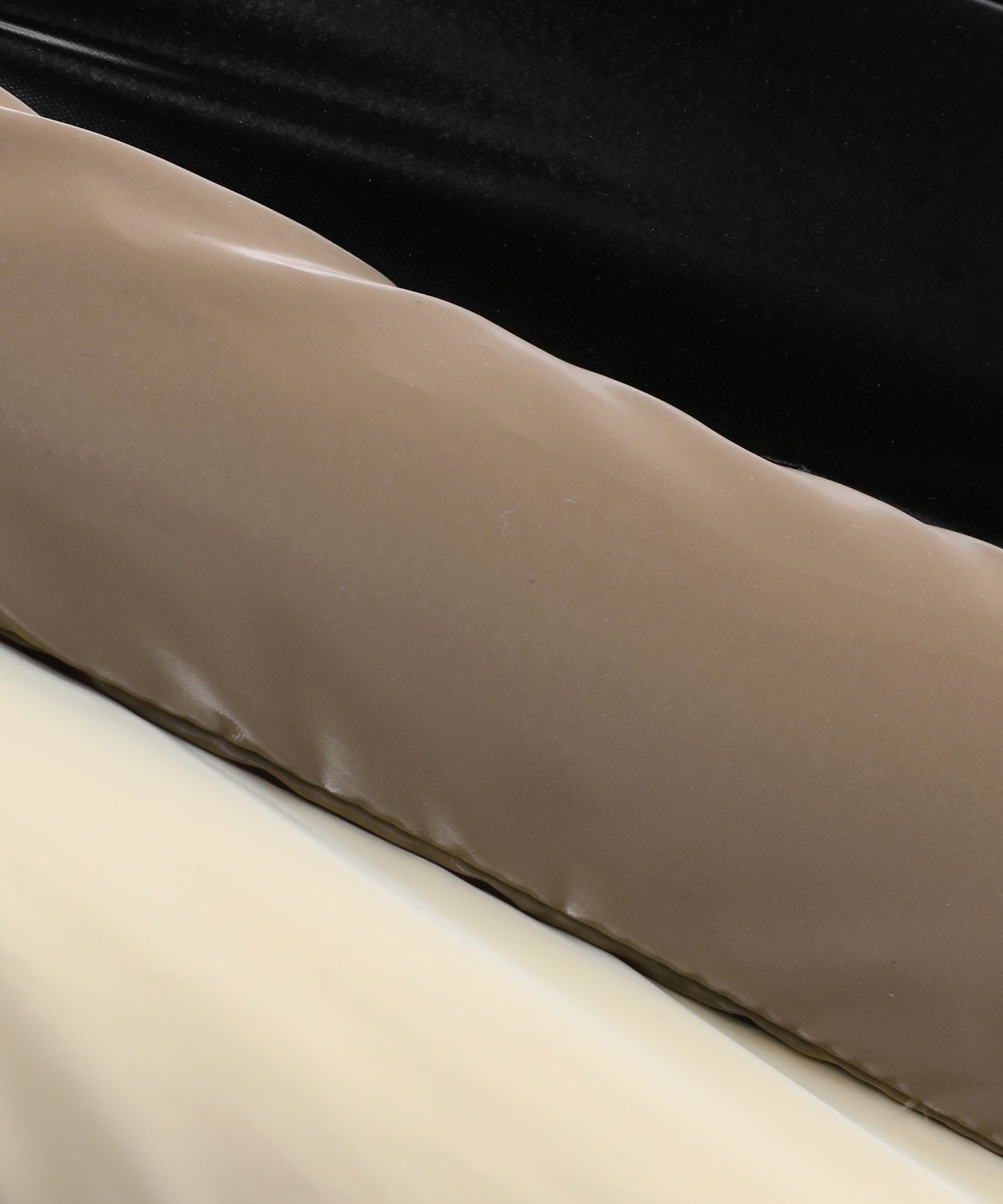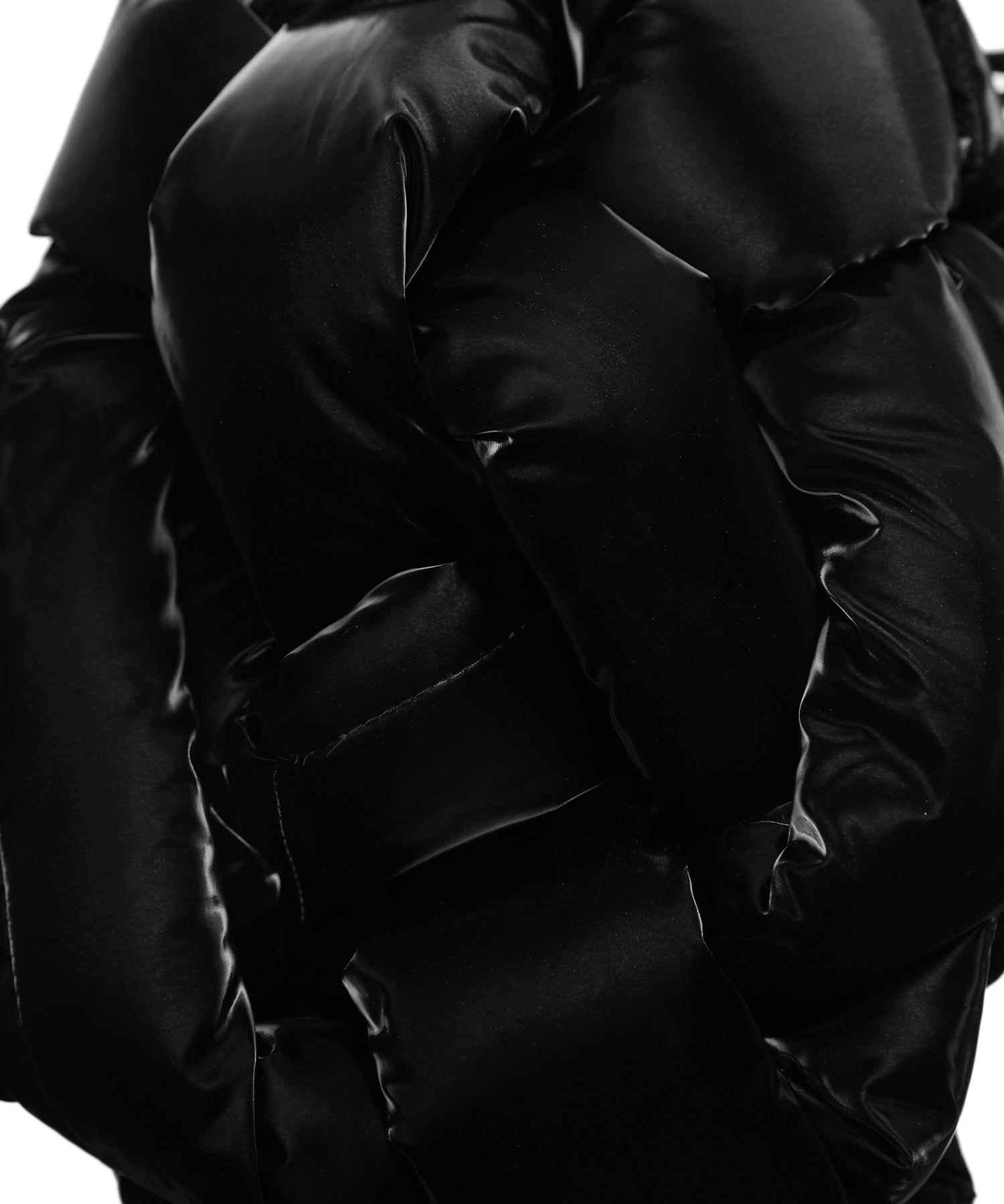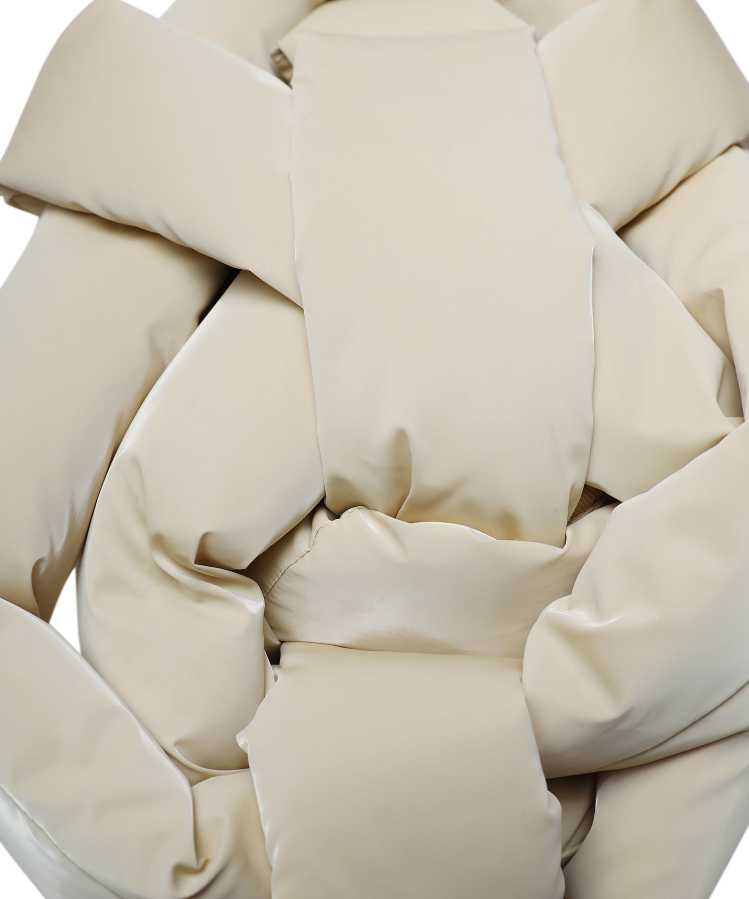 マットな質感のダウン入り生地をクロスさせたデザインのショルダーバッグ。 その丸みを帯びたフォルムが魅力的で、目を引くアイテムです。