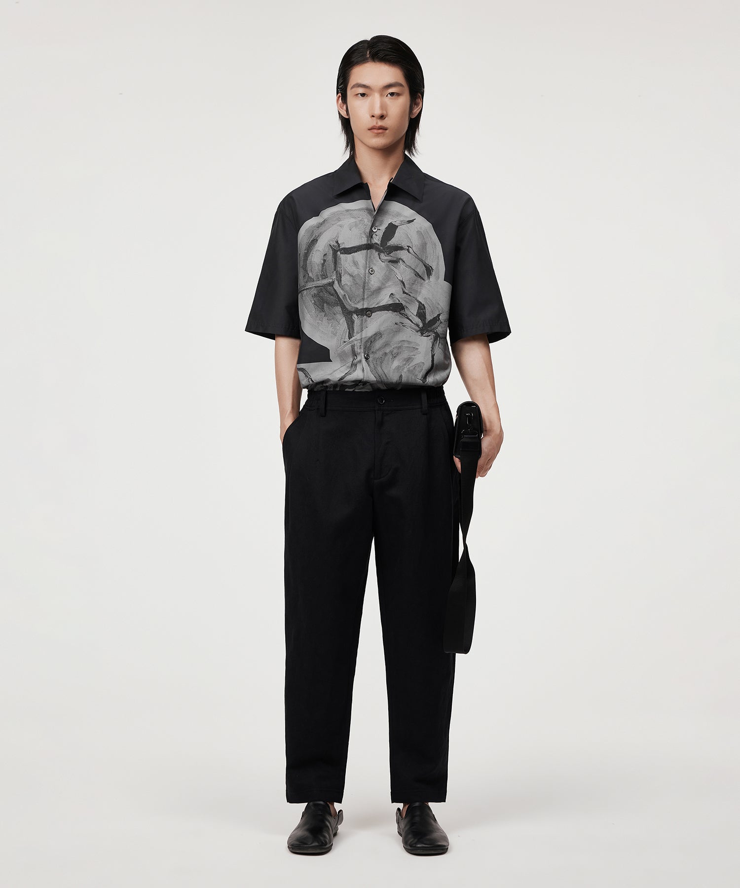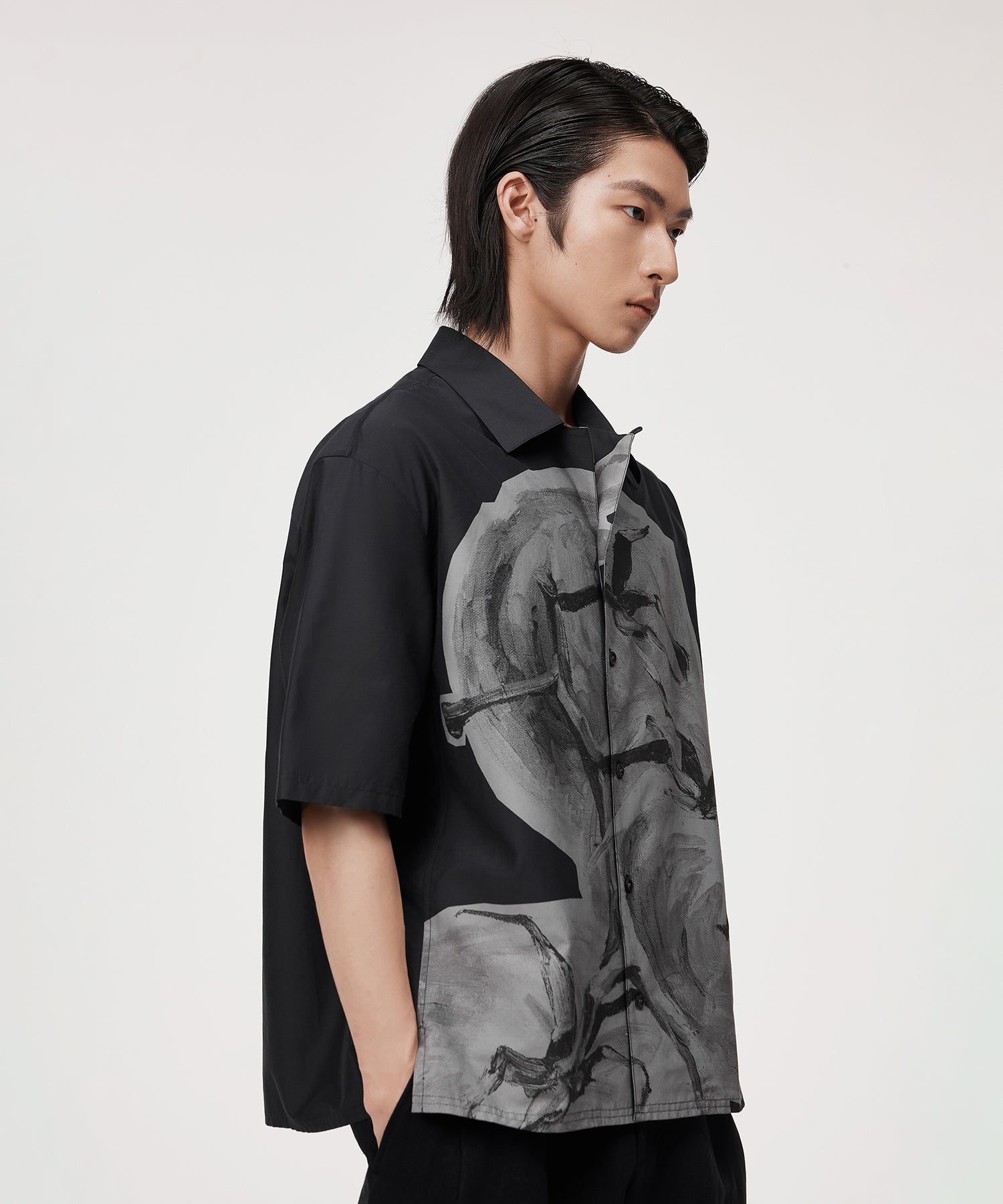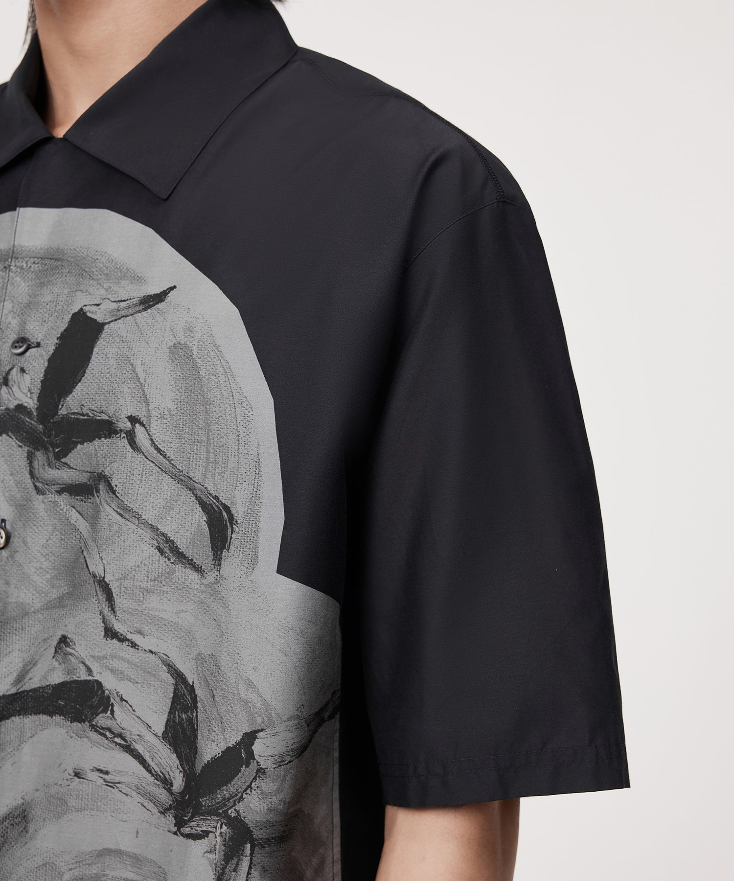 抽象的なフルーツモチーフが印象的な、プリントシャツ。大胆なペイント風デザインがコーディネートに華やぎをプラスします。ベーシックなカラーリングで主張しすぎず、デニムからスラックスまで、幅広いボトムスと好相性。スタイリングにひとさじの遊び心を添える一着です。