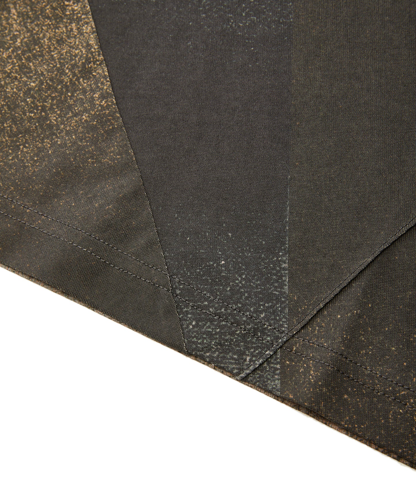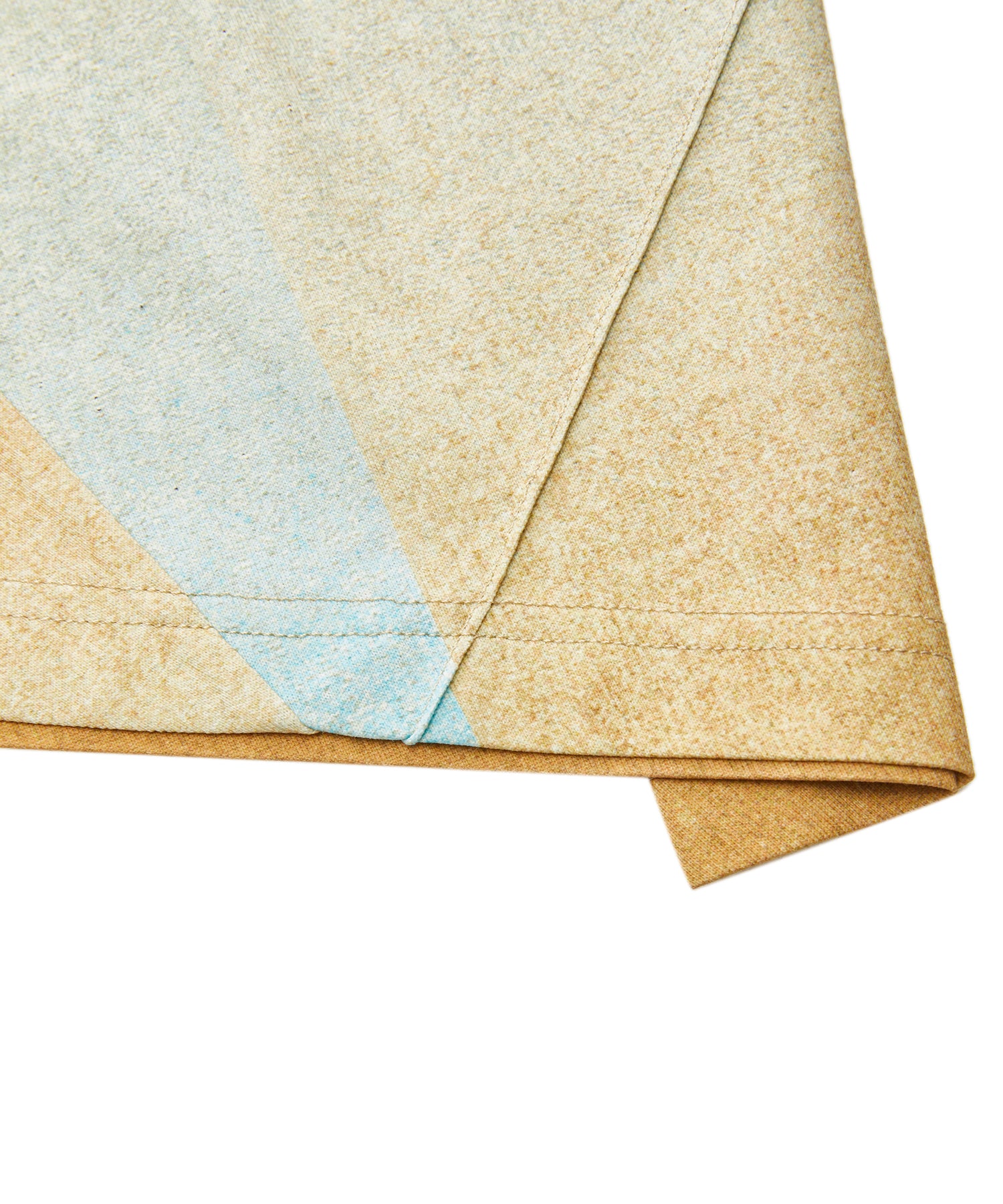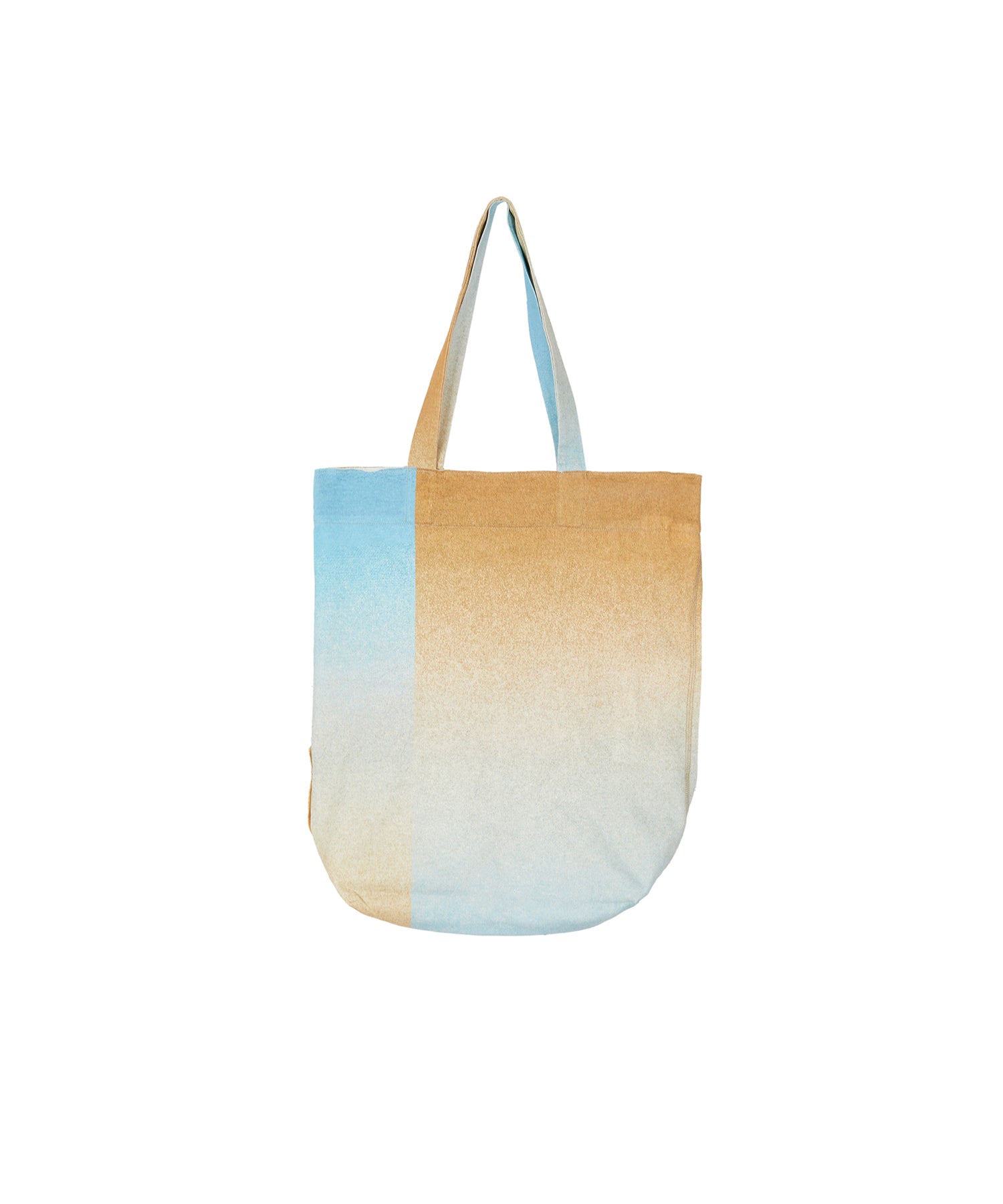 一枚裁断で仕立てた、グラデーションカラーのTシャツ。斜めの切り替えがモダンな印象を与えつつ、生地を無駄なく活かす設計で、残布からは同柄のバッグも製作される、サステナブルな発想が光る一着です。一枚で着映えし、夏の装いを主役級に格上げしてくれます。
