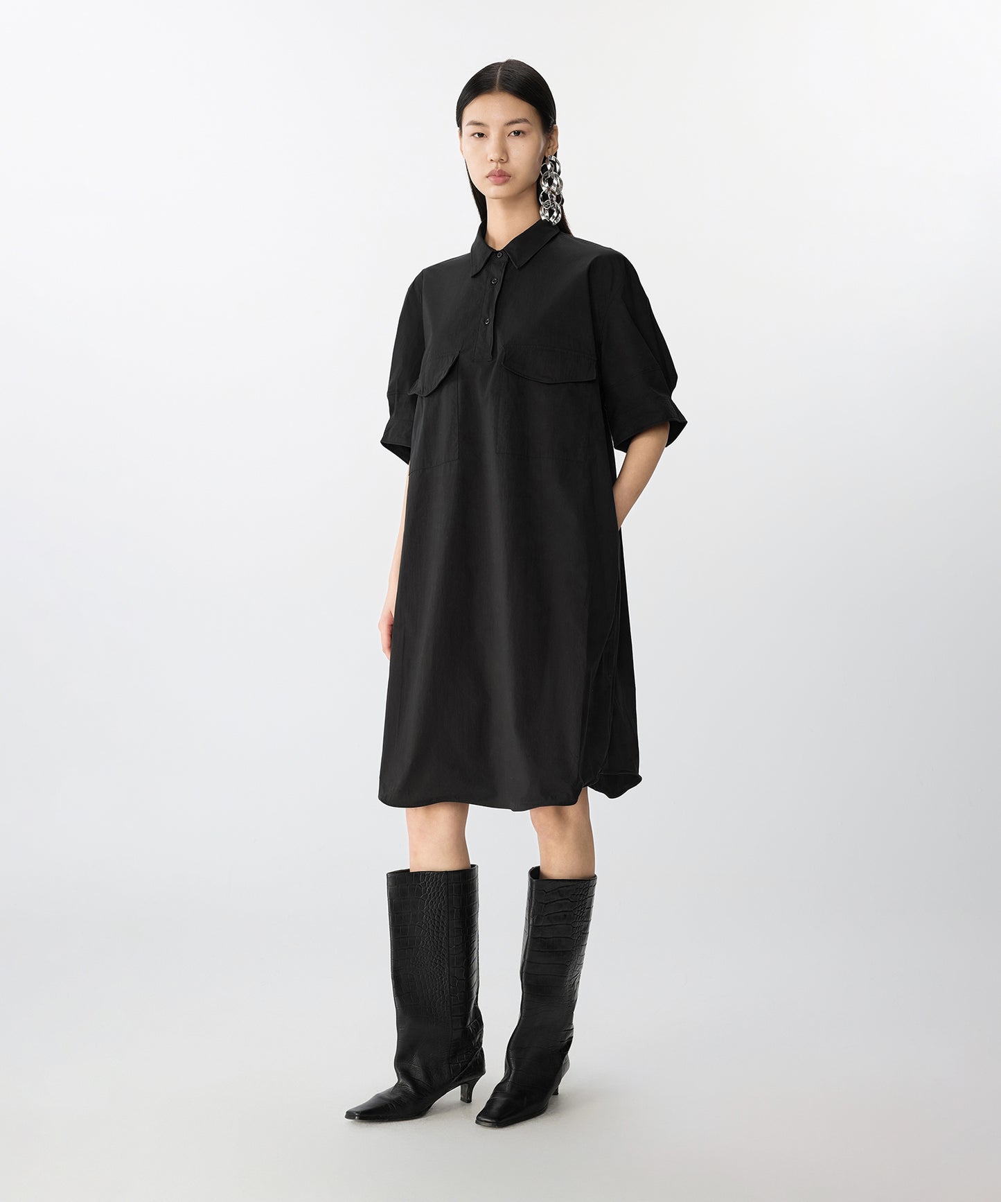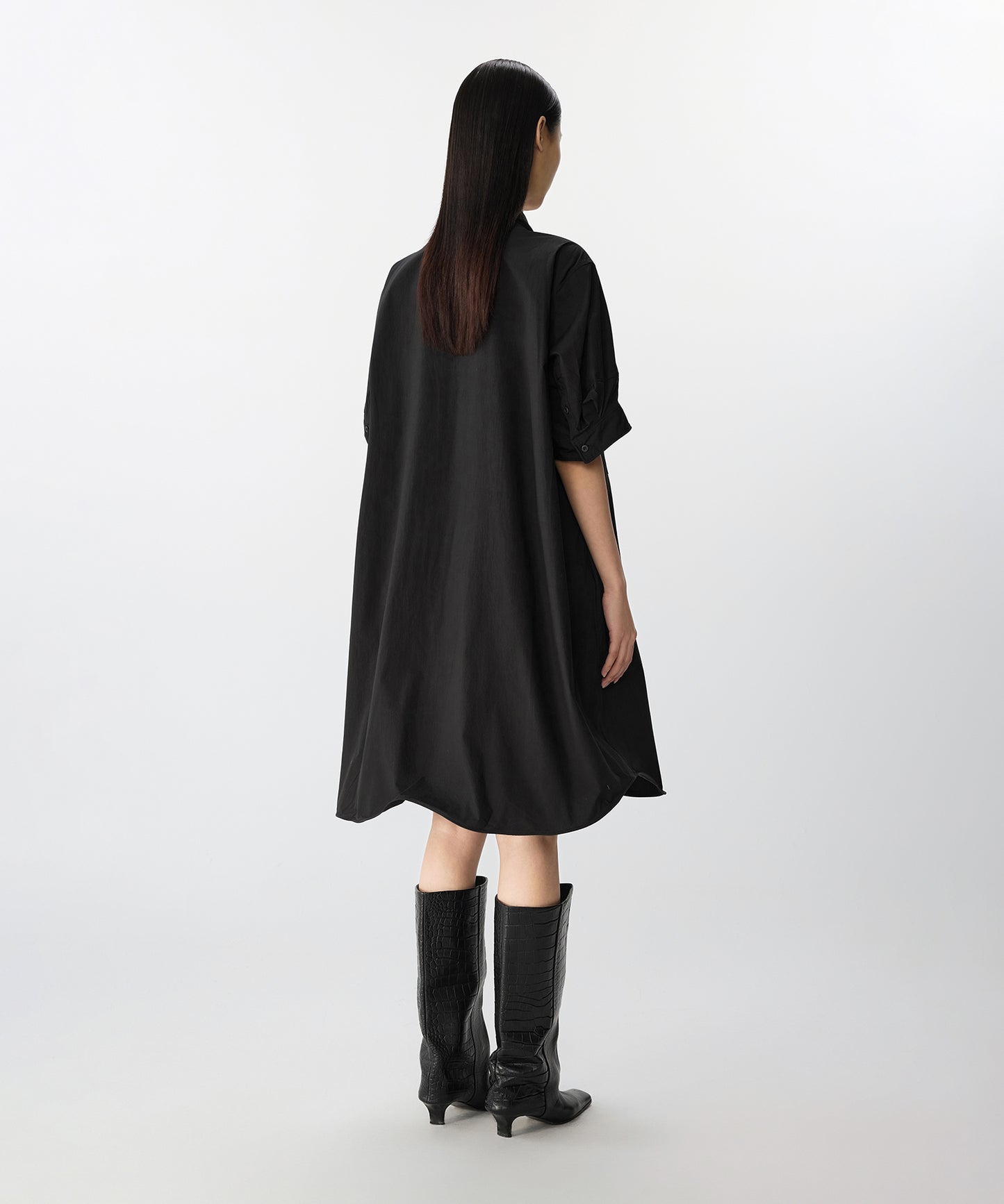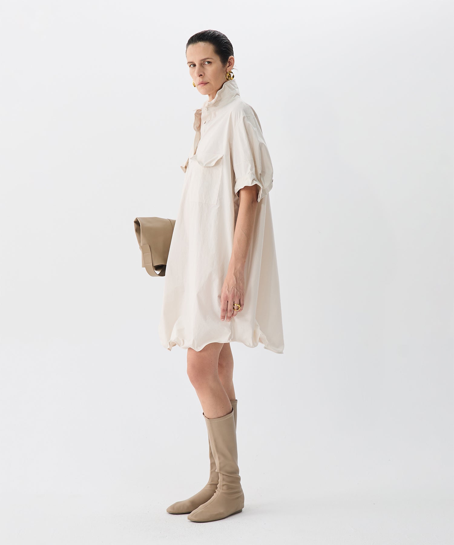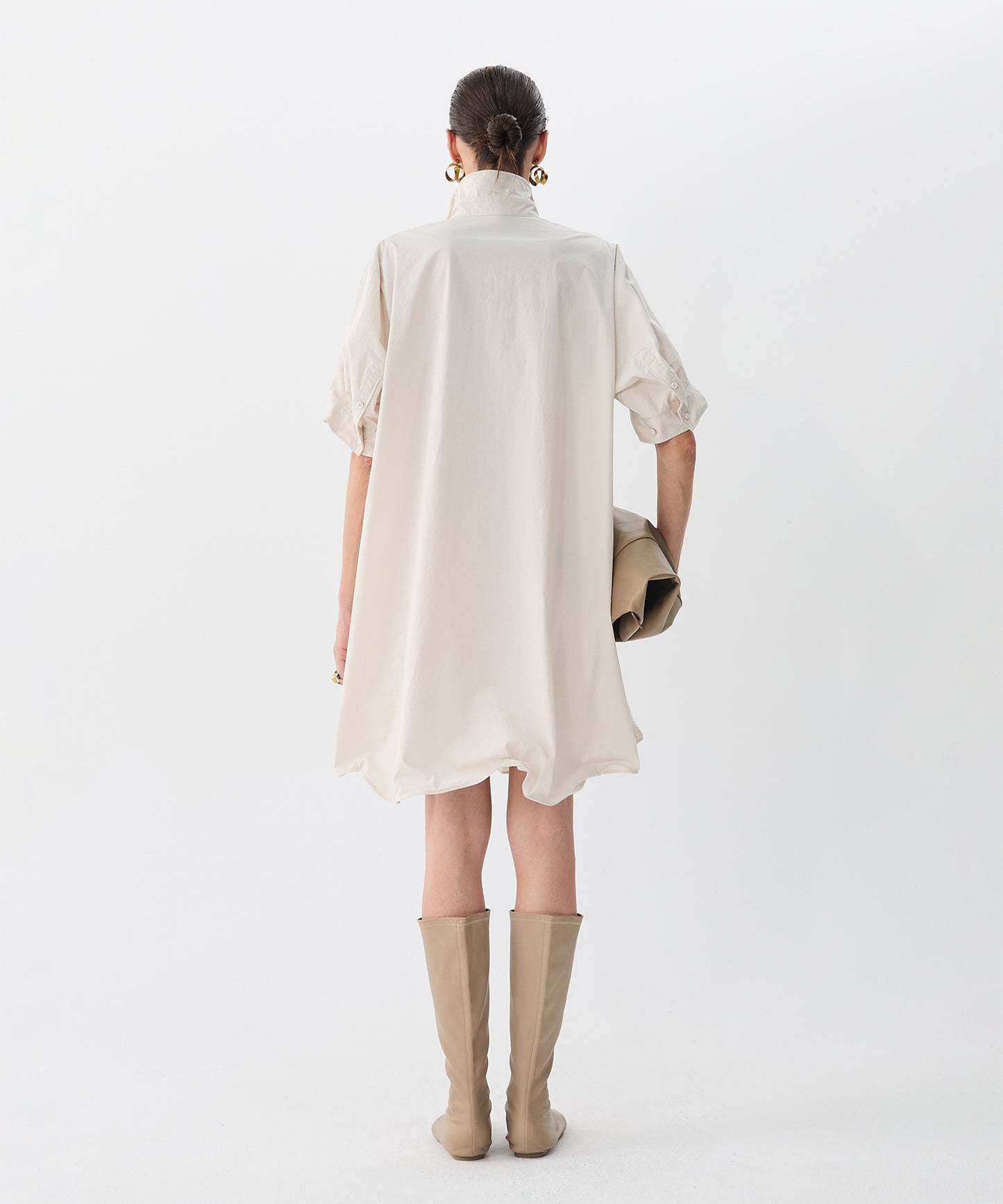 シルエット自由自在なスタイリッシュワンピースドレス。襟、袖口、裾に施されたワイヤーディテールが、着る人の気分やシーンに合わせてシルエットを自在に変化させます。シンプルでありながら、モダンなデザインがあらゆるスタイルにマッチ。一枚でさまざまな表情を楽しめる、柔軟性のあるアイテムです。