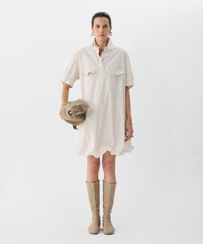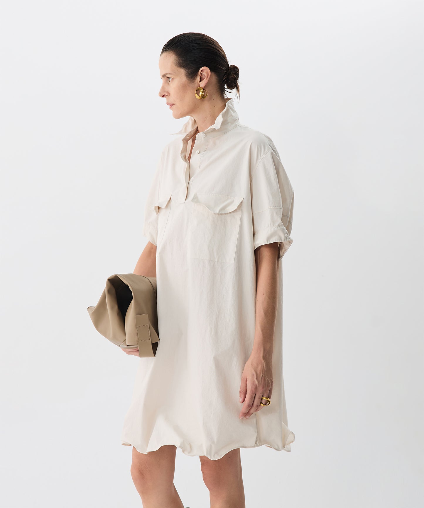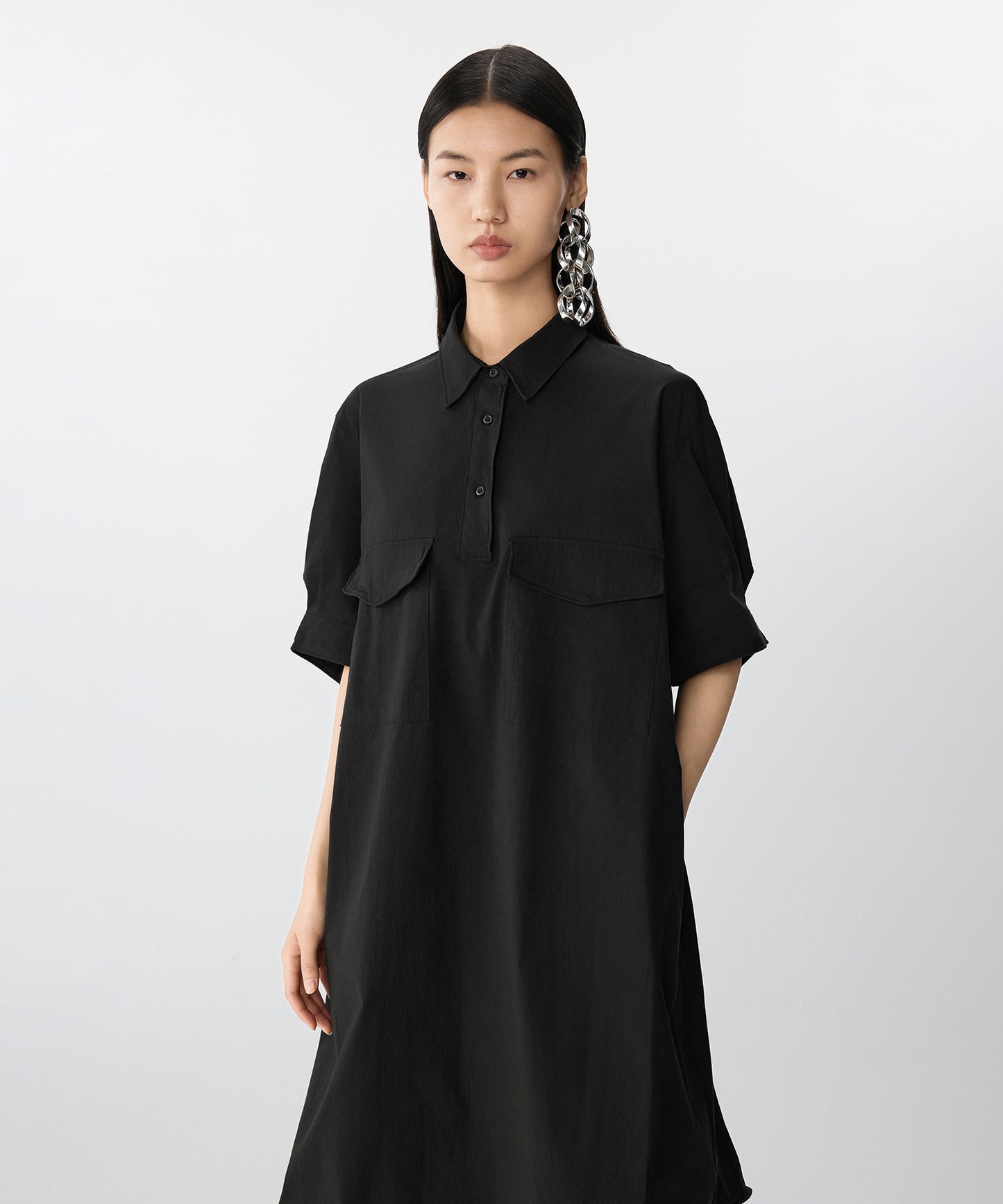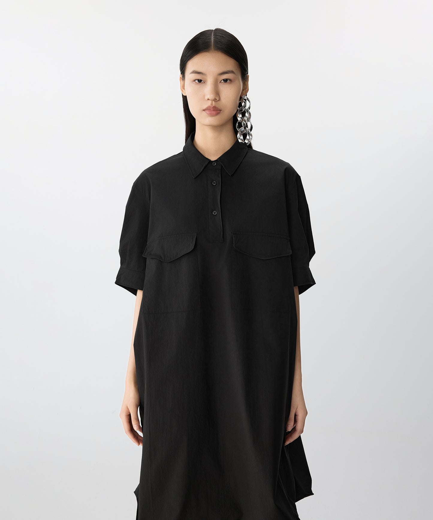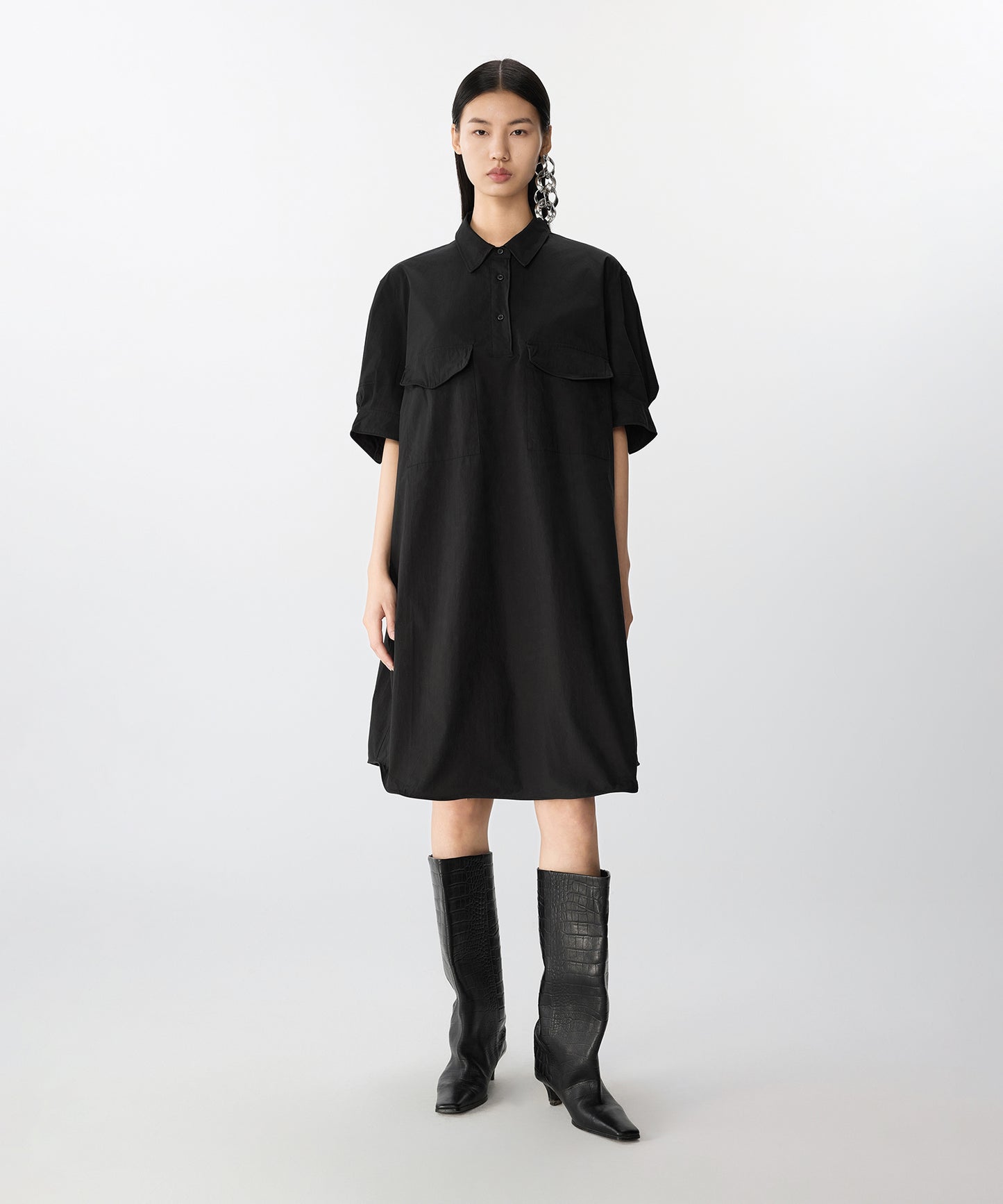シルエット自由自在なスタイリッシュワンピースドレス。襟、袖口、裾に施されたワイヤーディテールが、着る人の気分やシーンに合わせてシルエットを自在に変化させます。シンプルでありながら、モダンなデザインがあらゆるスタイルにマッチ。一枚でさまざまな表情を楽しめる、柔軟性のあるアイテムです。