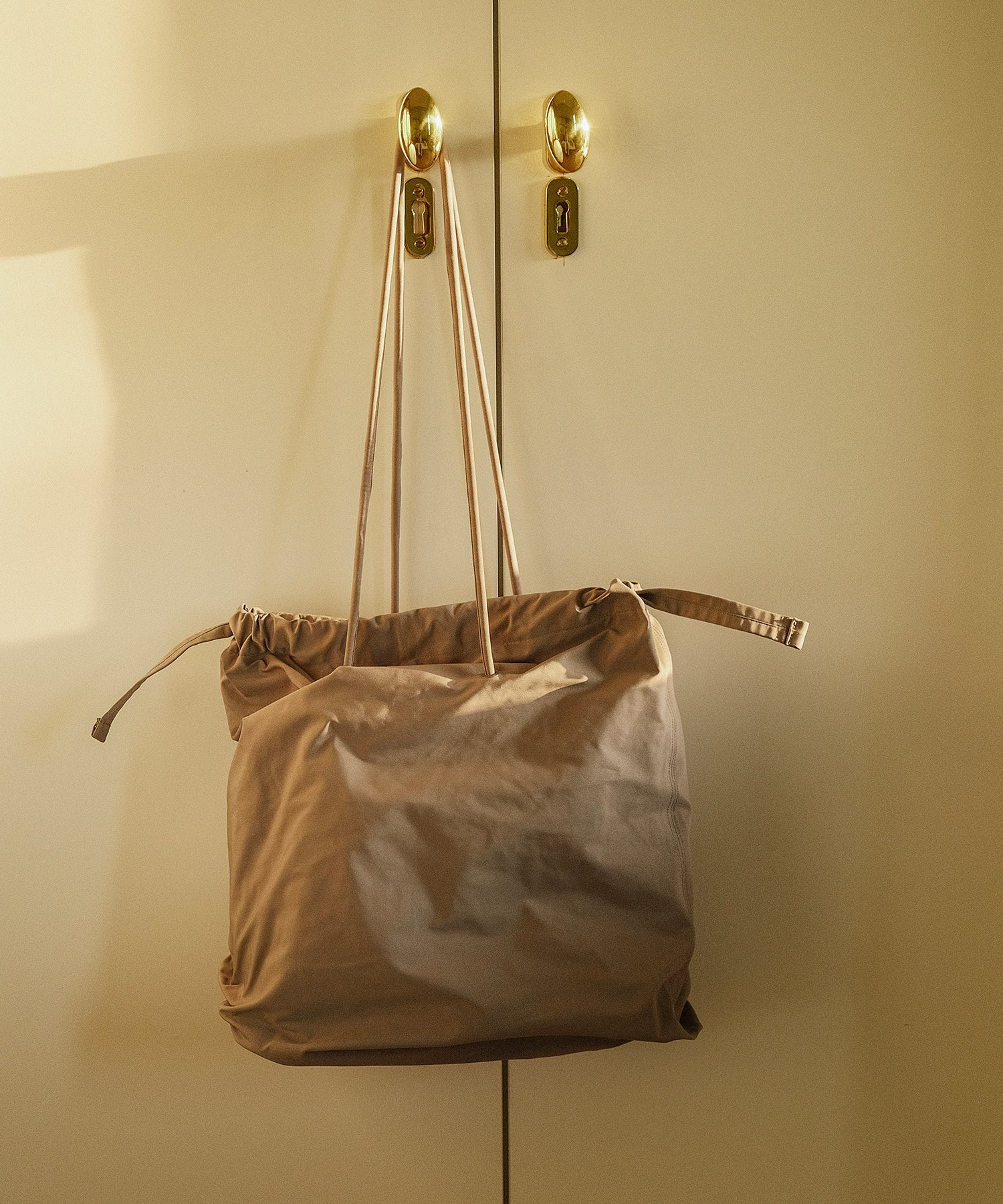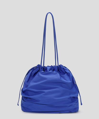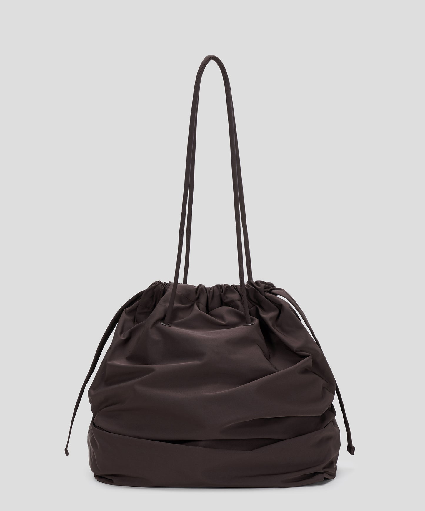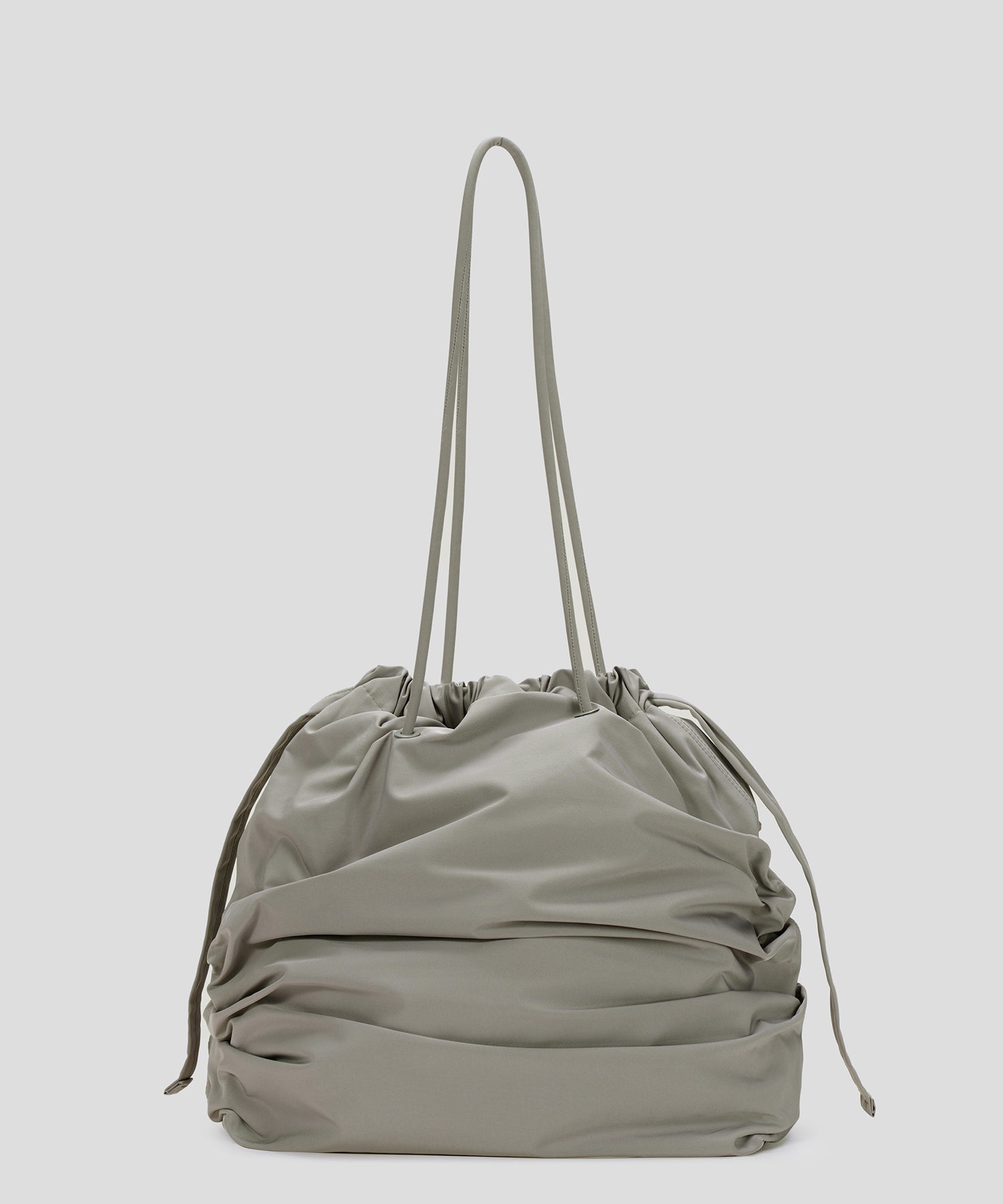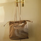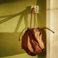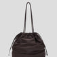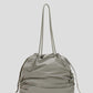 シルエットを遊ぶ、ギャザーショルダーバッグ。持ち手とバッグ口の紐を引くだけで、巾着風のフォルムに変化するアレンジ可能なデザイン。シーンや気分に合わせて表情を変えられるのが魅力です。コンパクトすぎず大きすぎない、絶妙なサイズ感で、デイリーにもお出かけにもフィット。スタイリングのアクセントとしても活躍する、使い勝手のよい万能バッグです。