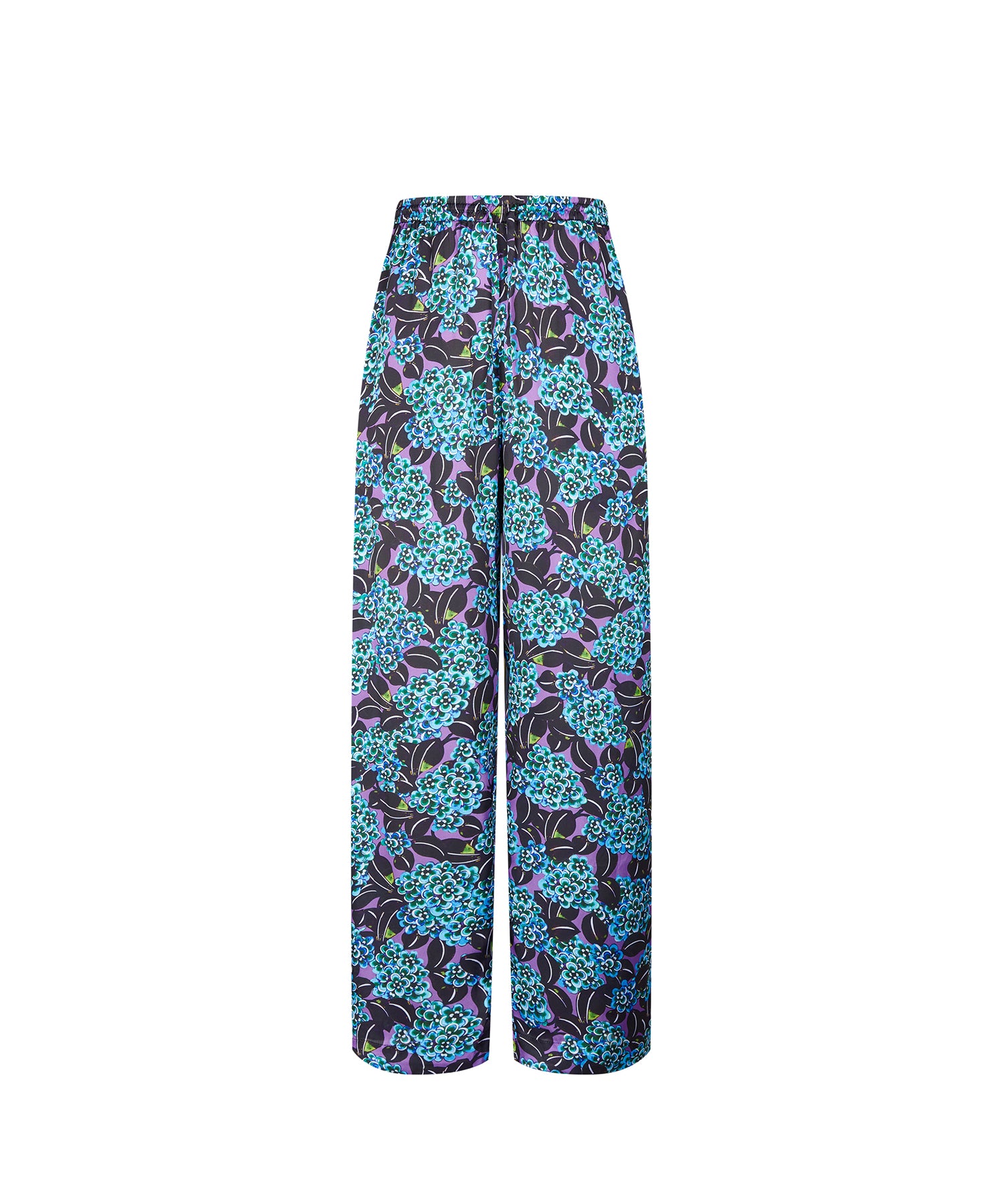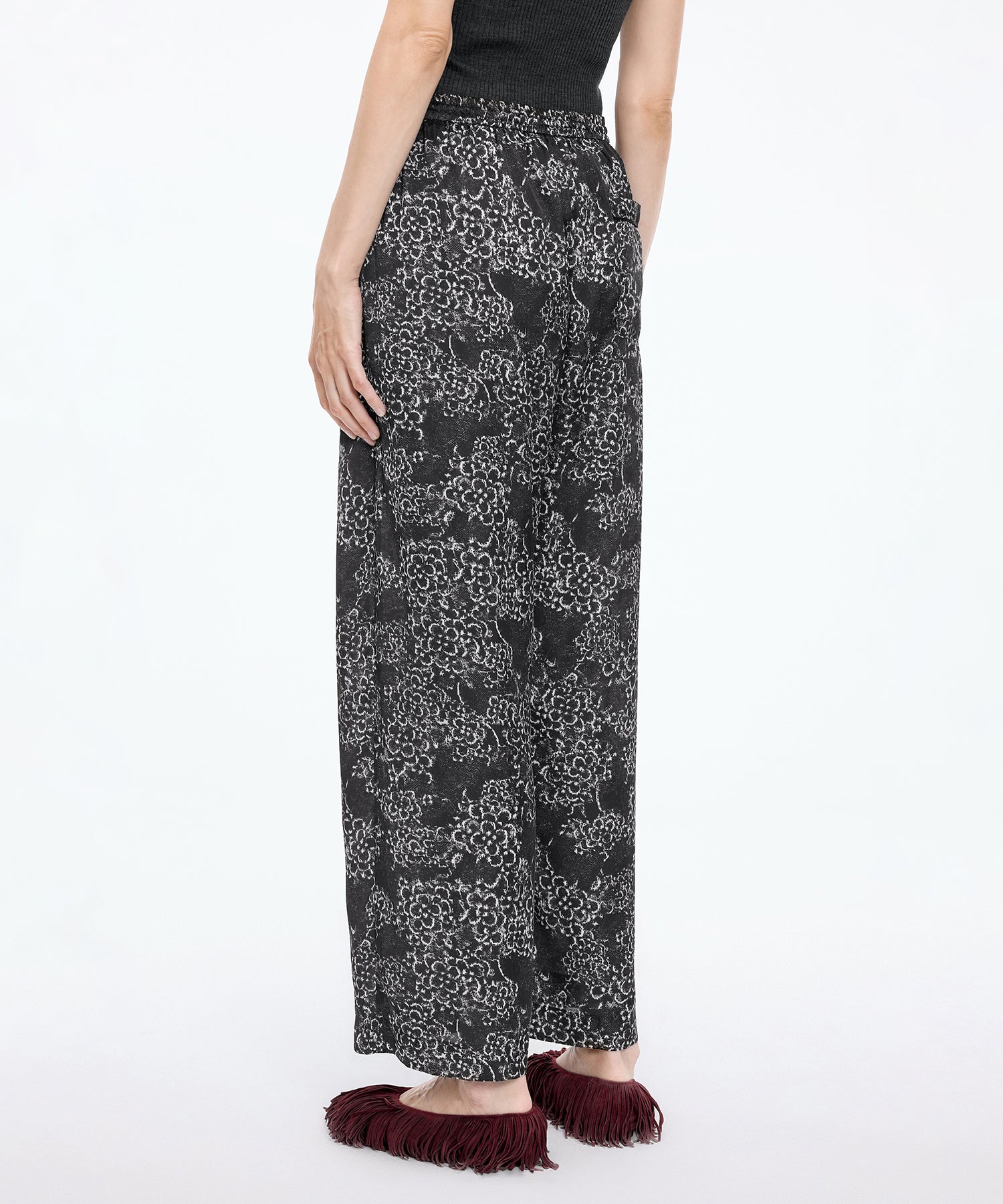 キンモクセイ柄をあしらったワイドレッグパンツ。落ち感のあるサテン地がレッグラインを拾わず、軽やかで快適な穿き心地を叶えます。シンプルなトップスと合わせれば、華やかな柄が引き立つスタイリングに。日常からリゾートまで、幅広いシーンで活躍する一着です。