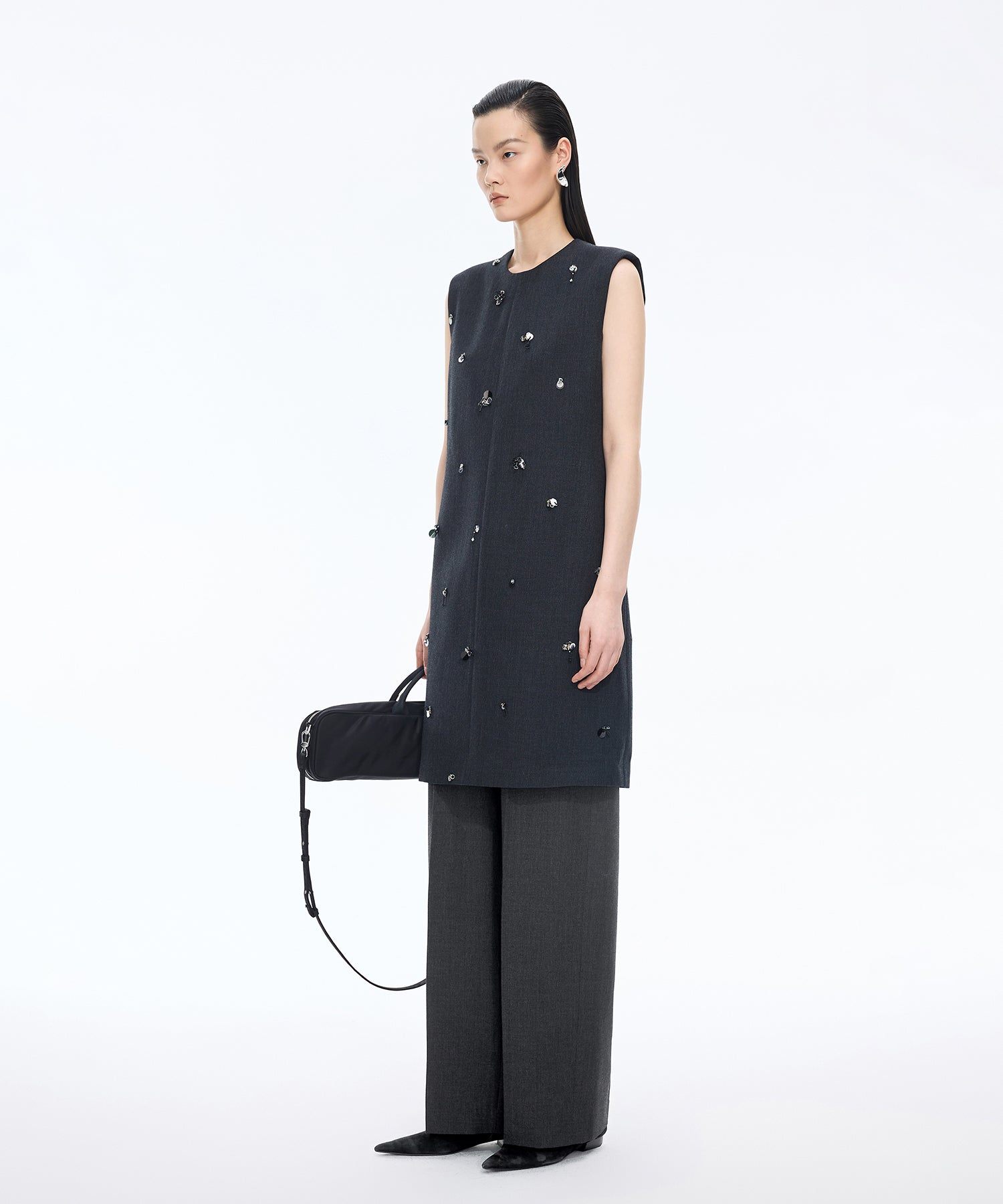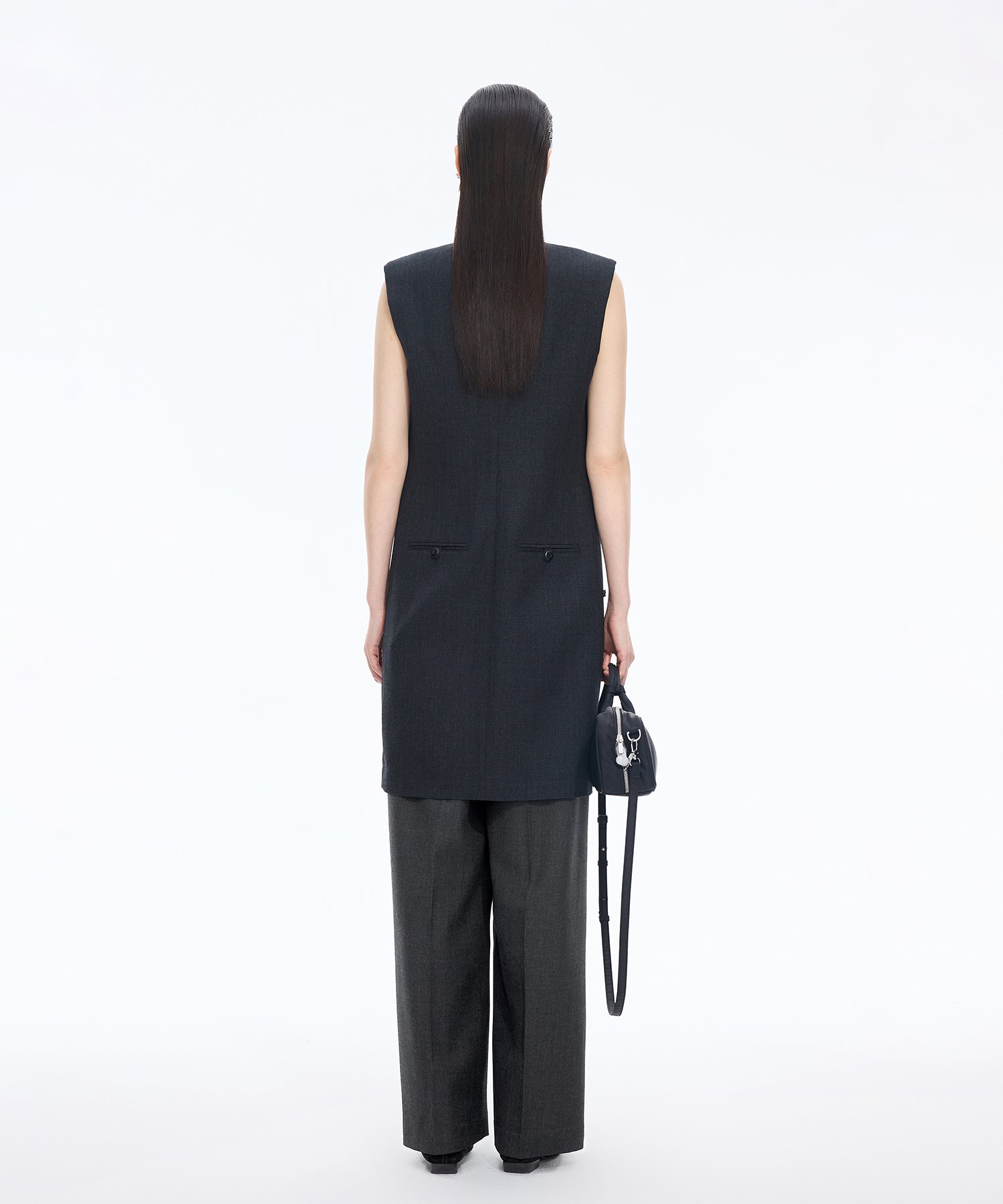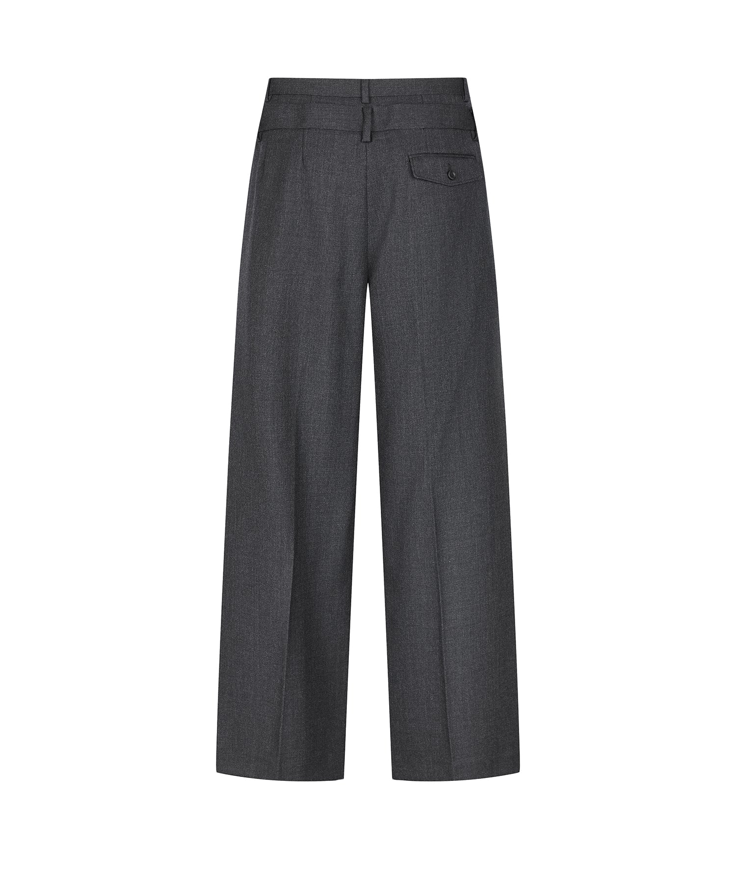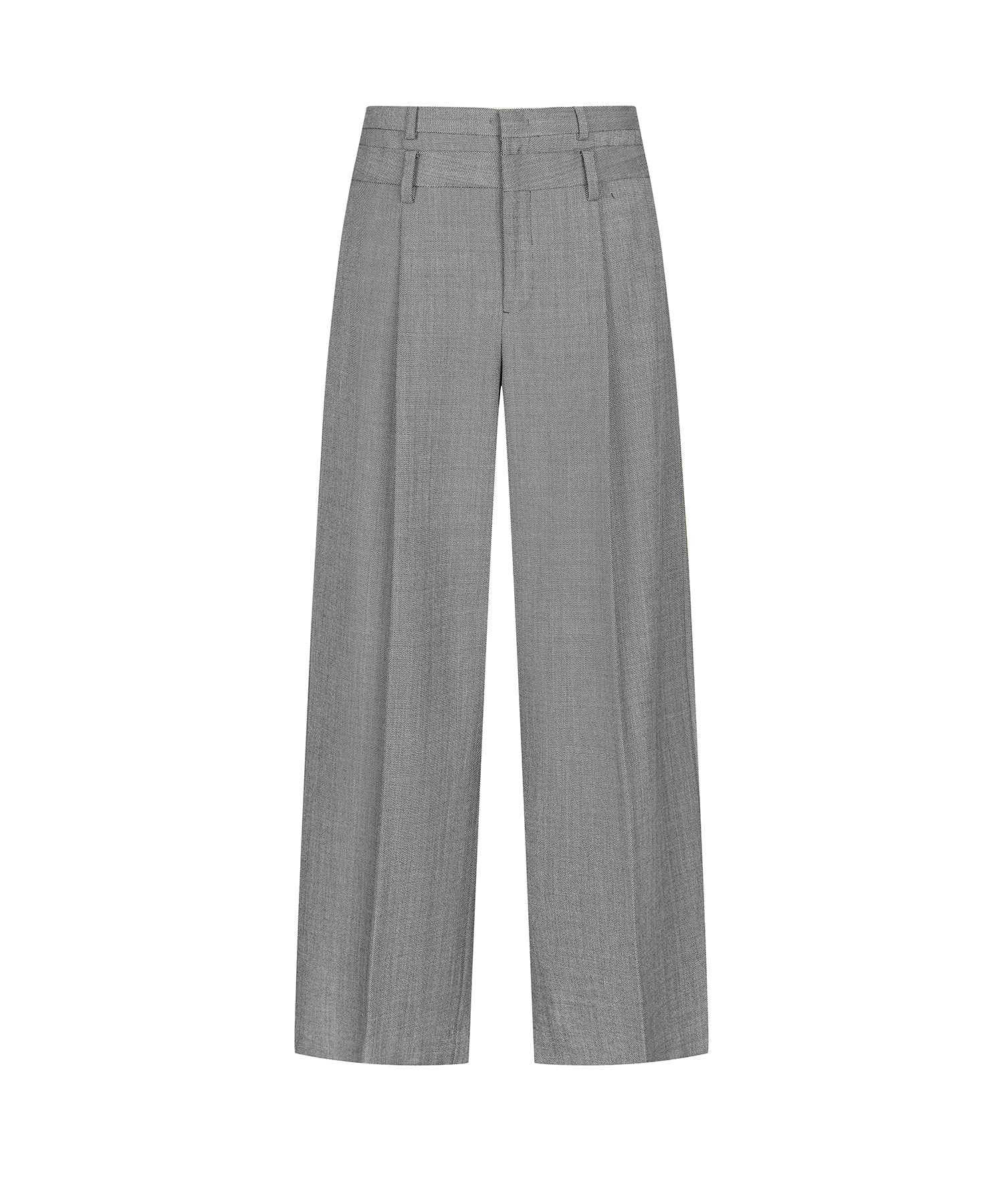 ダブルウエスト仕様が目を引くストレートパンツ。ハリとコシのある上質なウールを使用し、美しい落ち感を実現しています。ストレートレッグのデザインは脚をすっきりと見せ、シャープで洗練された印象に。きれいめスタイルからカジュアルコーデまで幅広く活躍する万能アイテムです。