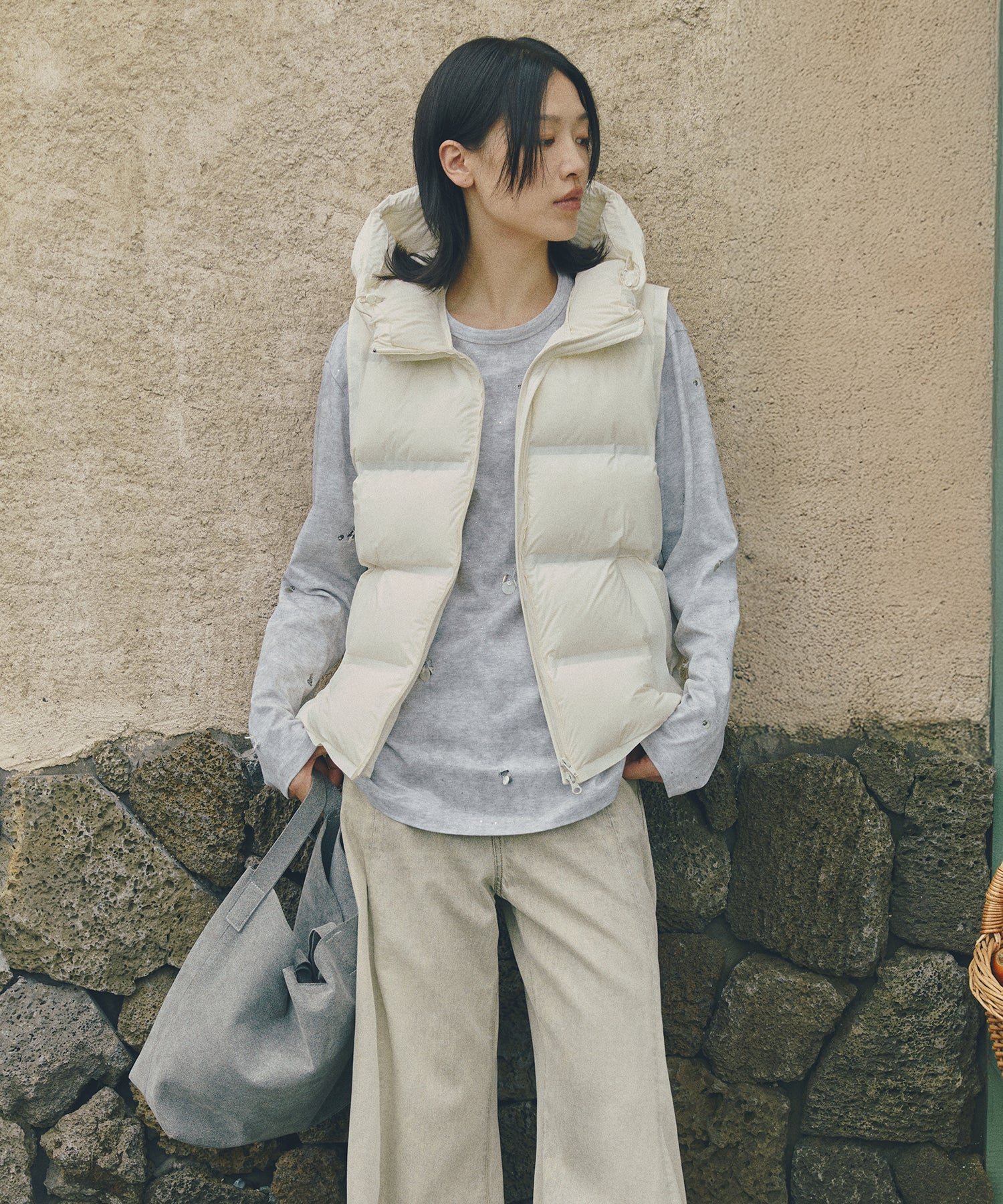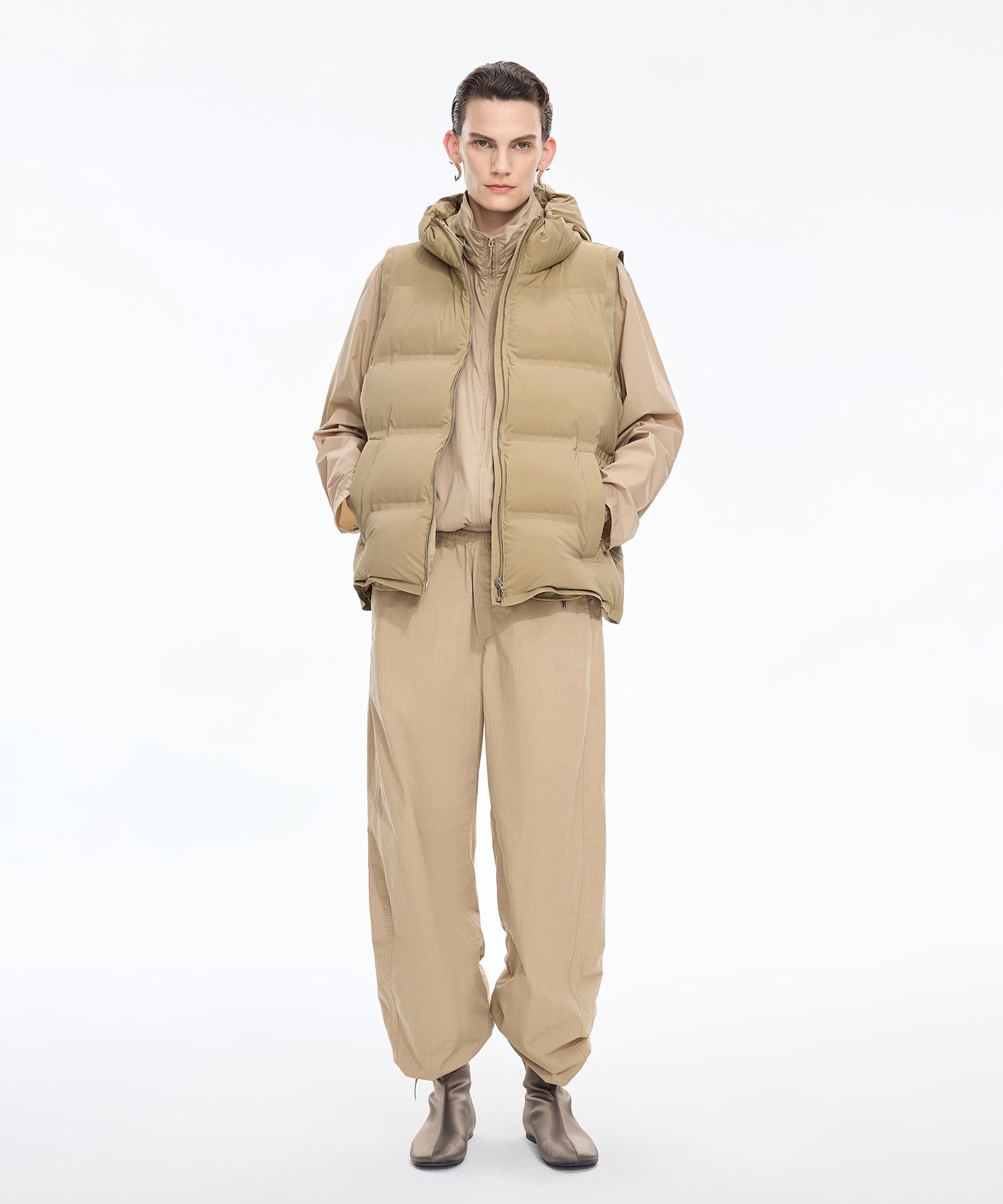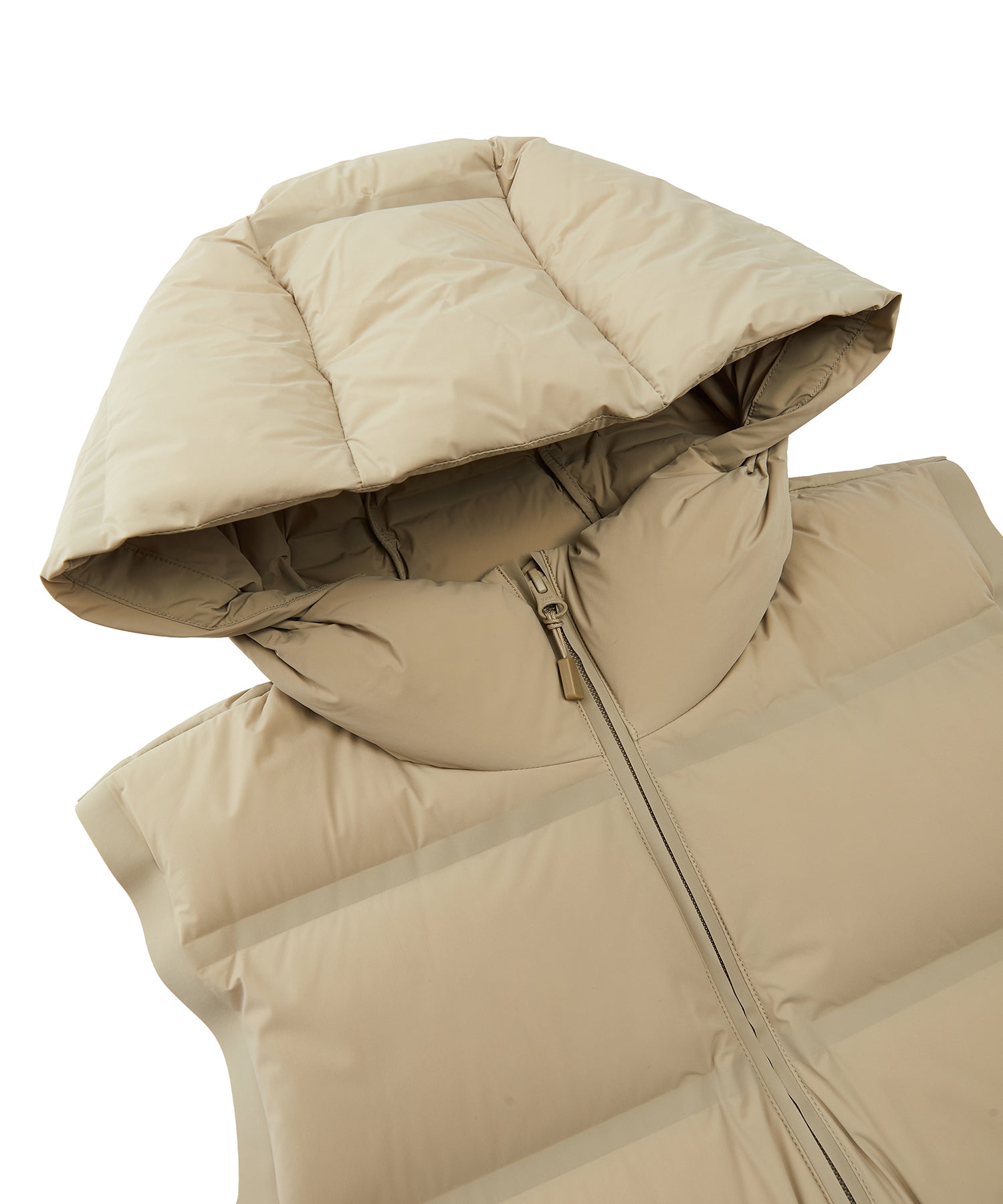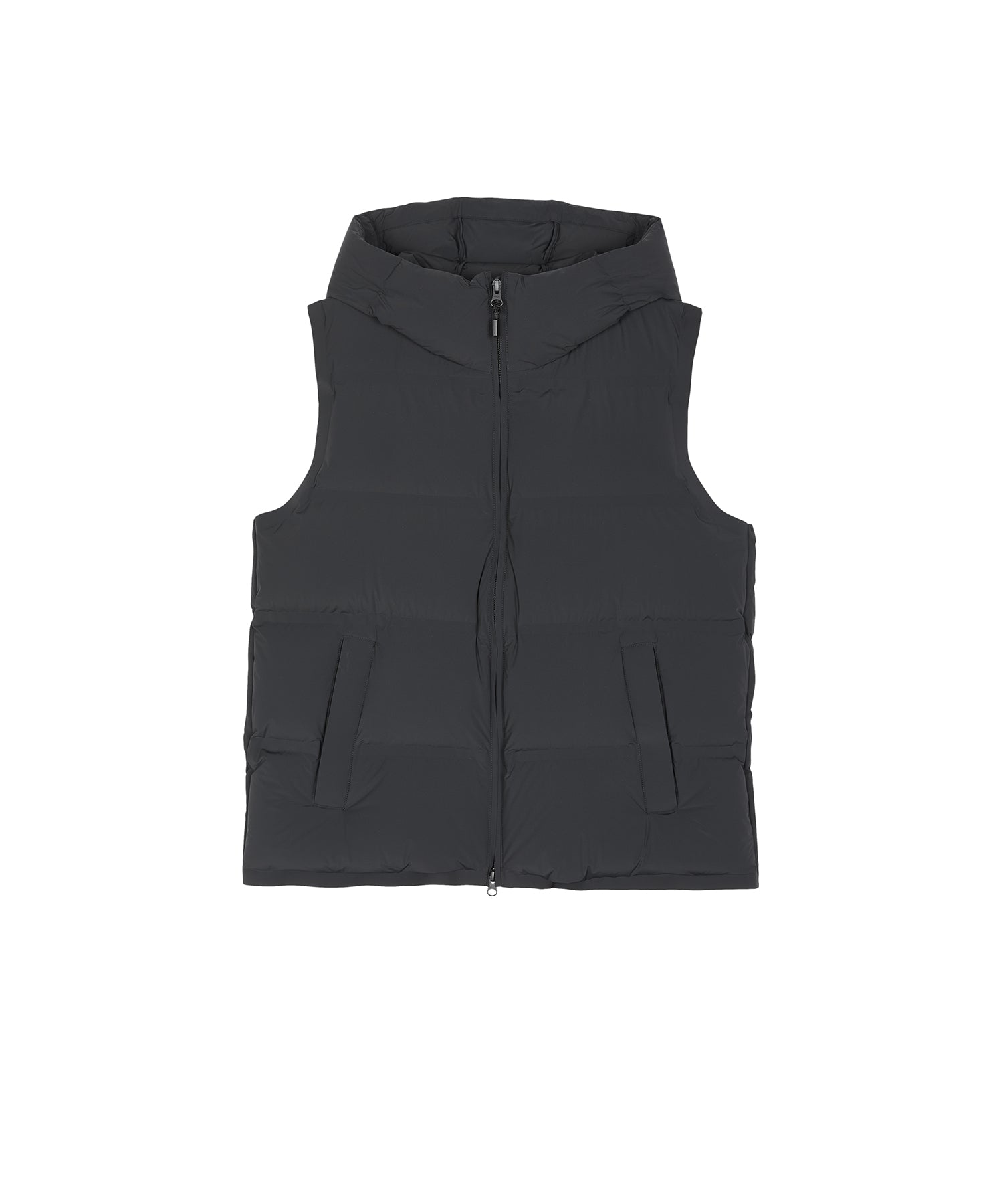 4方向に伸縮するストレッチ素材を使用したダウンベスト。動きやすく締め付け感のない快適な着心地で、デイリーからアクティブシーンまで活躍します。カジュアルにも綺麗めにも合わせやすい、洗練されたスタンドデザインです。