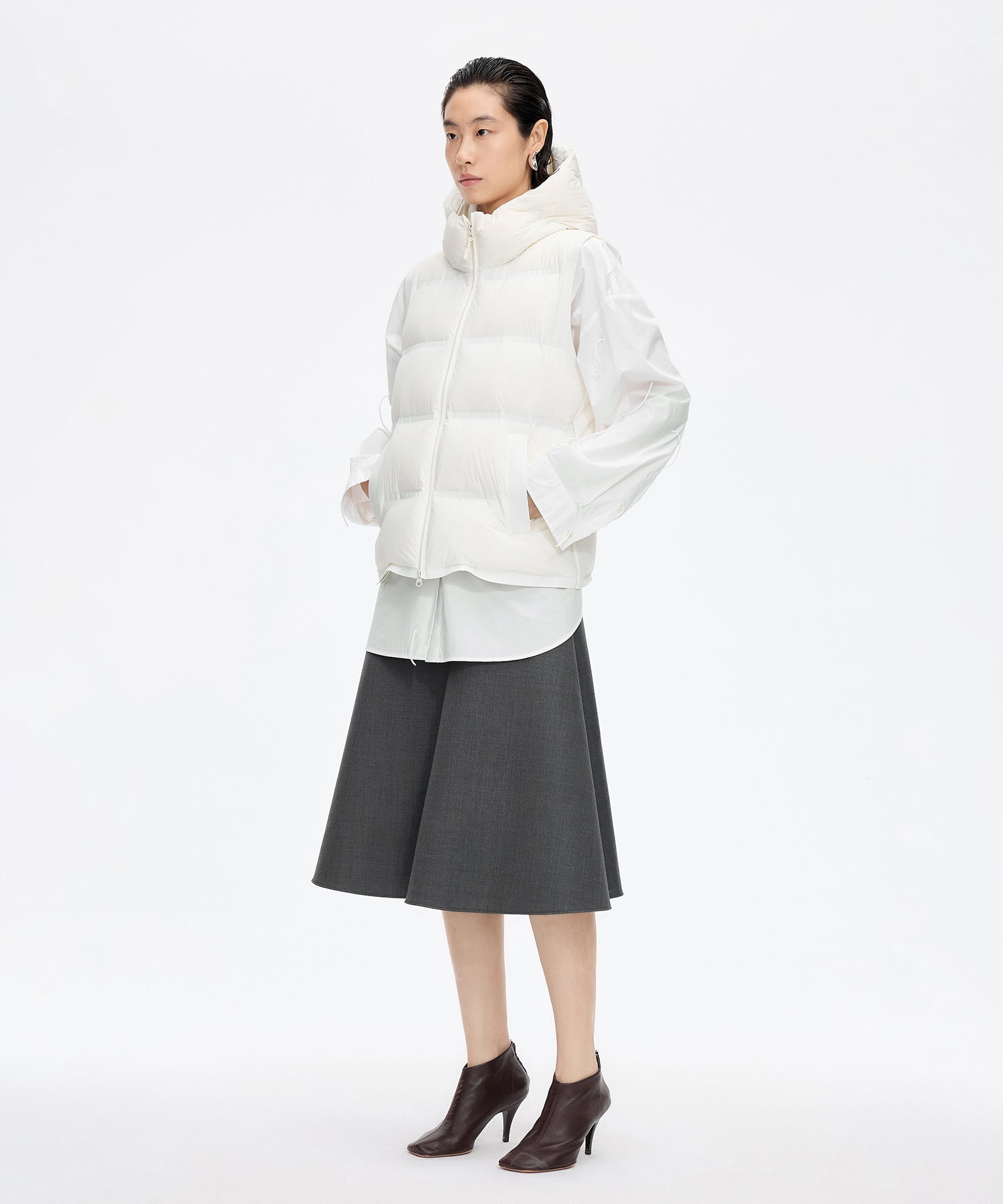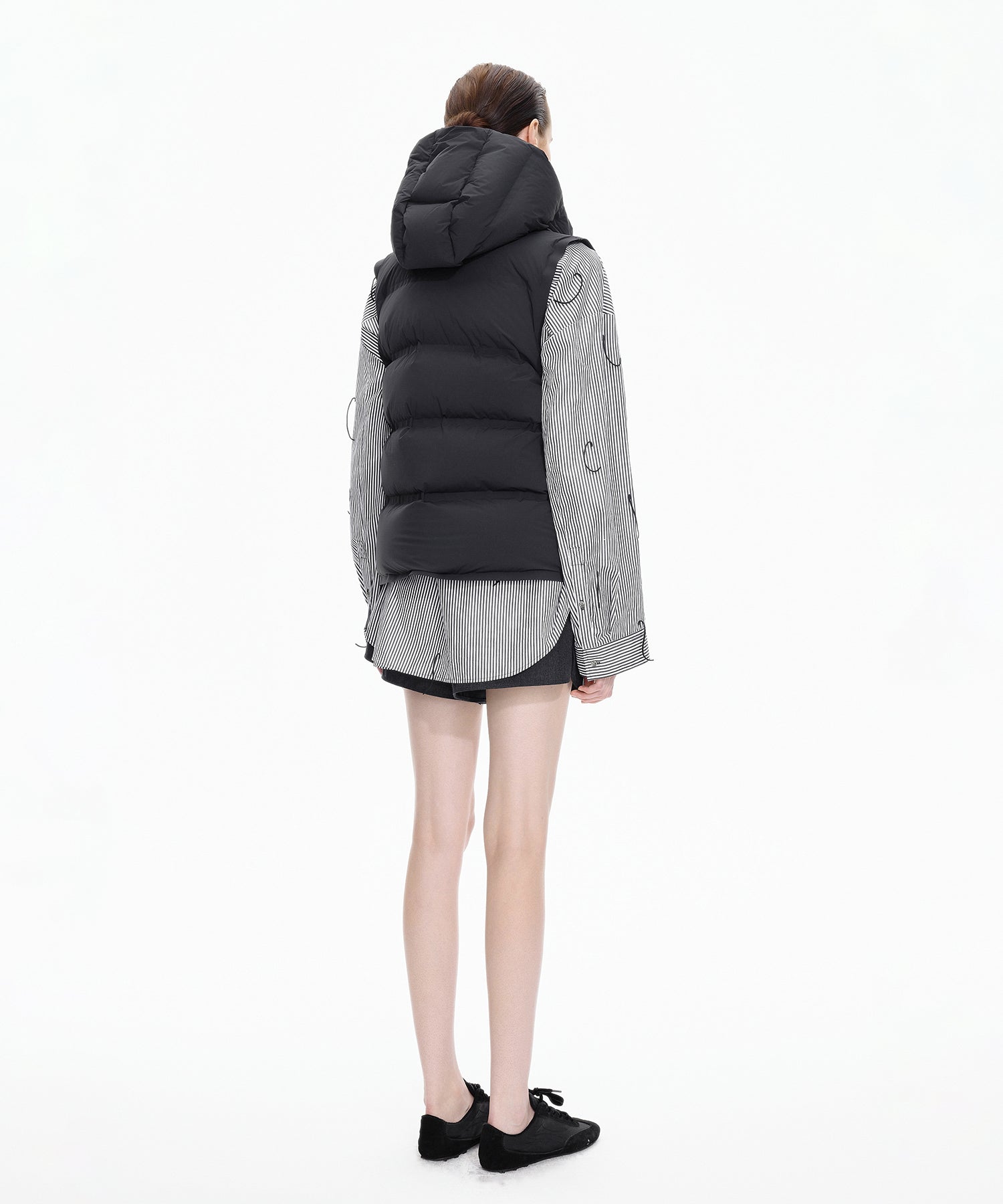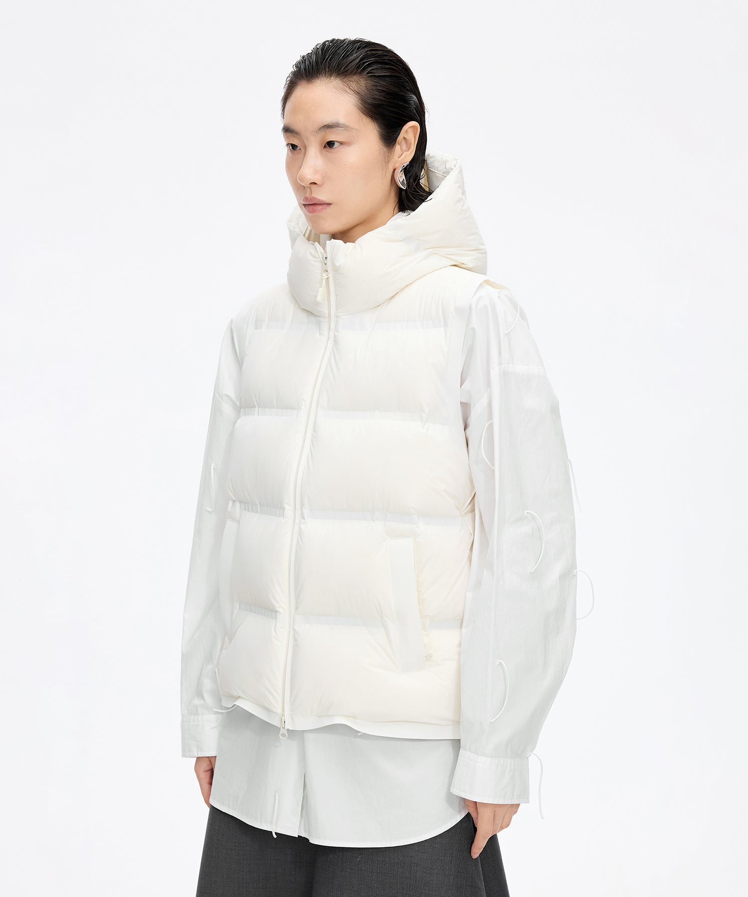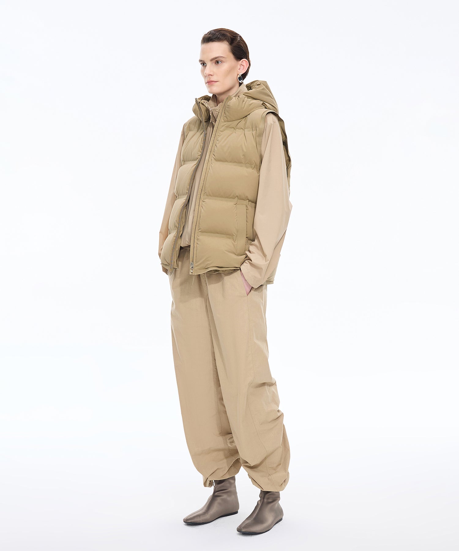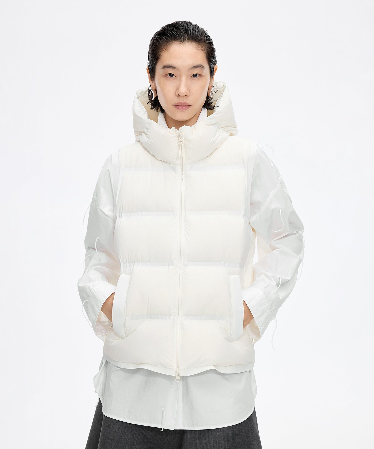 4方向に伸縮するストレッチ素材を使用したダウンベスト。動きやすく締め付け感のない快適な着心地で、デイリーからアクティブシーンまで活躍します。カジュアルにも綺麗めにも合わせやすい、洗練されたスタンドデザインです。