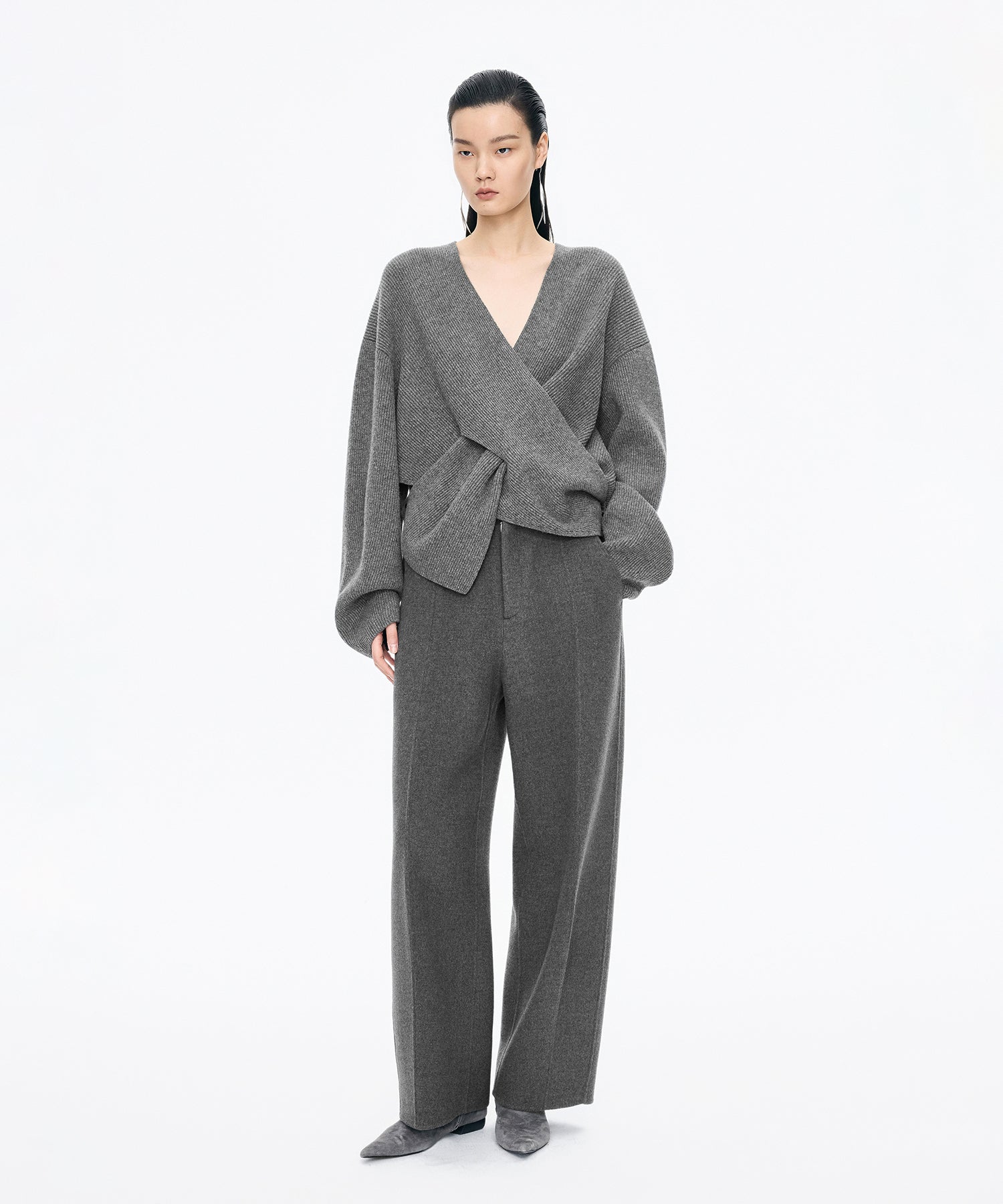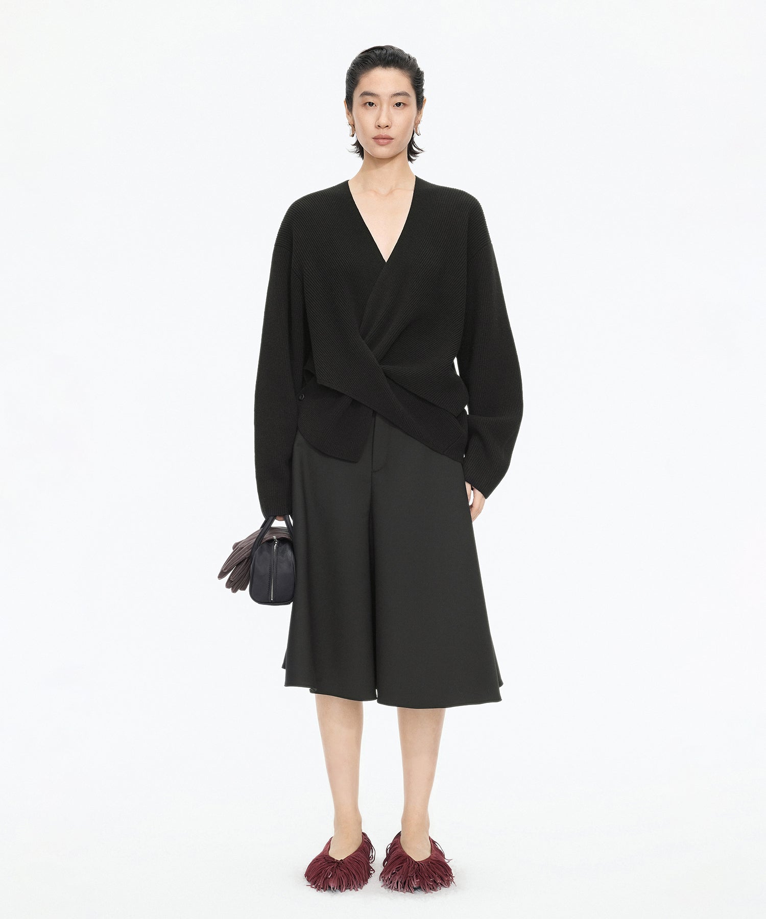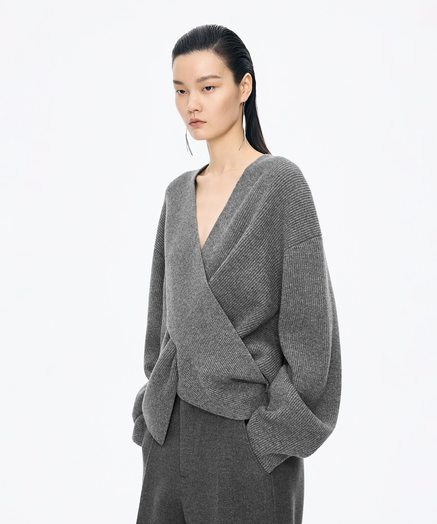 カシュクールデザインが印象的なニットプルオーバー。ふんわりと柔らかく、優れた保温性を備えています。深めのVネックがネックラインを美しく見せ、女性らしい印象を演出。ボトムスを選ばず、幅広いコーディネートで活躍する万能アイテムです。