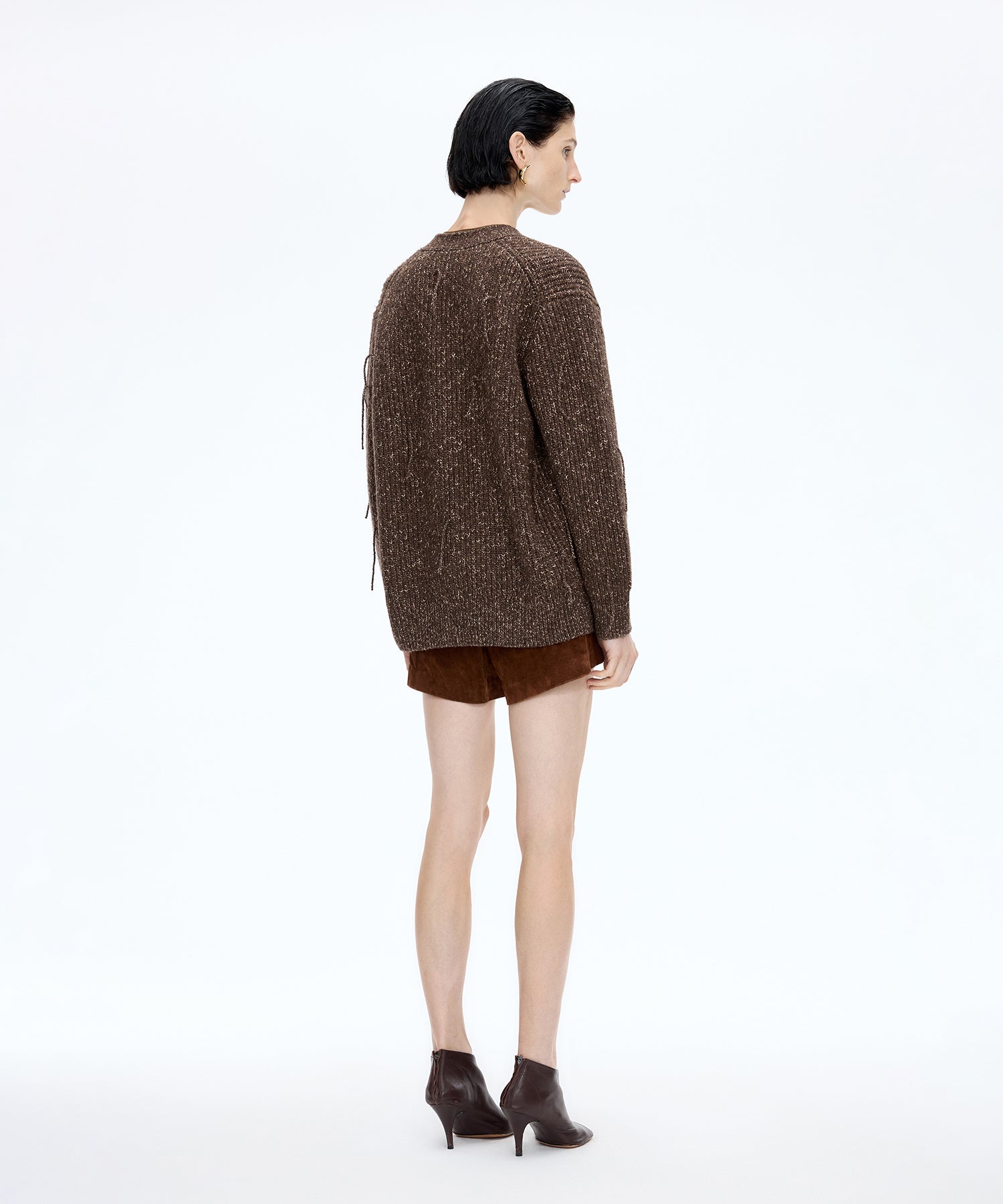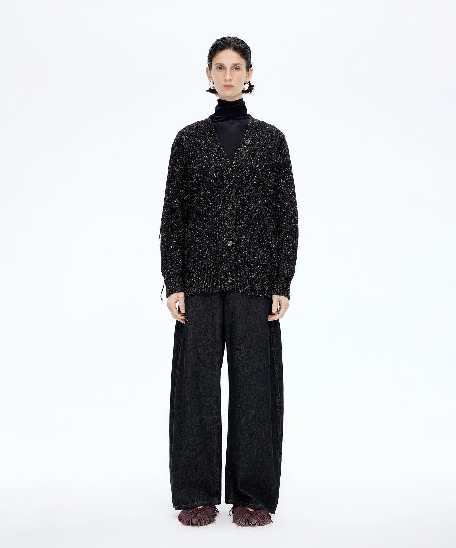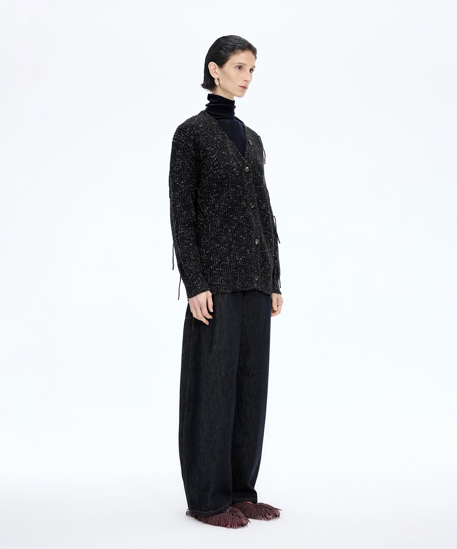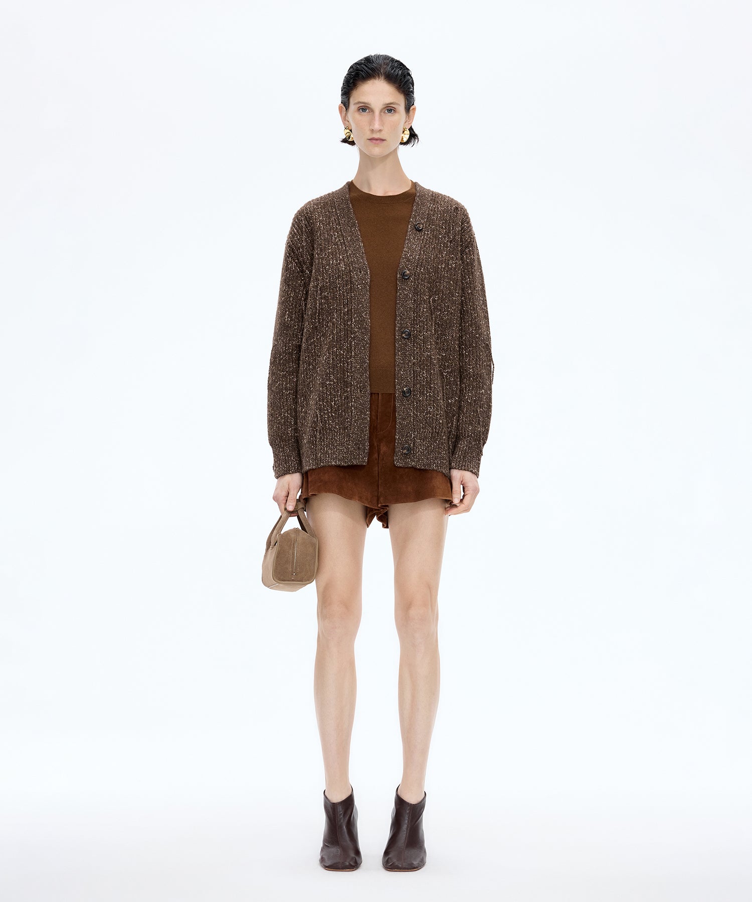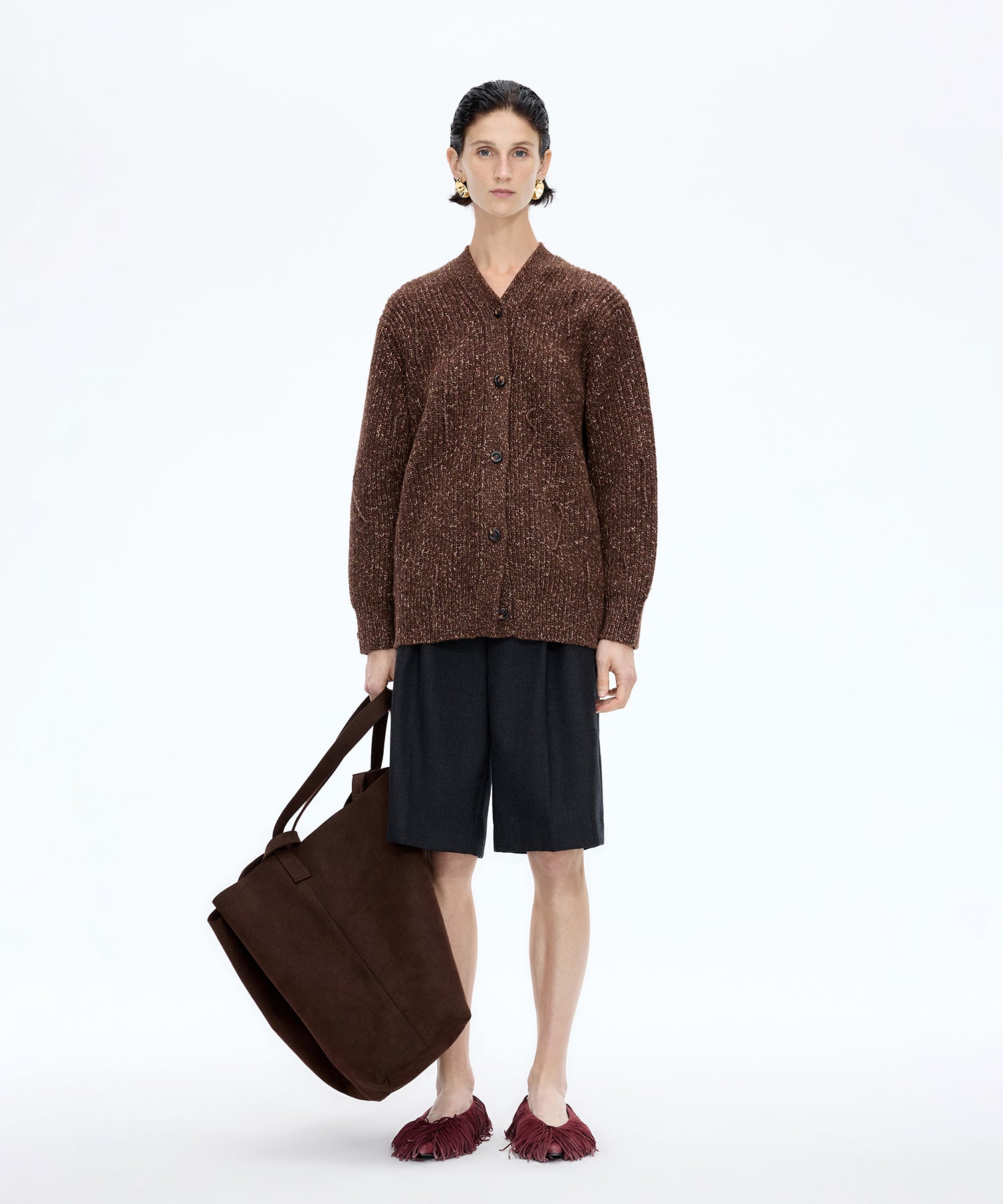 ふんわりとした表面感が魅力のニットカーディガン。暖かみのあるミックスヤーンを使用し、奥行きのあるカラーが落ち着いた印象を演出します。シンプルなVネックデザインで、シャツやタートルネックとのレイヤードもおすすめ。秋冬のスタイリングを上品に引き立てる一枚です。