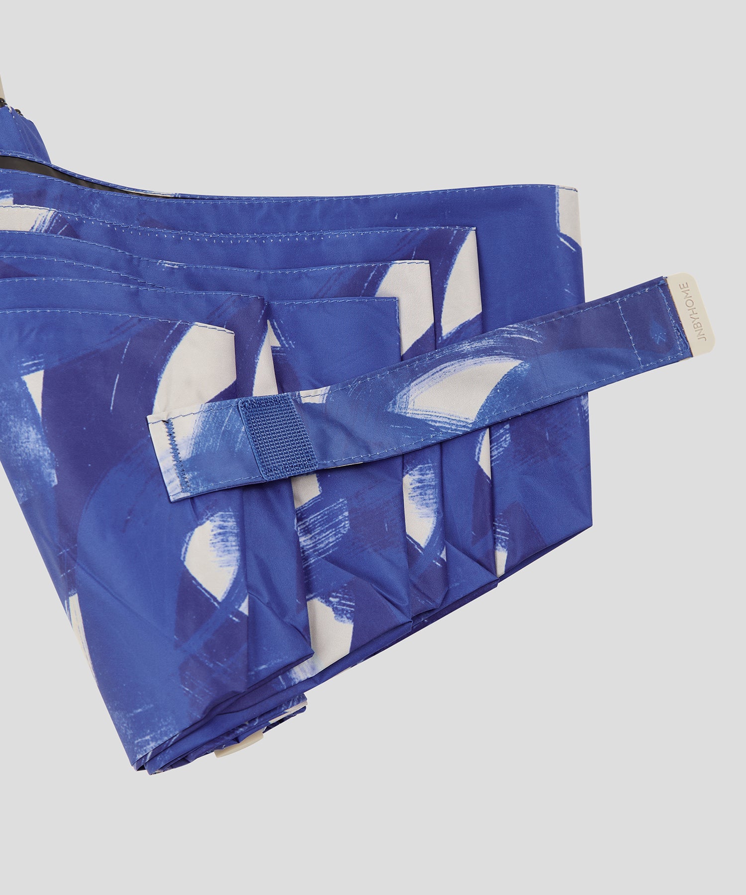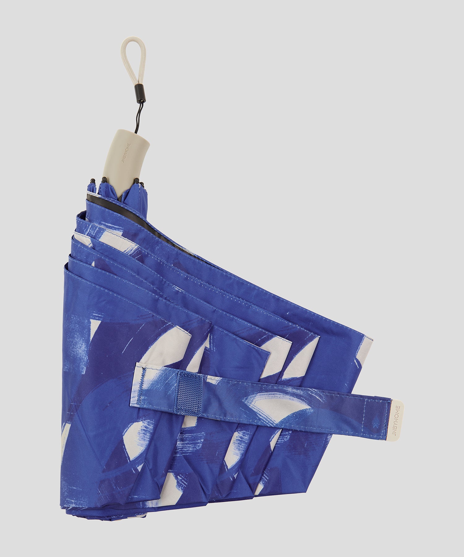手描き風のライン柄をあしらった晴雨兼用の折りたたみ傘。ダイナミックなデザインが目を引き、雨の日も晴れの日も気分を高めてくれる一本です。